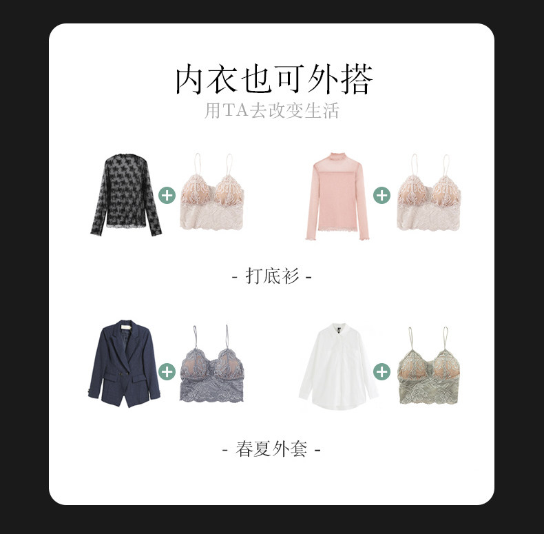 內衣背心式吊帶胸墊法式蕾絲無鋼圈小胸文胸吊帶一體內搭舒適柔軟