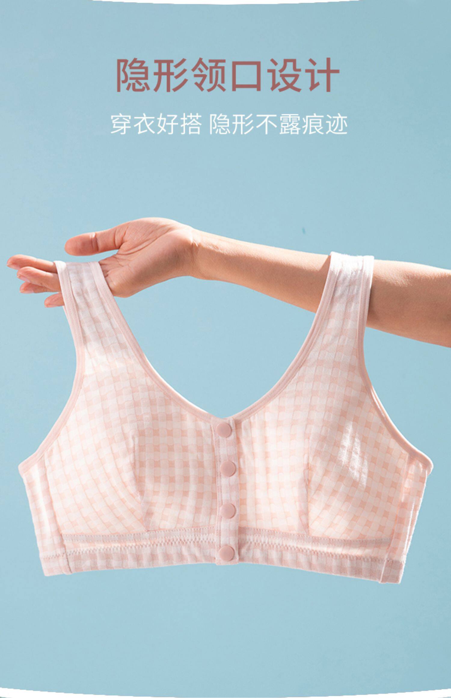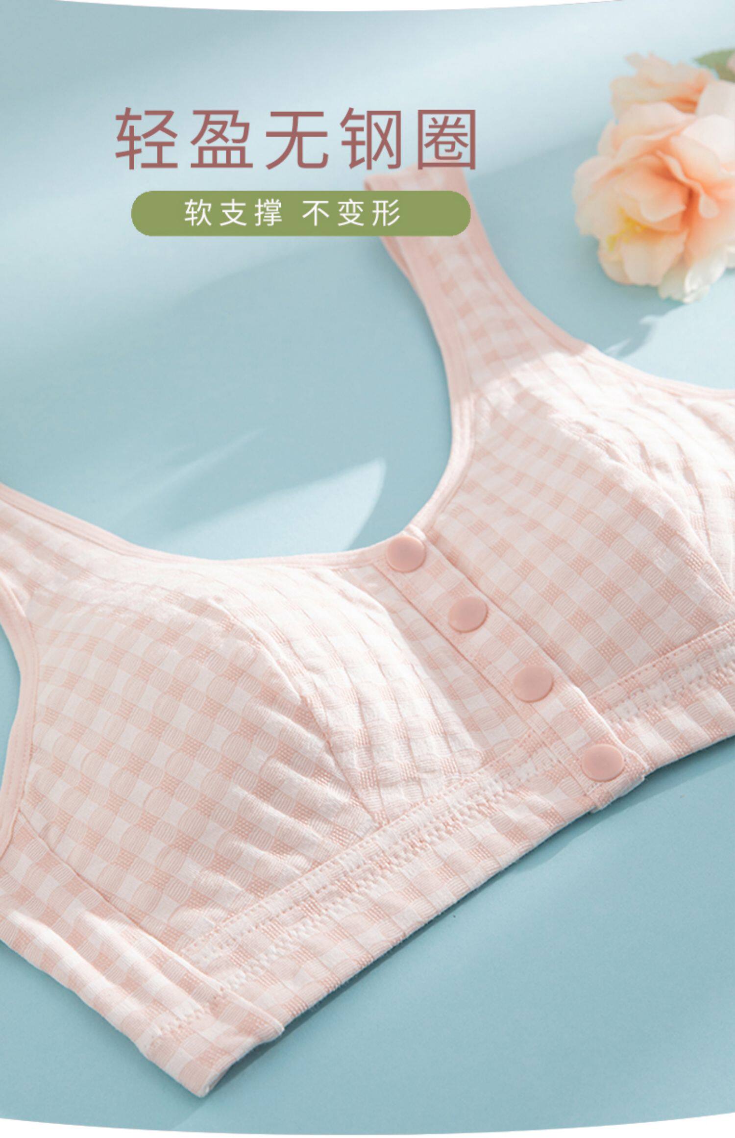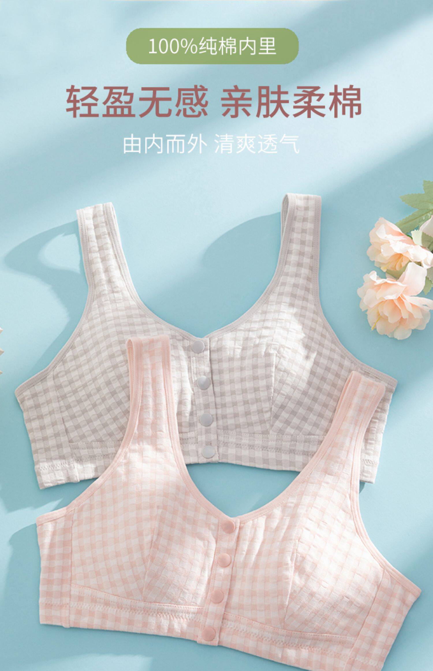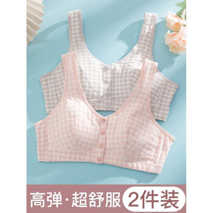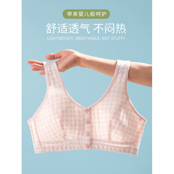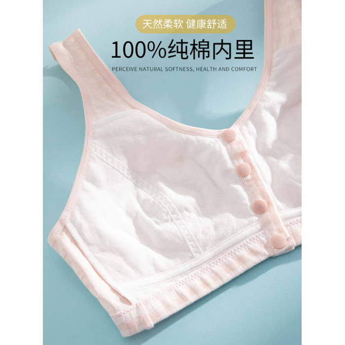 中老年裡棉前釦內衣媽媽文胸無鋼圈大碼背心人老人無海綿運動胸罩