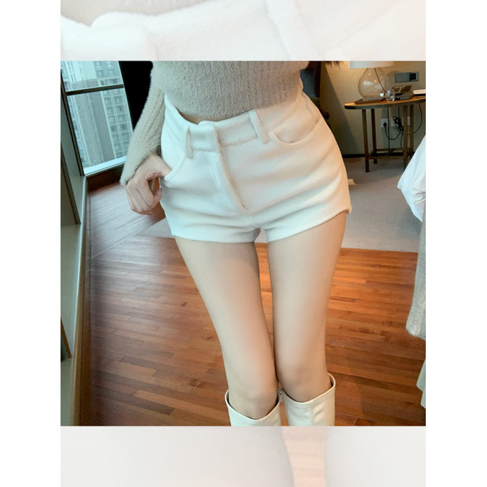 搭配靴子的毛呢短褲女秋高腰a字褲小個子秋冬外穿靴褲子2025新款
