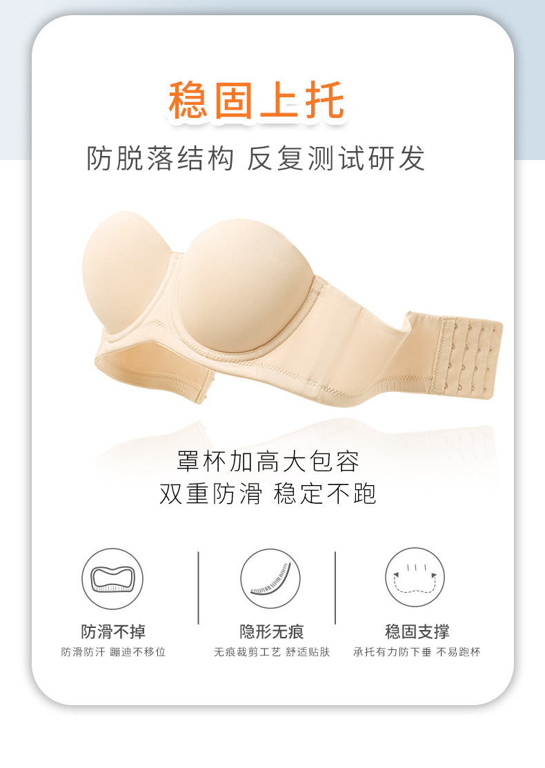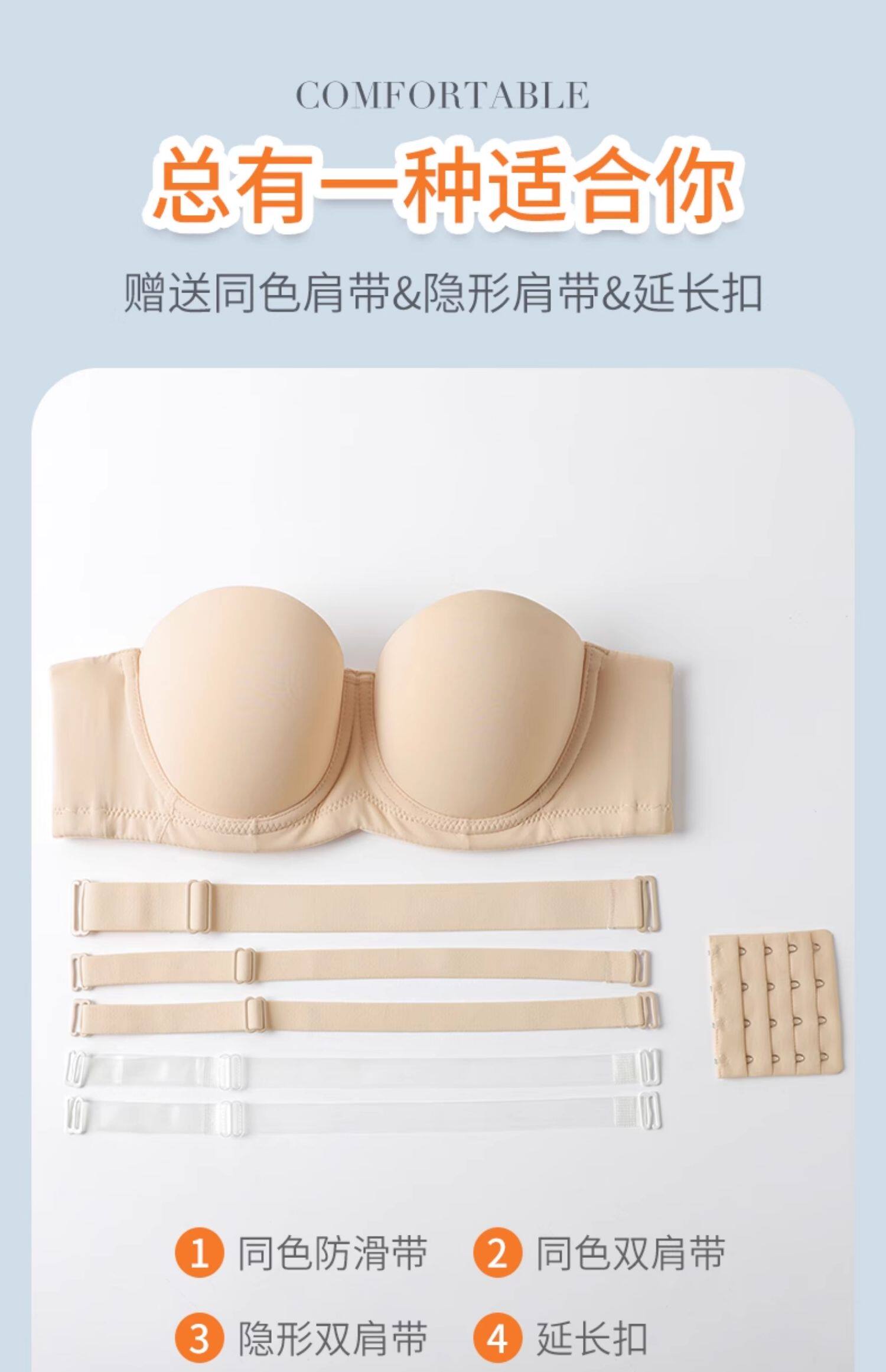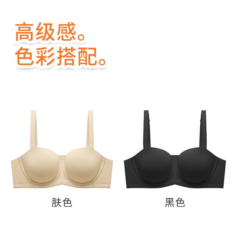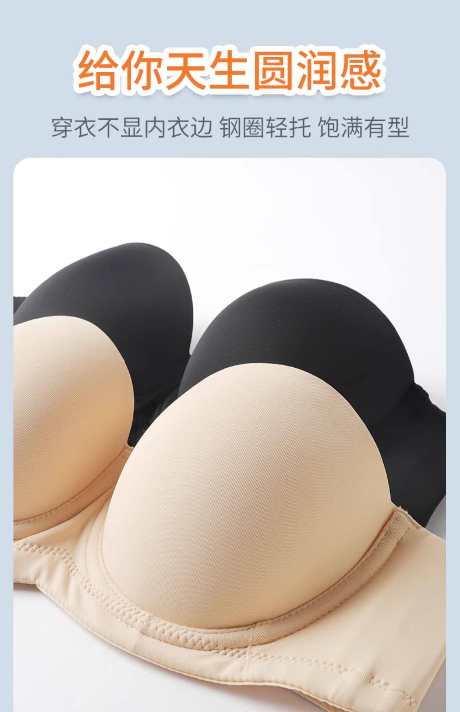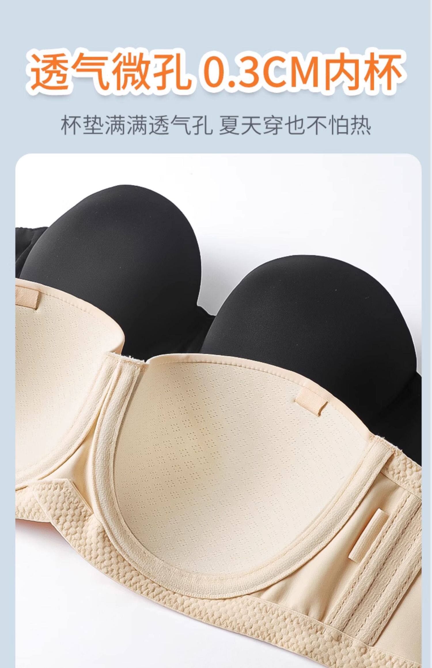 大碼無肩帶內衣女大胸顯小防滑防下垂收副乳有鋼圈半杯無痕文胸罩