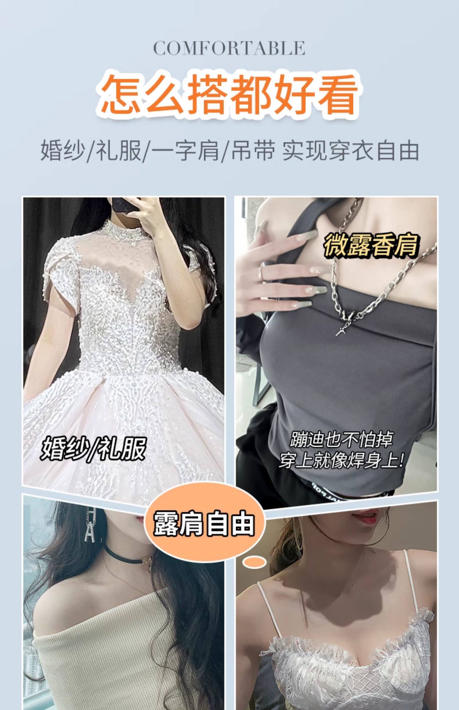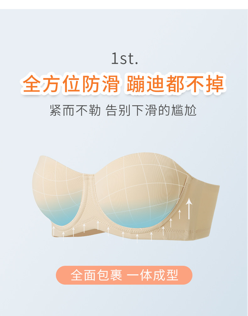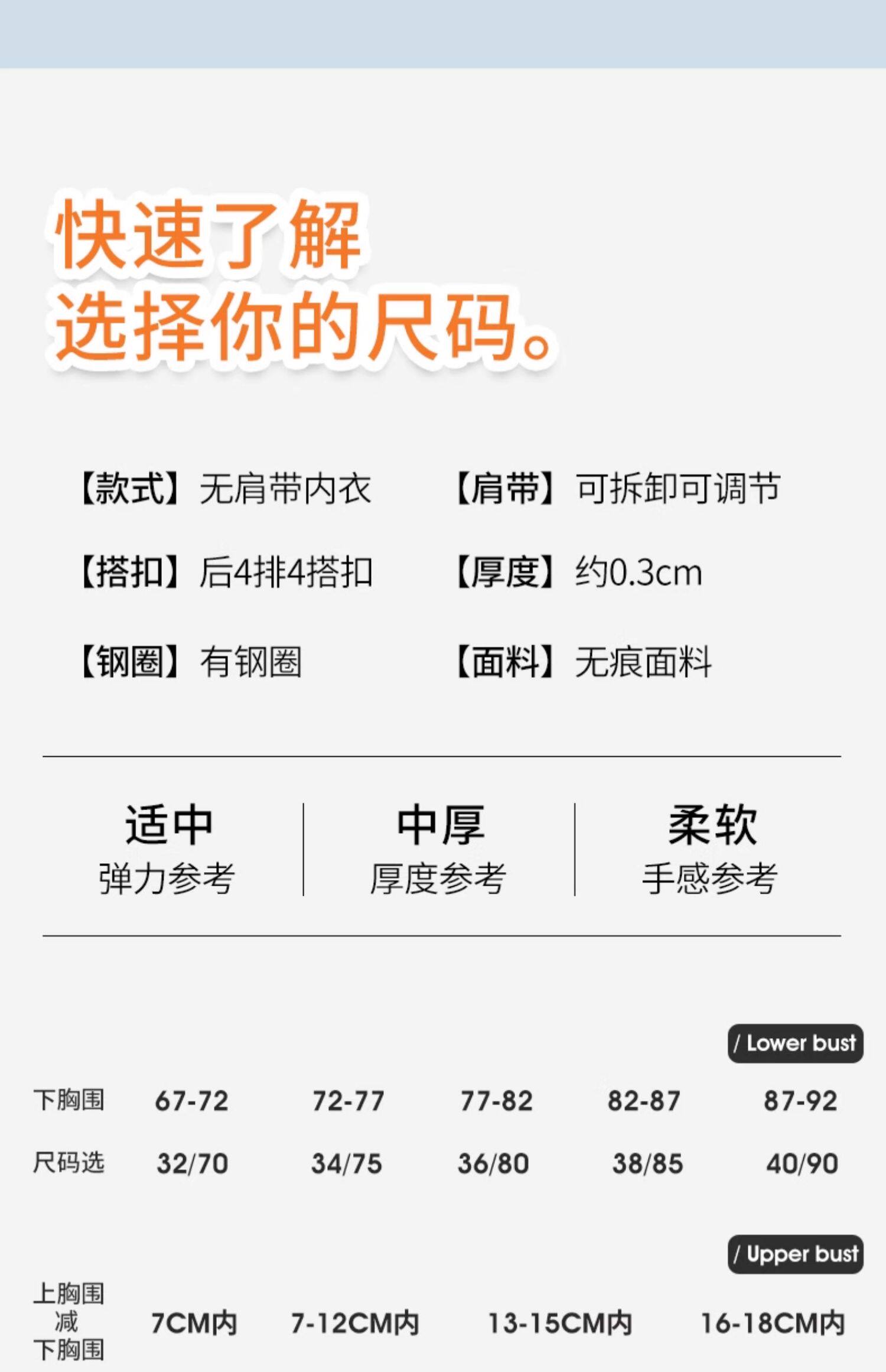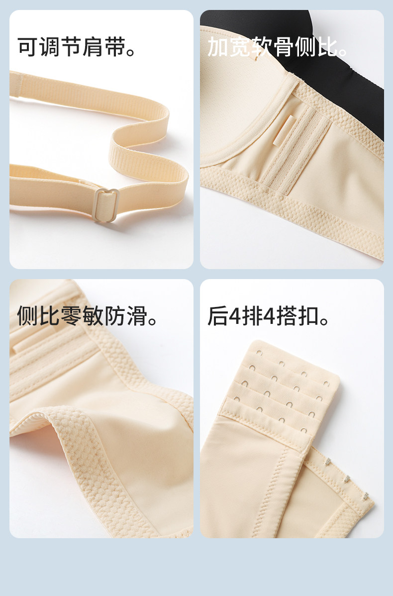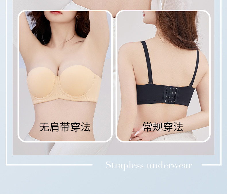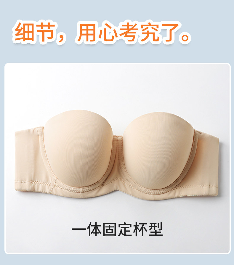 大碼無肩帶內衣女大胸顯小防滑防下垂收副乳有鋼圈半杯無痕文胸罩