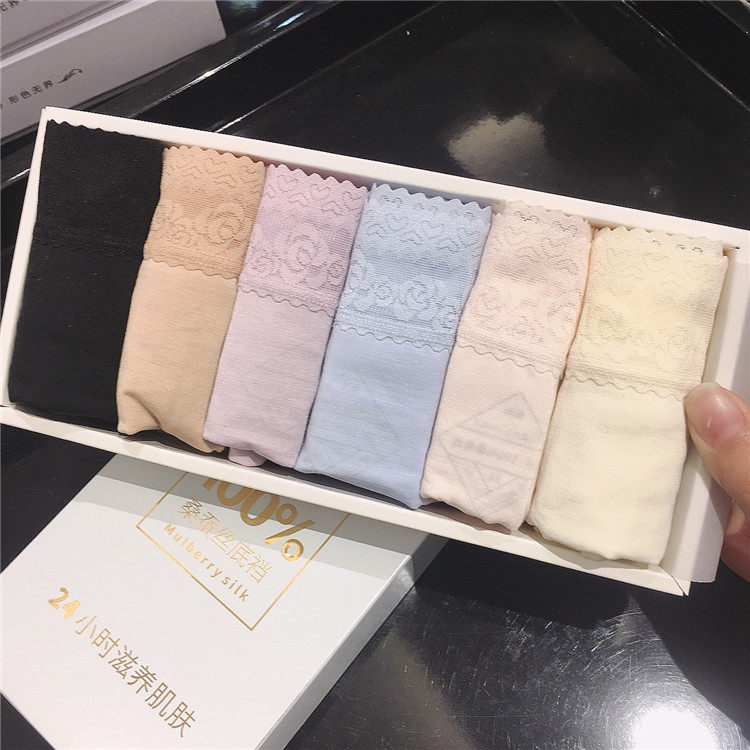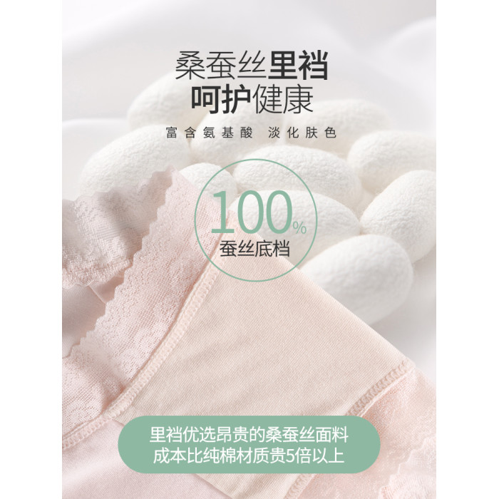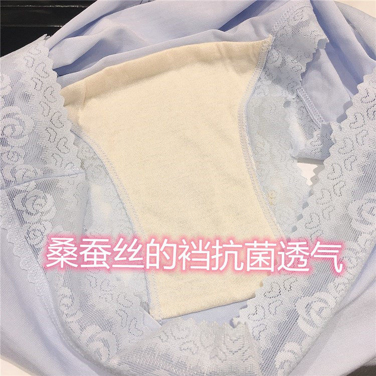 鉑金蠶絲內褲女莫代爾桑蠶絲襠抗菌中高腰無痕透氣蕾絲三角褲女生