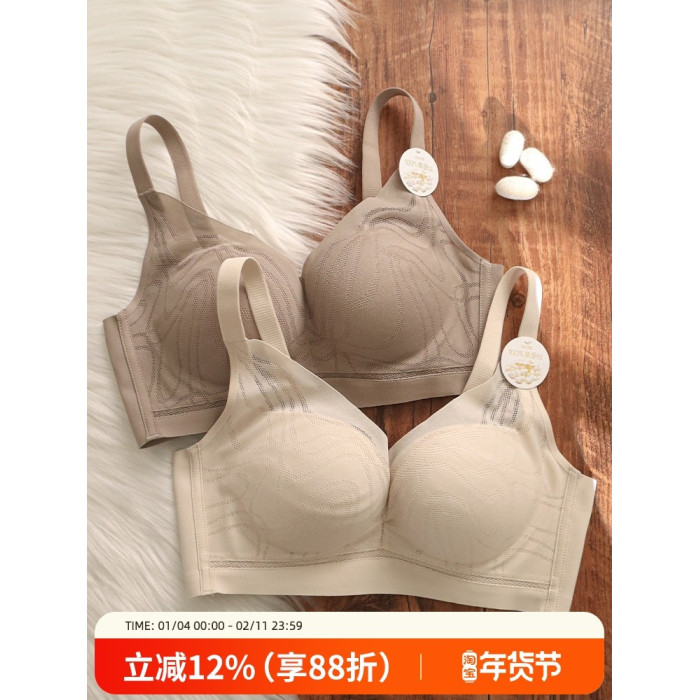 100%桑蠶絲內裡無痕內衣女小胸聚攏薄款收副乳防下垂無鋼圈文胸罩
