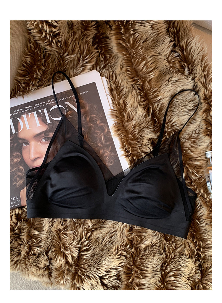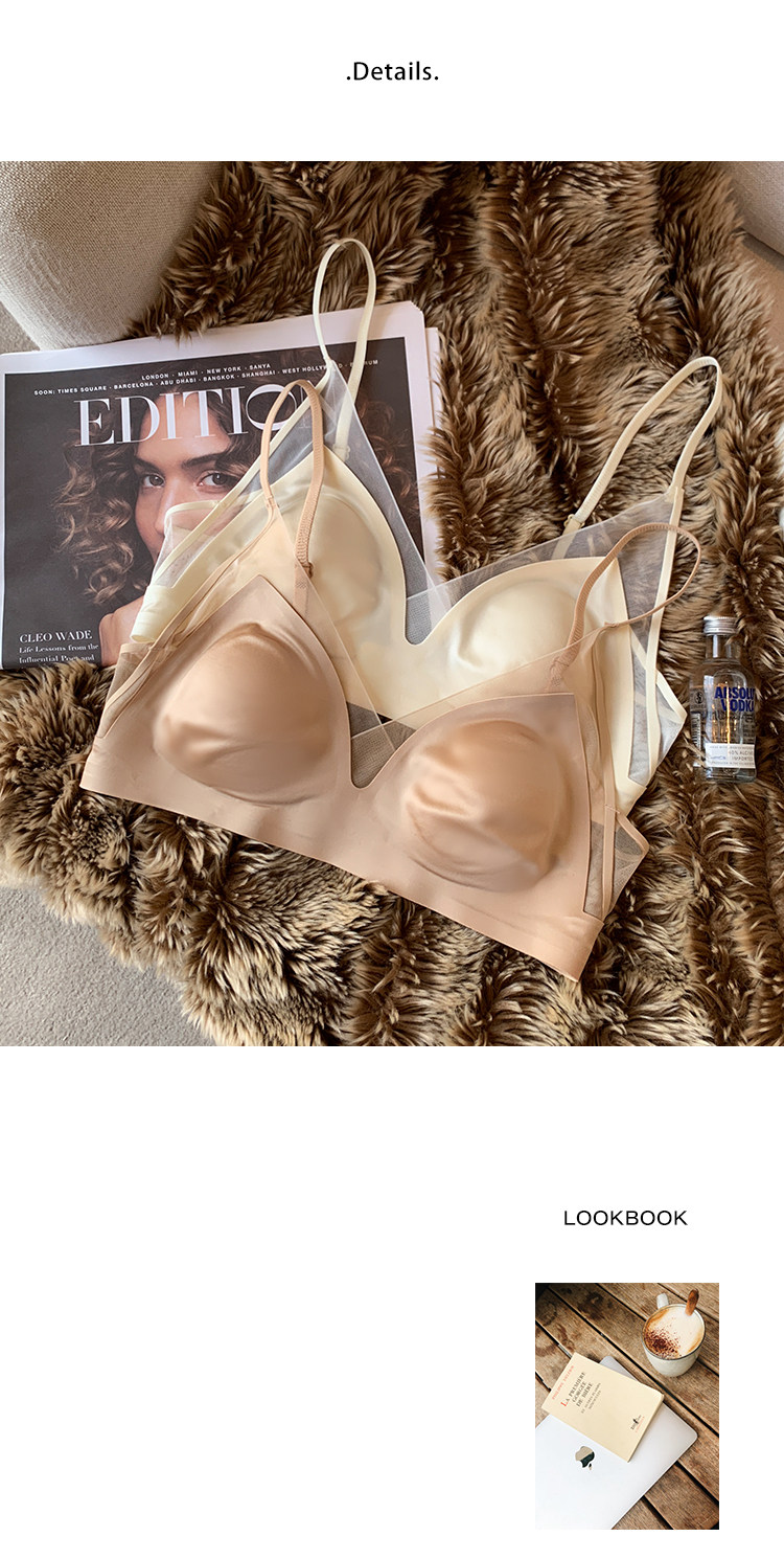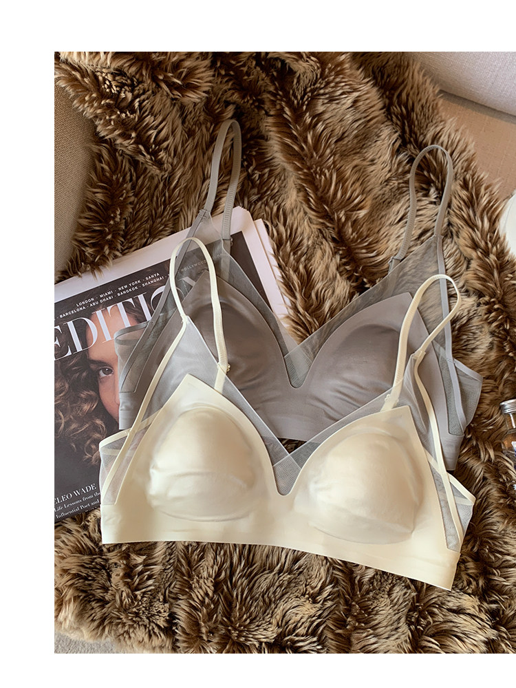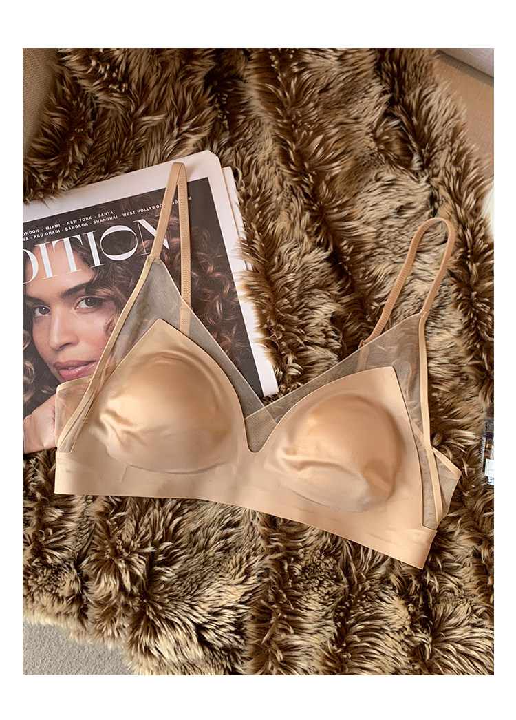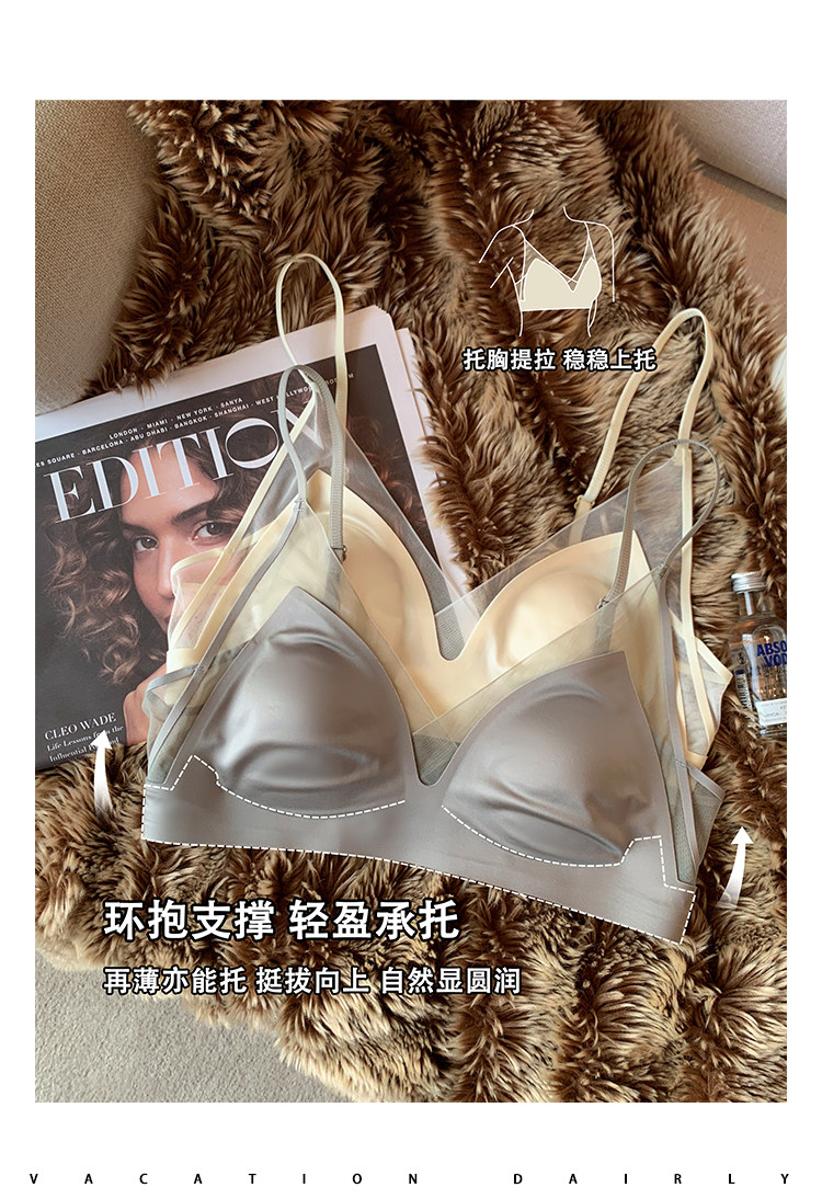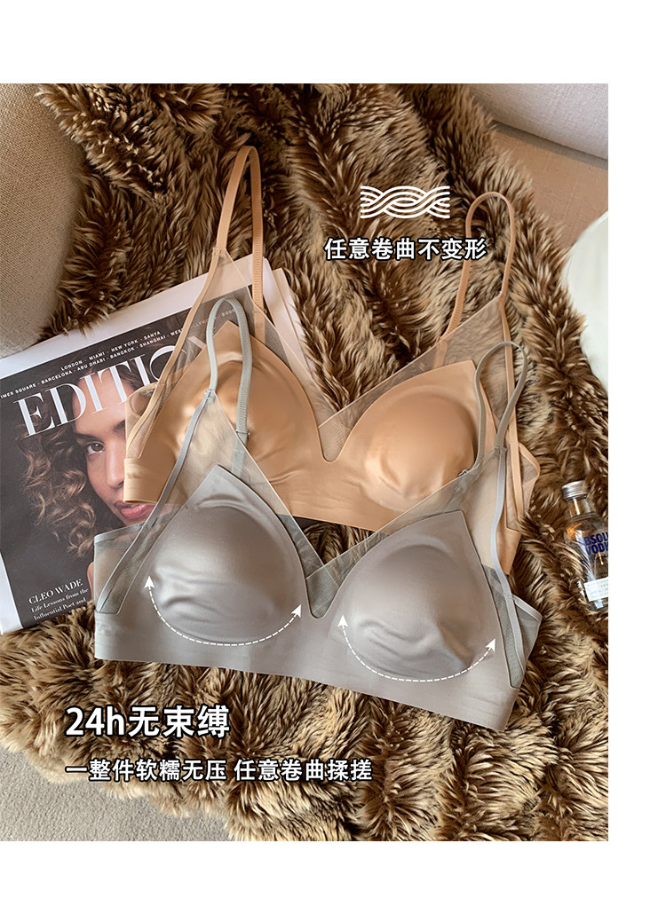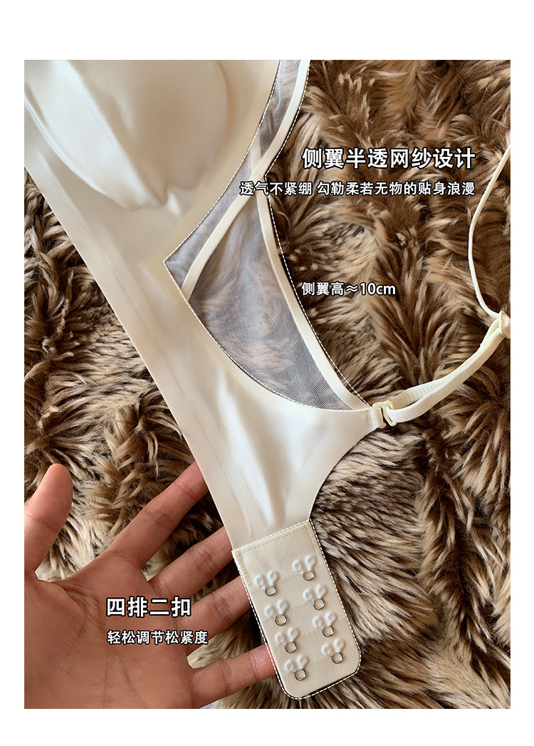 法式無痕緞面粉底液內衣女兔耳杯大胸顯小顯瘦防下垂收副乳文胸罩