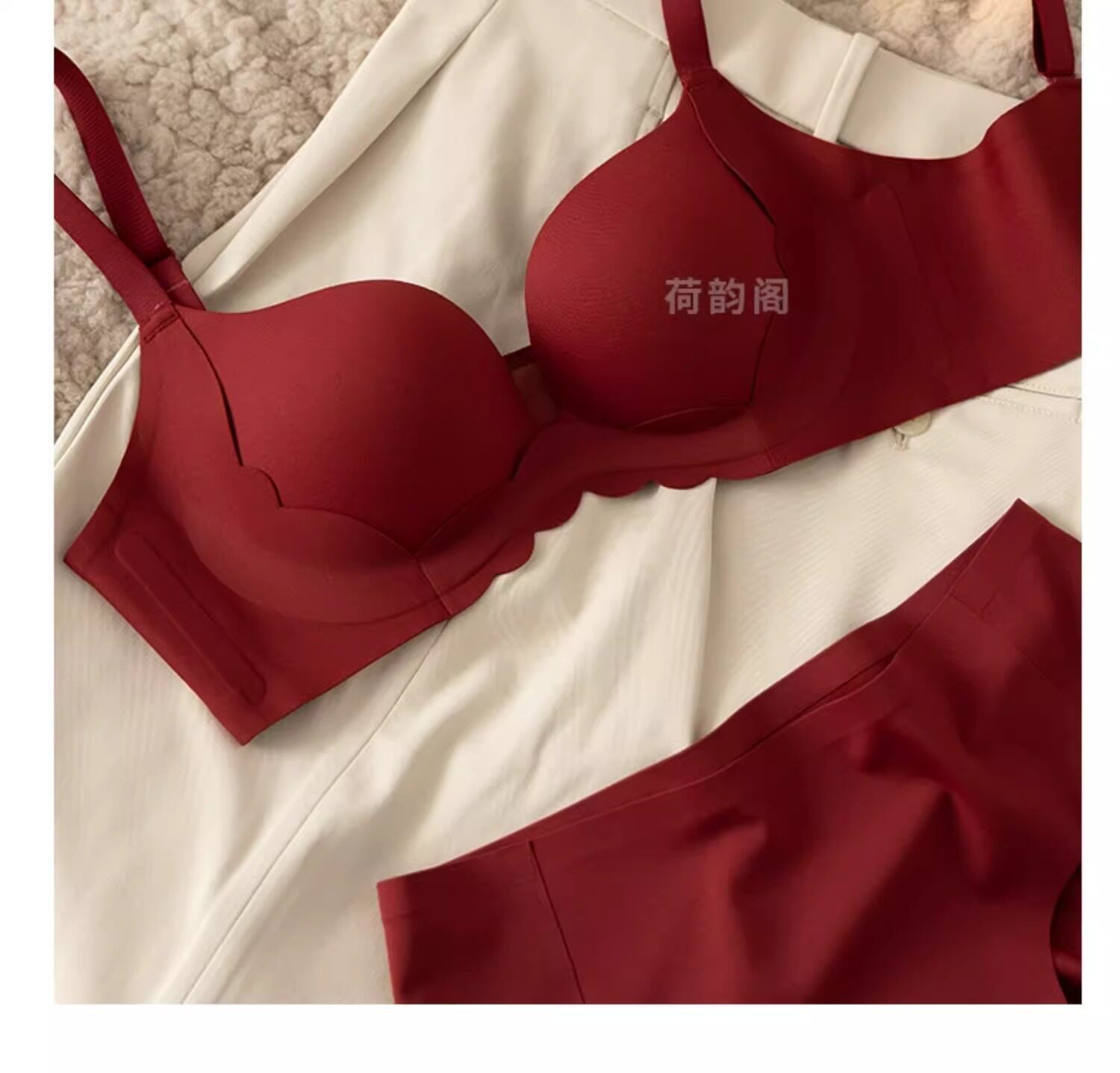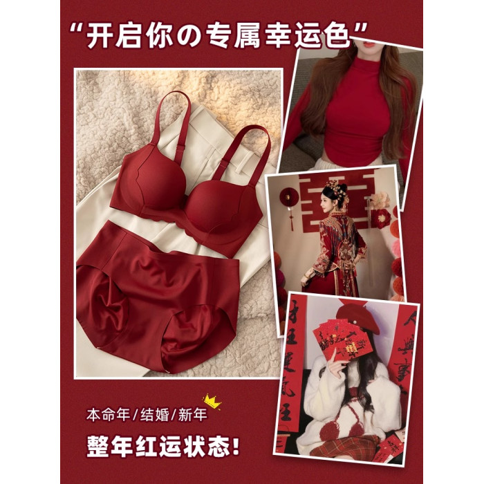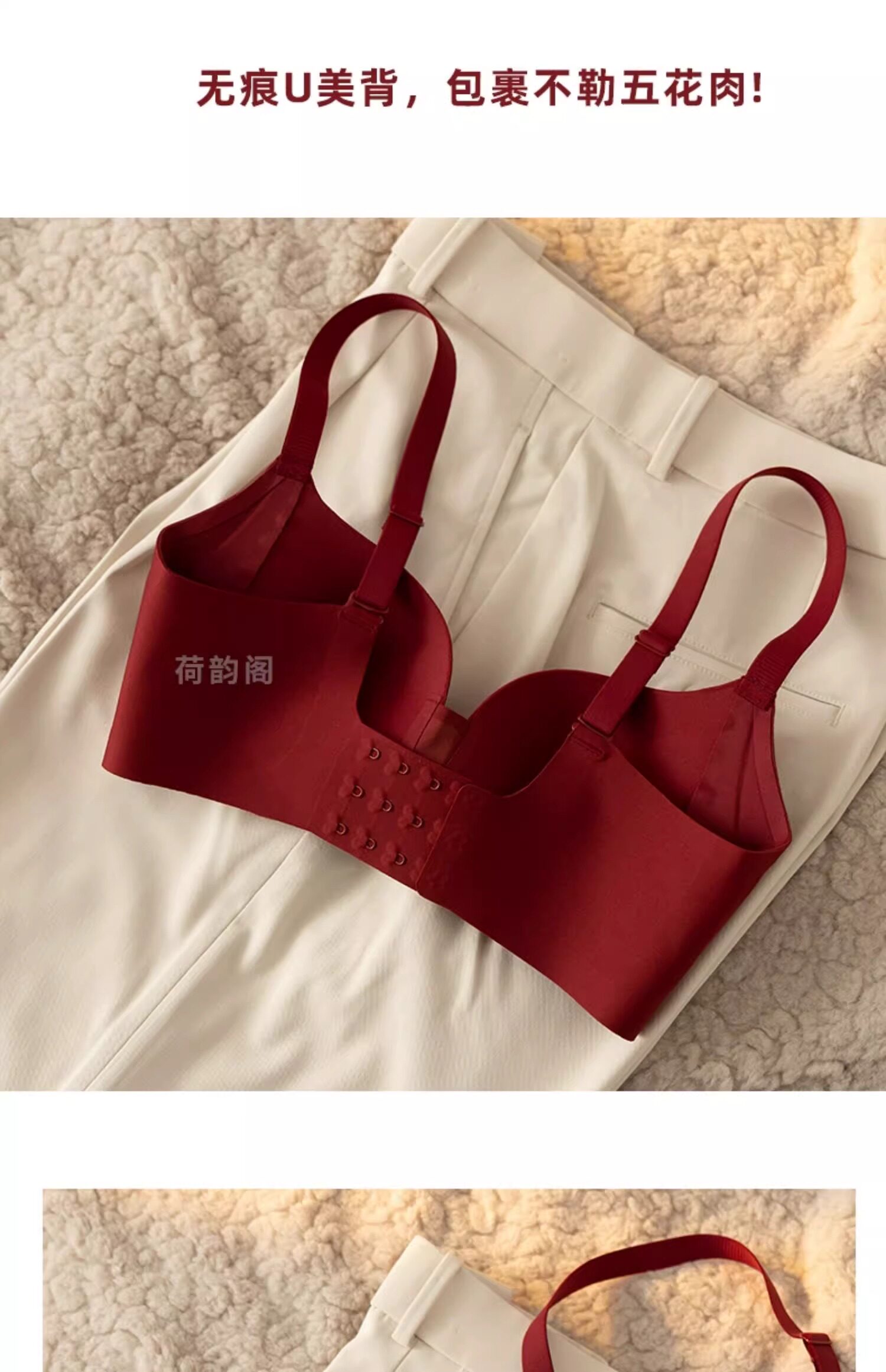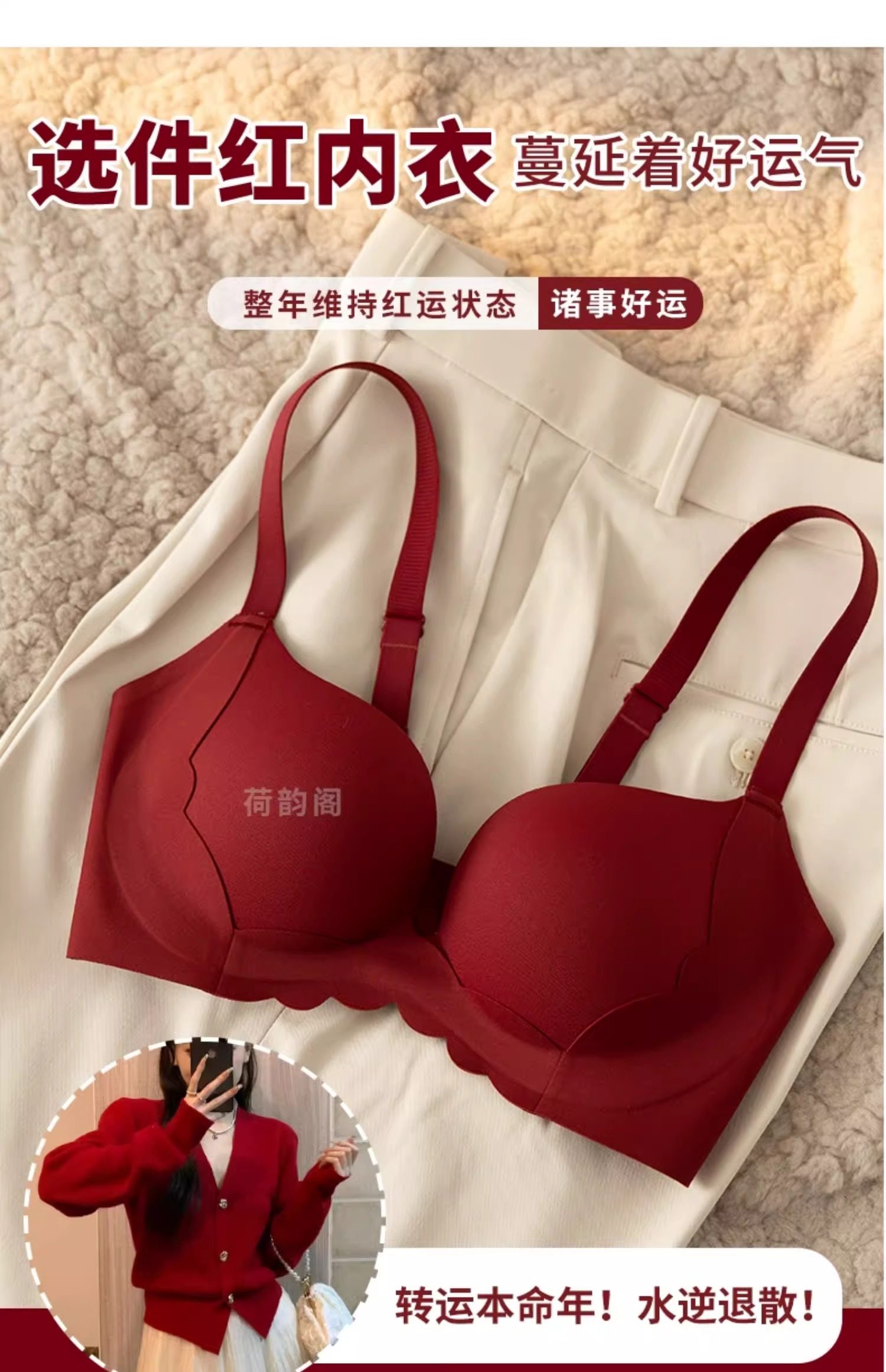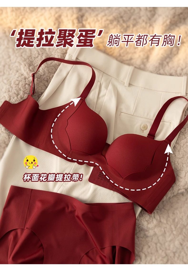 2024秋冬本命年紅色小胸聚攏內衣女提拉防下垂胸罩無鋼圈文胸套裝