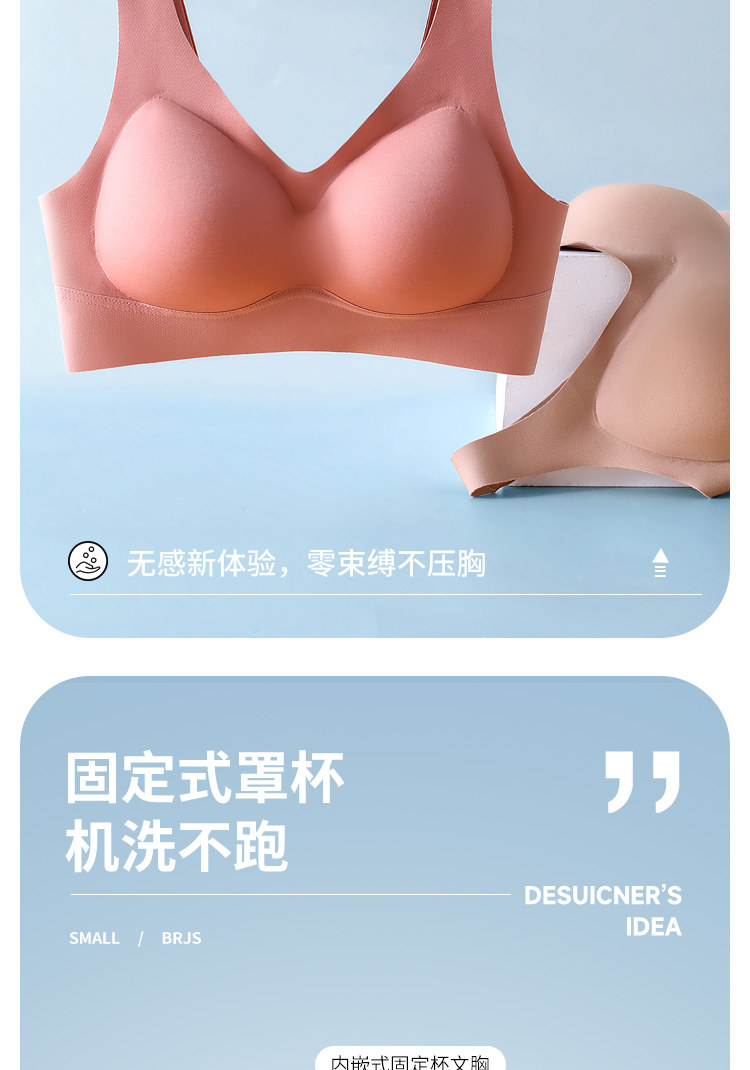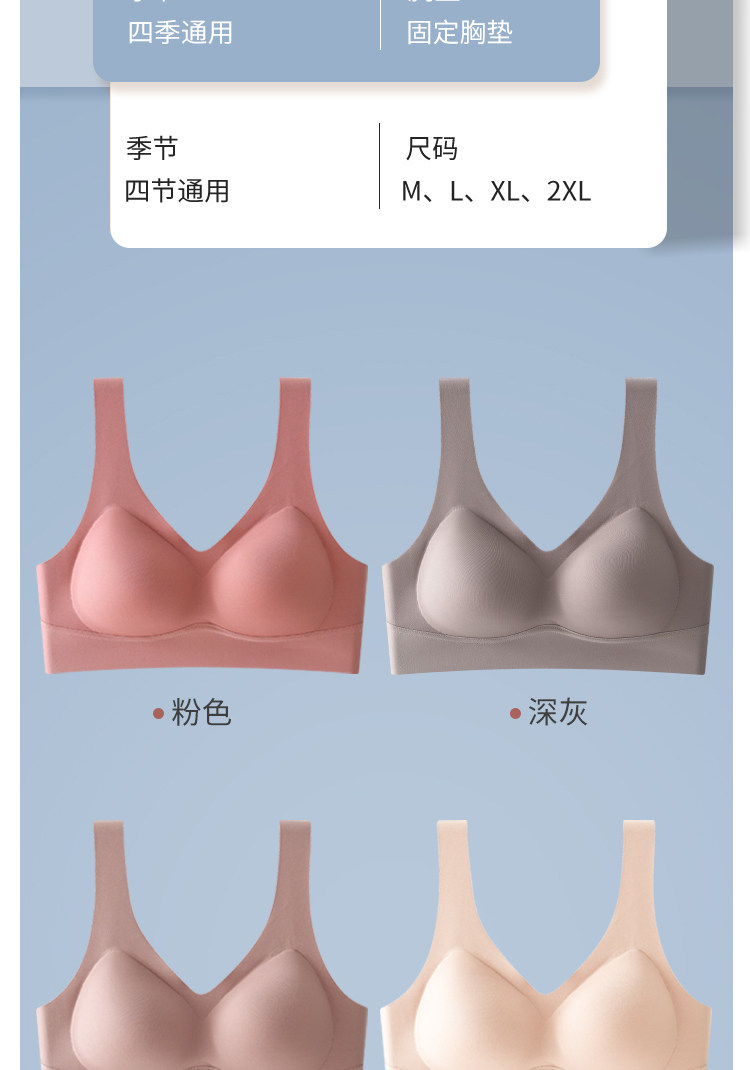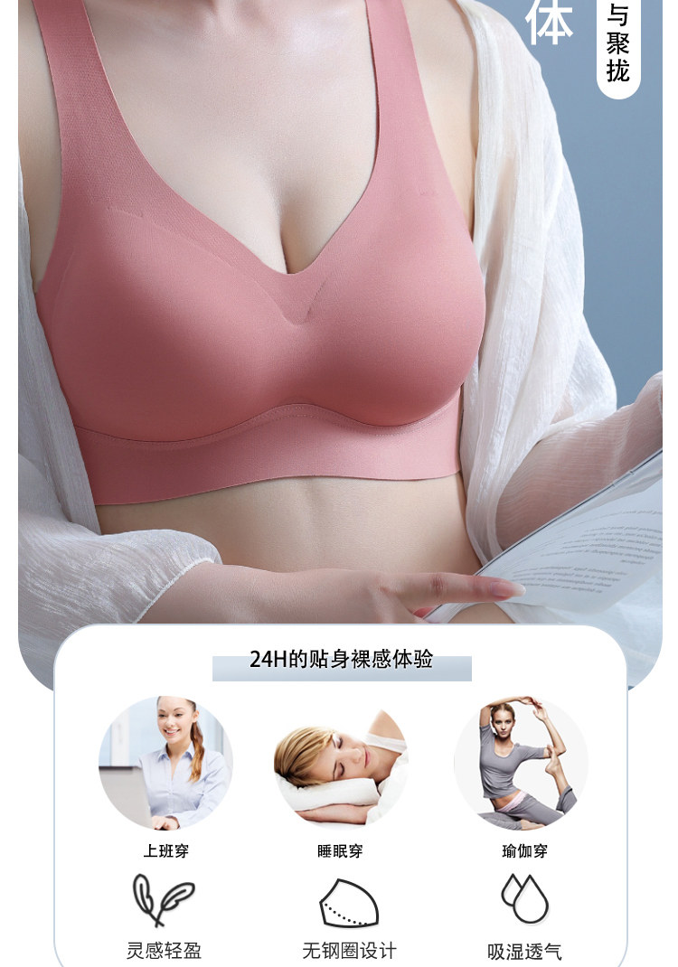 一體固定杯無痕乳膠內衣女無鋼圈背心式運動文胸聚攏夏季薄款胸罩