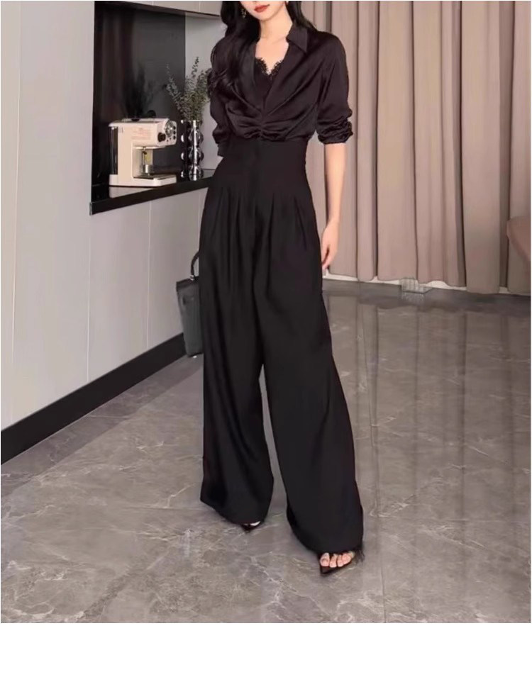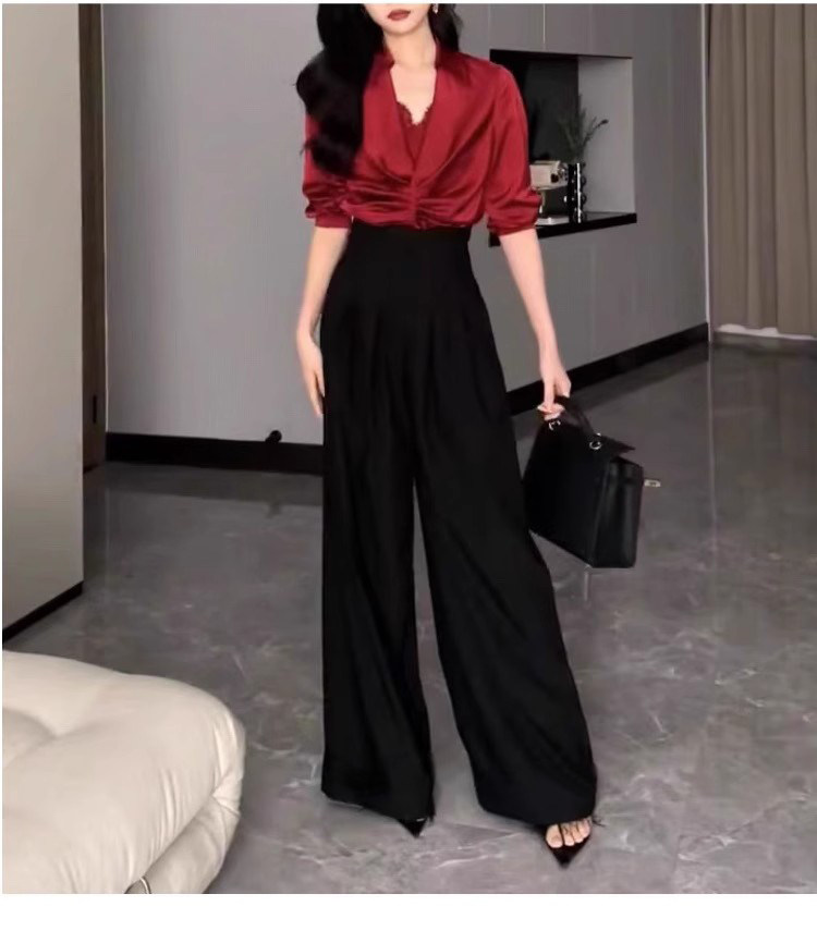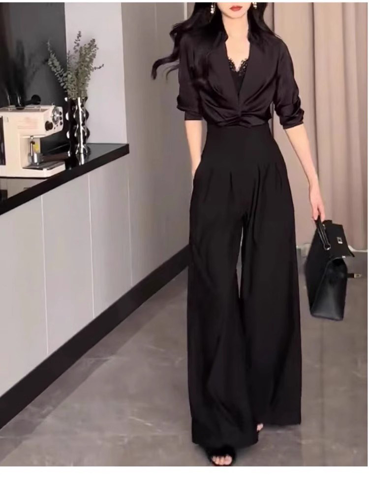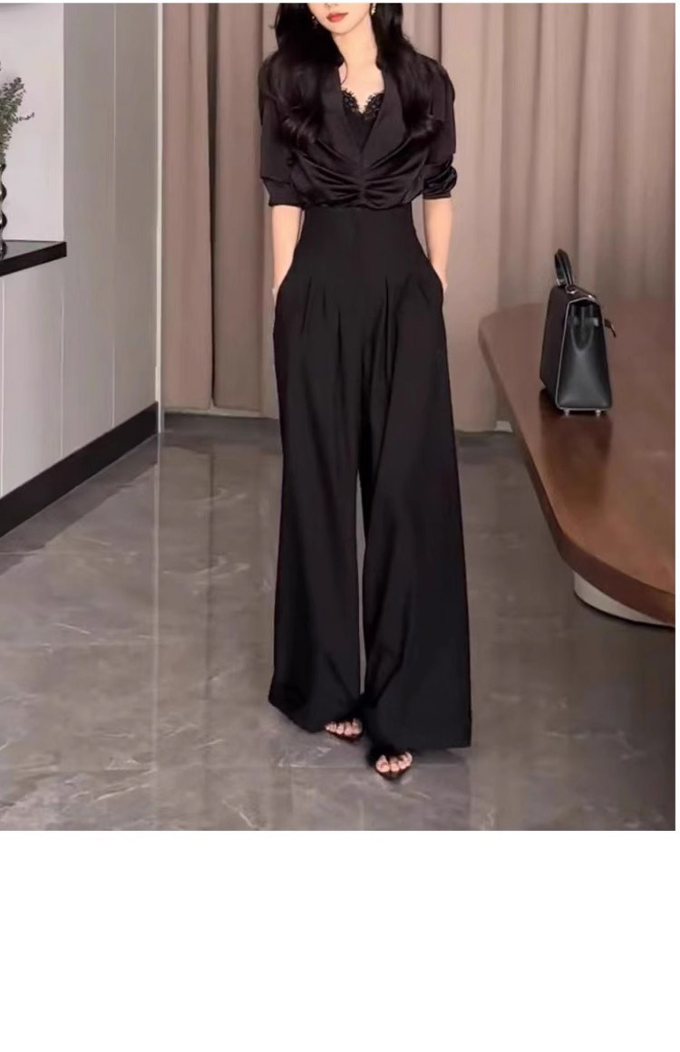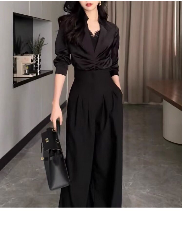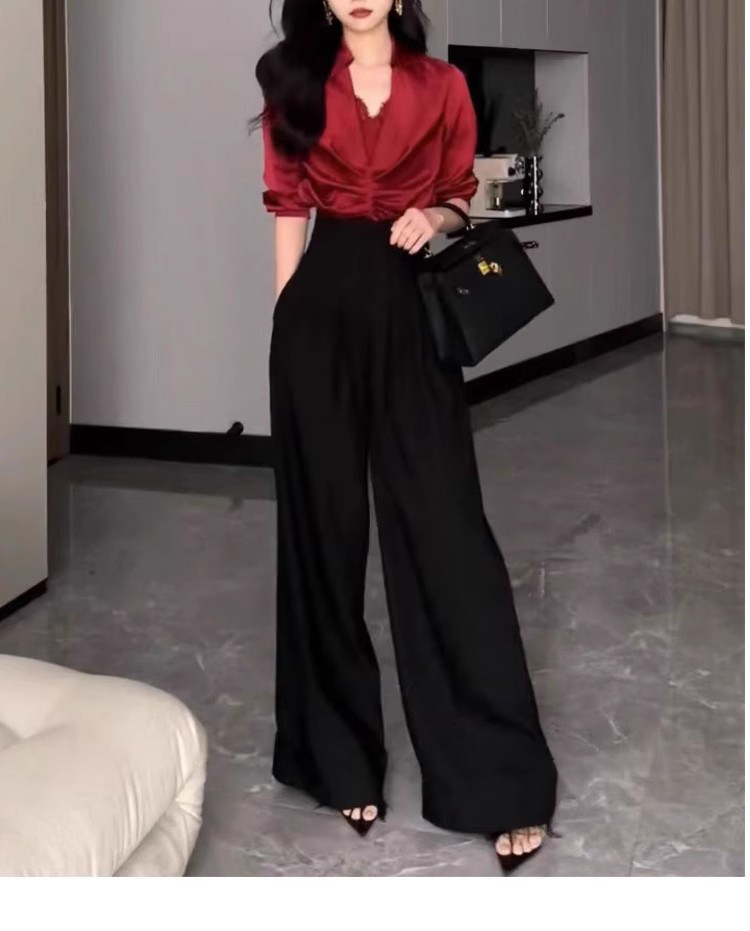 高腰濶腿褲女春秋2026新款黑色垂感休閒寬鬆直筒西裝褲拖地長褲子