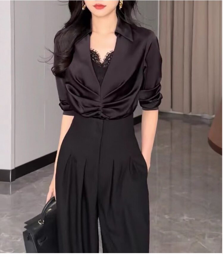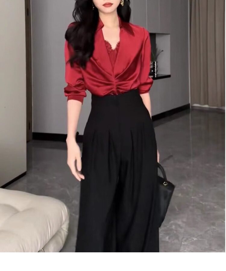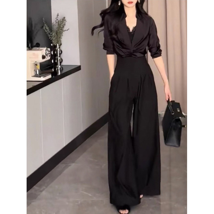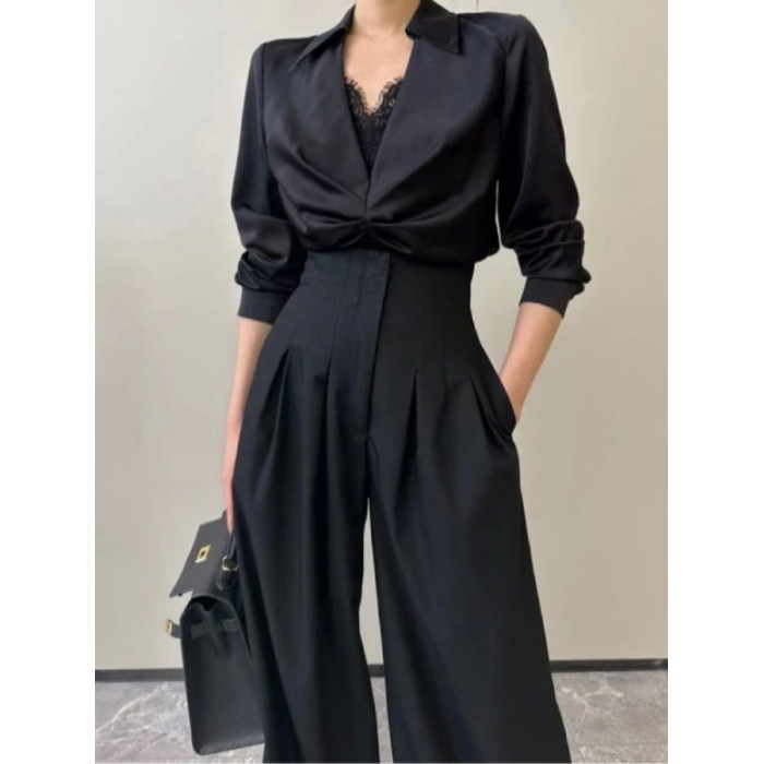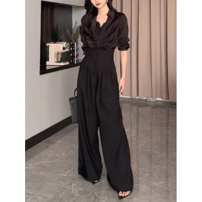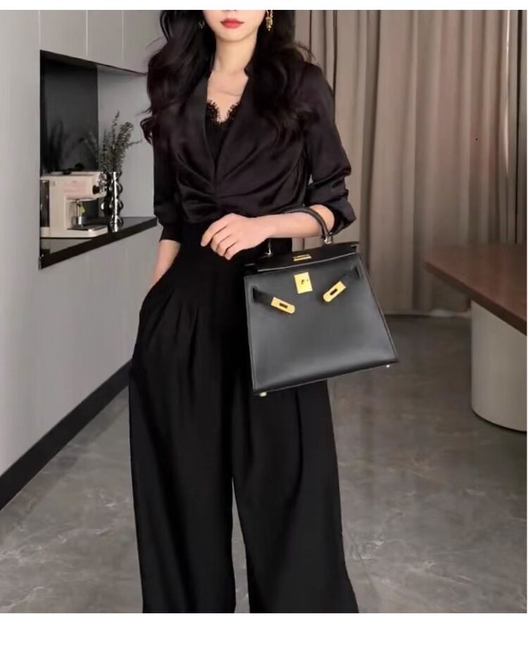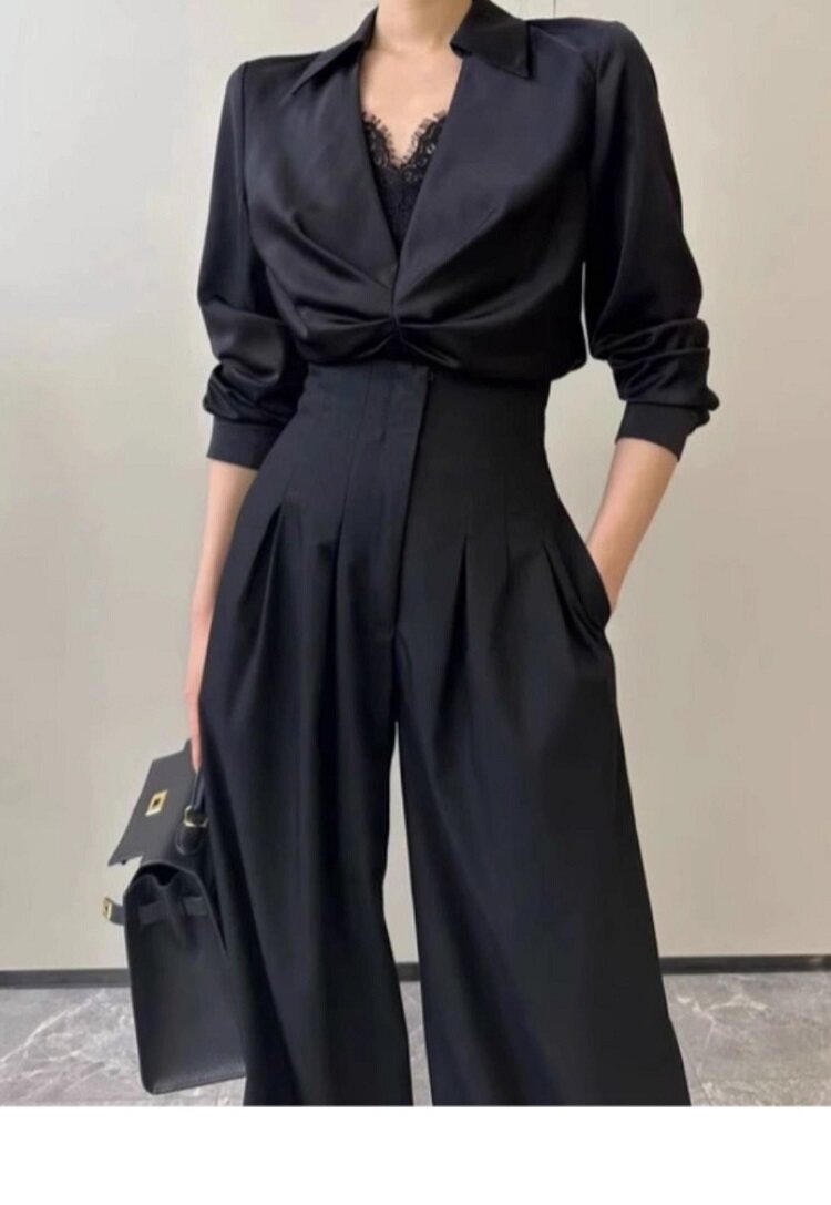 高腰濶腿褲女春秋2026新款黑色垂感休閒寬鬆直筒西裝褲拖地長褲子
