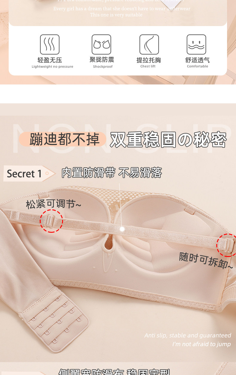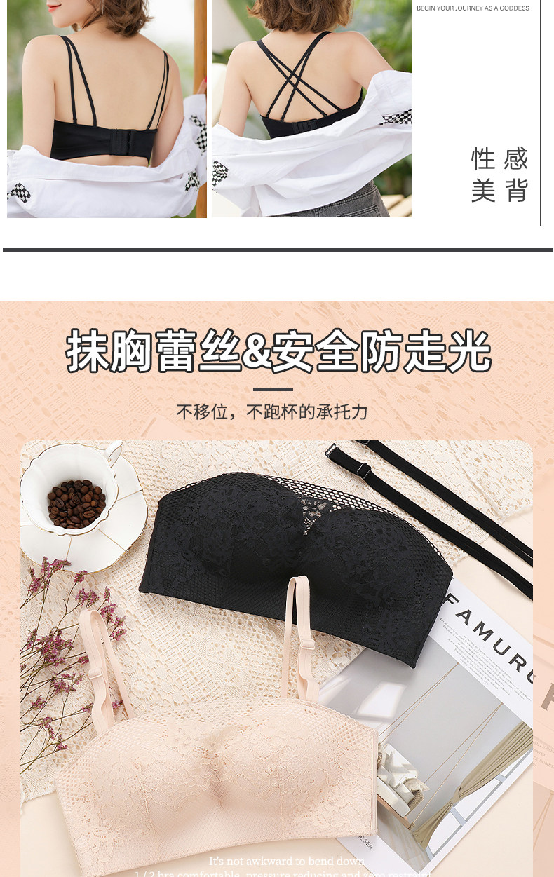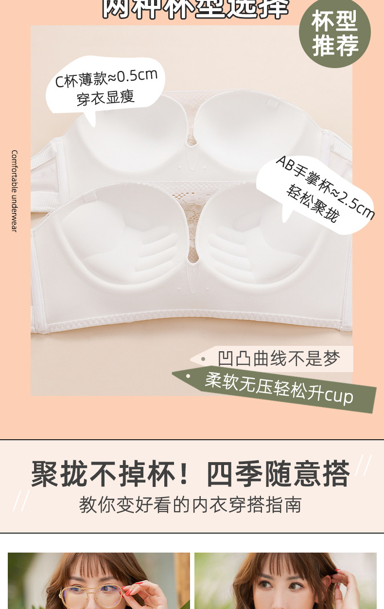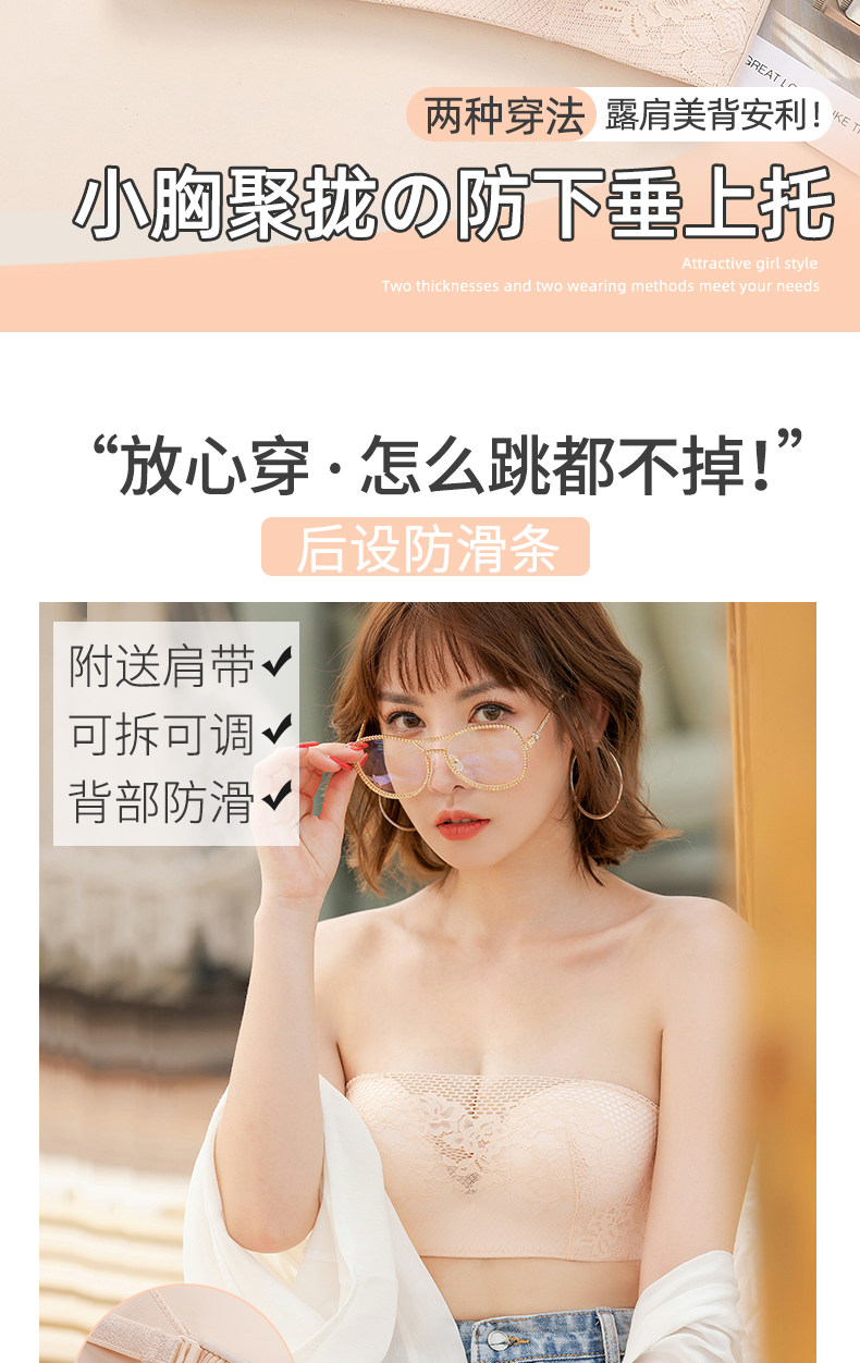 無肩帶內衣女小胸防滑聚攏抹胸防走光文胸罩2024新款爆款美背裹胸