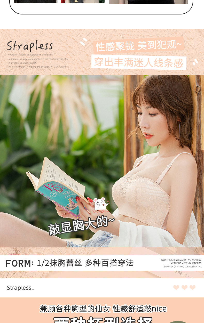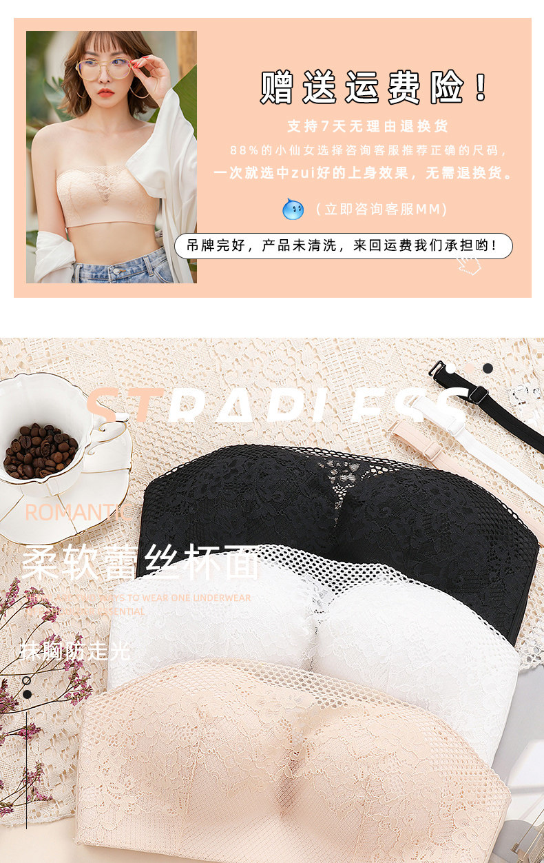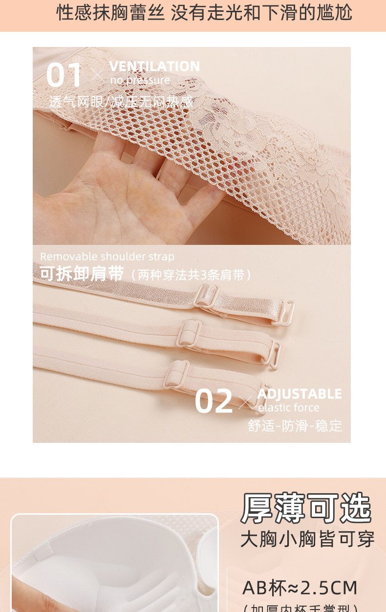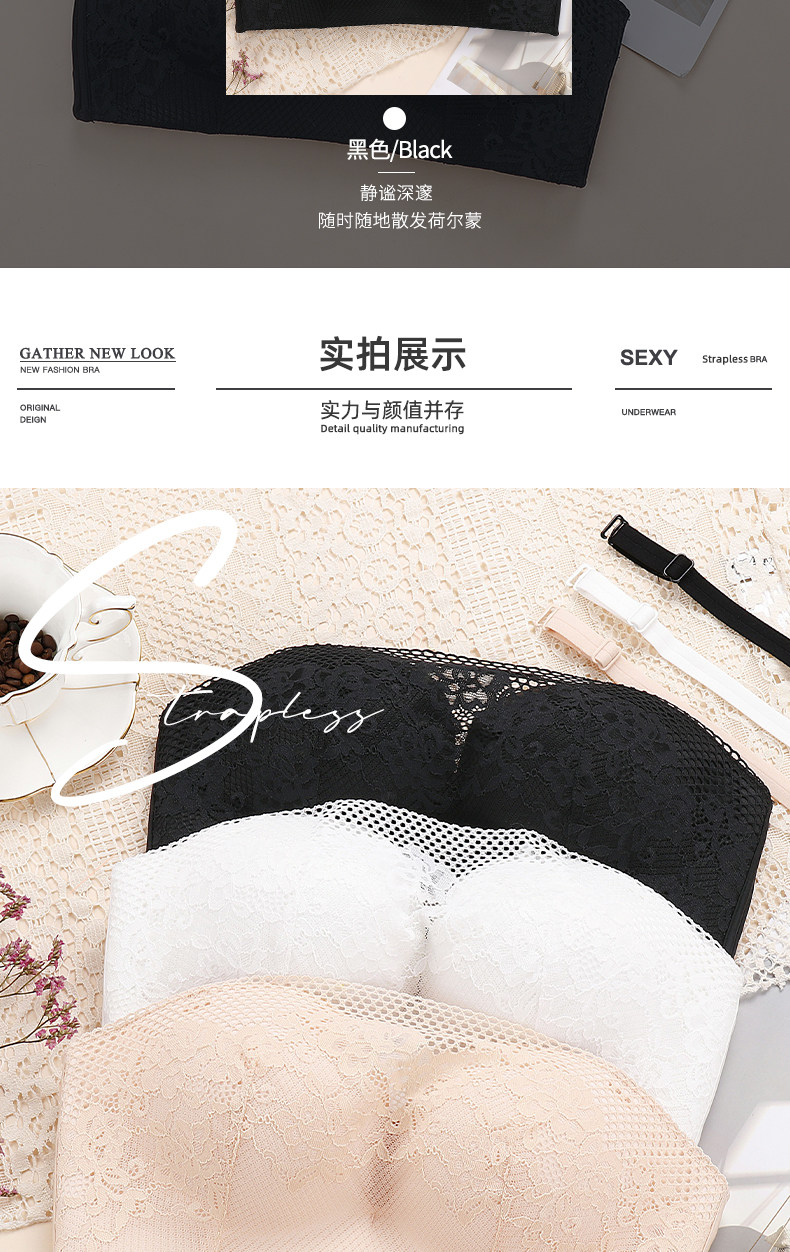 無肩帶內衣女小胸防滑聚攏抹胸防走光文胸罩2024新款爆款美背裹胸