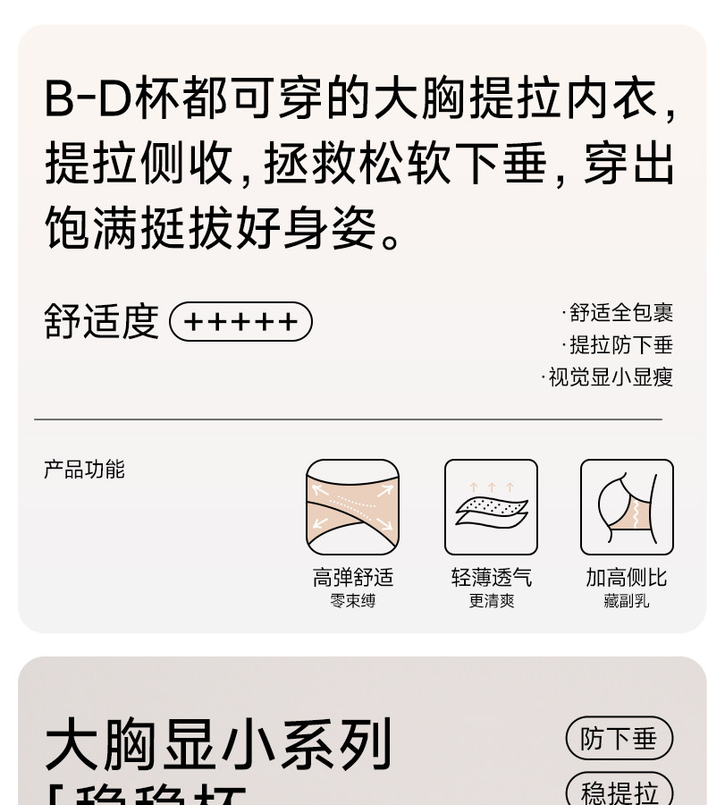 大胸顯小內衣女全罩杯薄款聚攏防下垂收副乳2025無痕胖mm塑形文胸