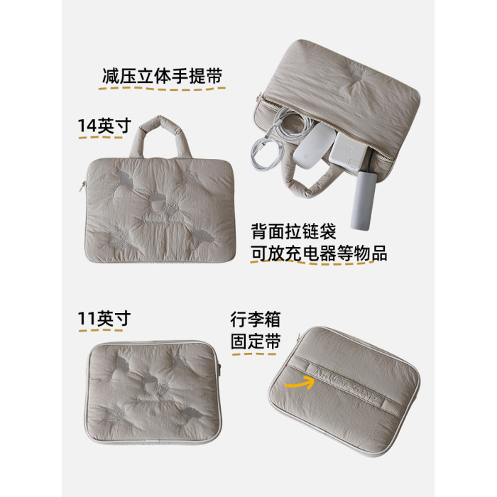 梵花不語新款刺綉筆記型電腦包女適用於蘋果MacBook 14寸華爲MateBook聯想小新Air14平板11寸ipad收納包