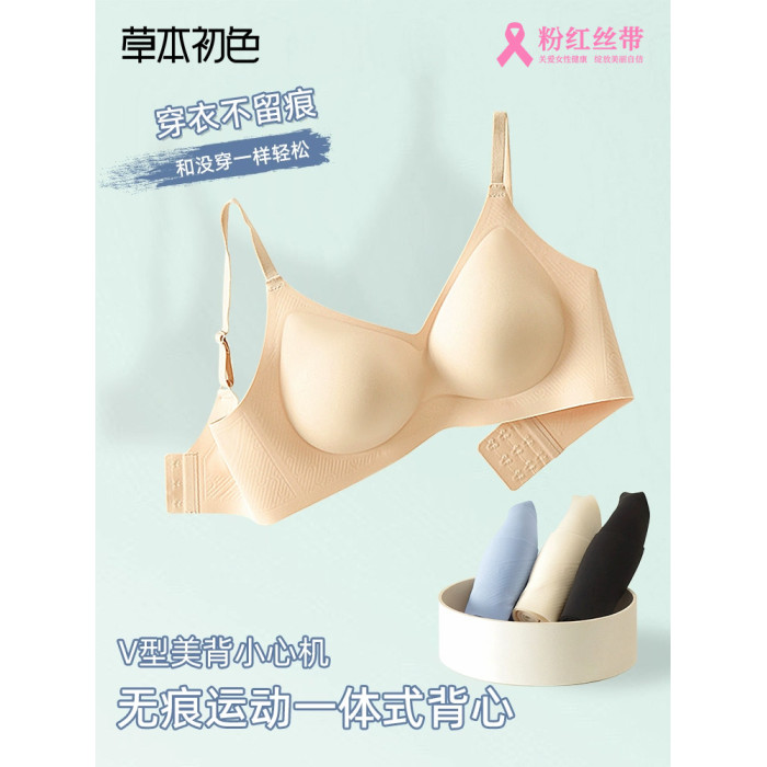 草本初色無痕天然乳膠內衣女無鋼圈美背內衣透氣無痕裸感舒適文胸