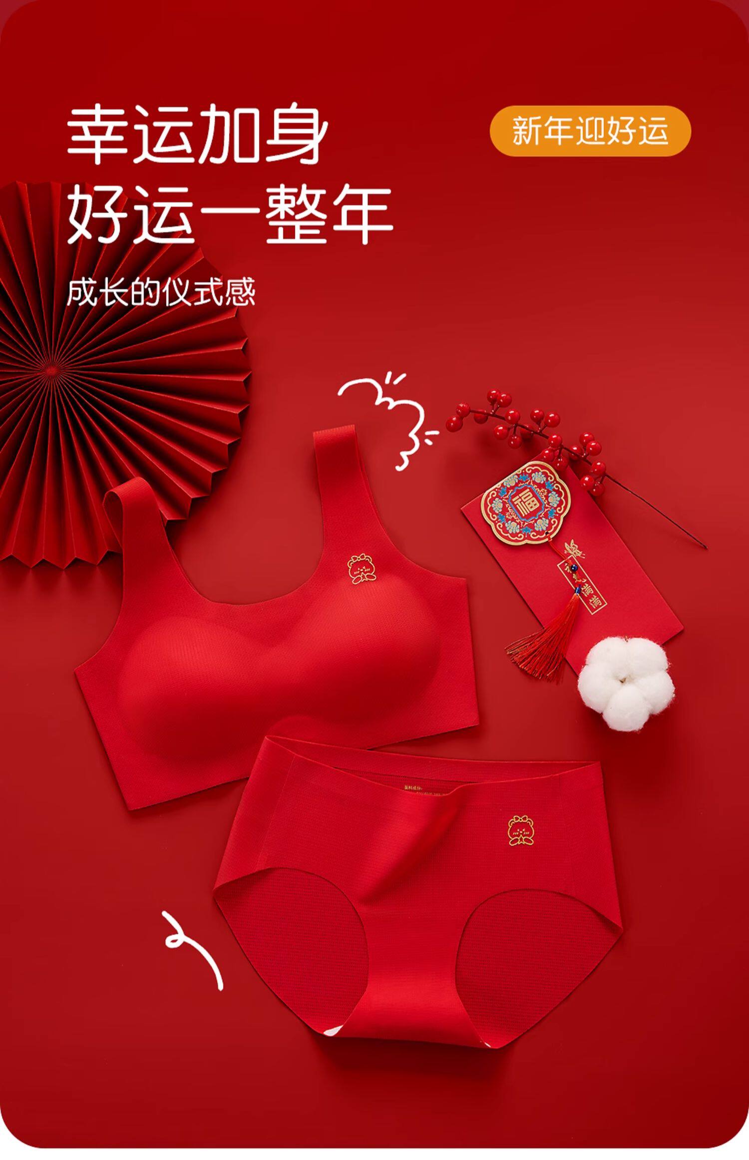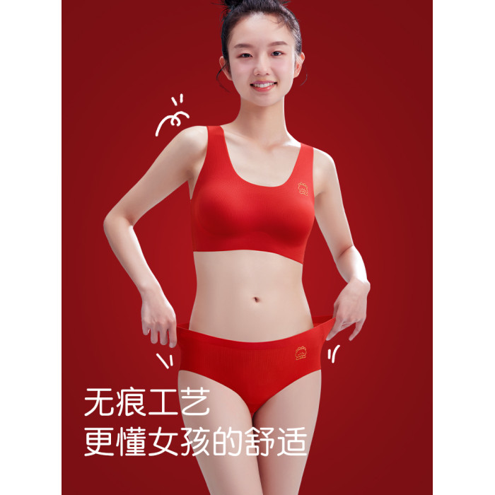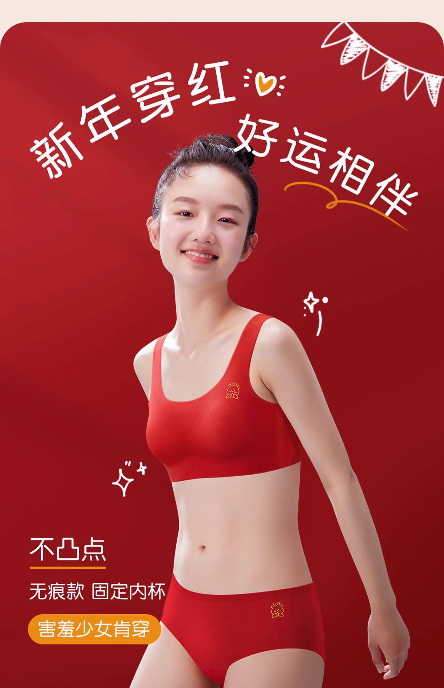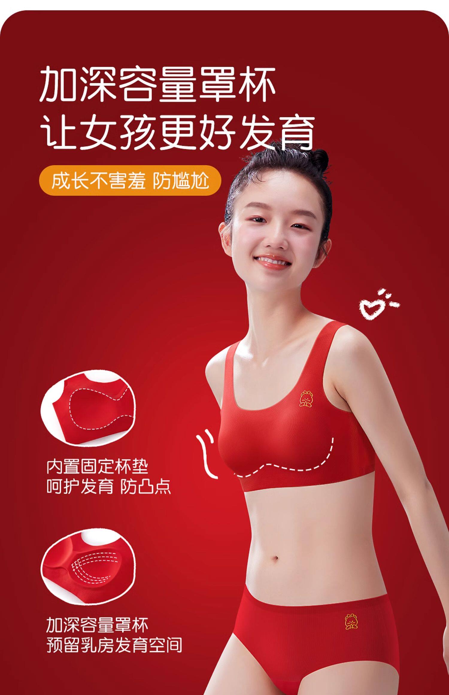 女童紅色本命年內衣內褲套裝初高中學生發育期少女文胸背心二階段
