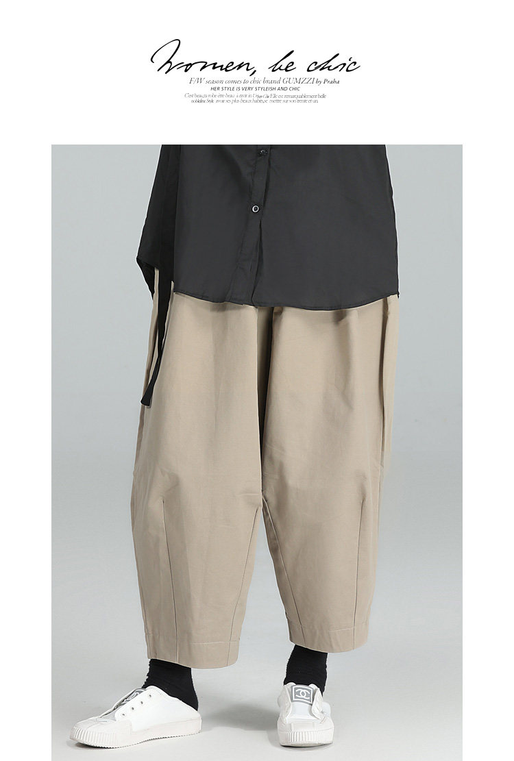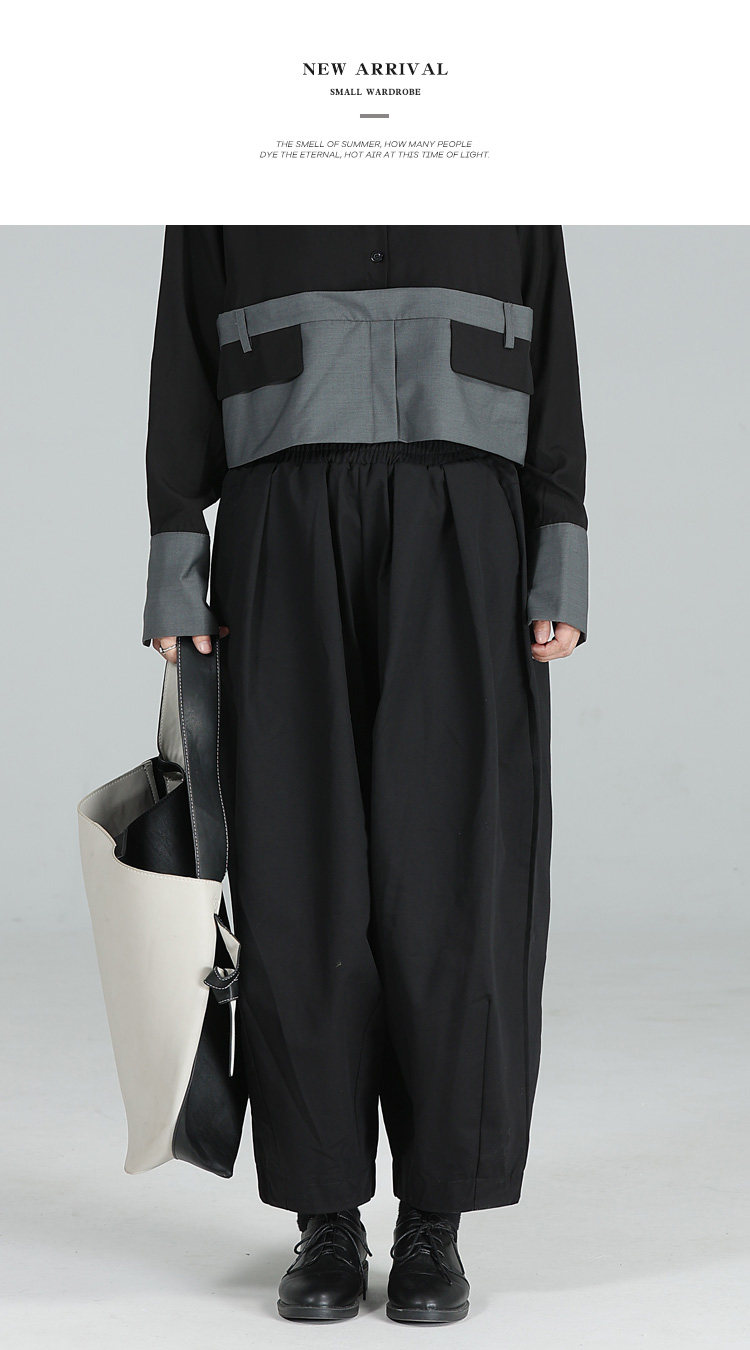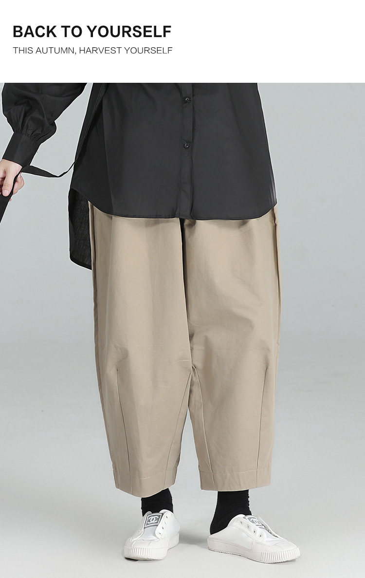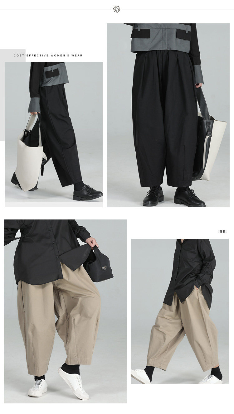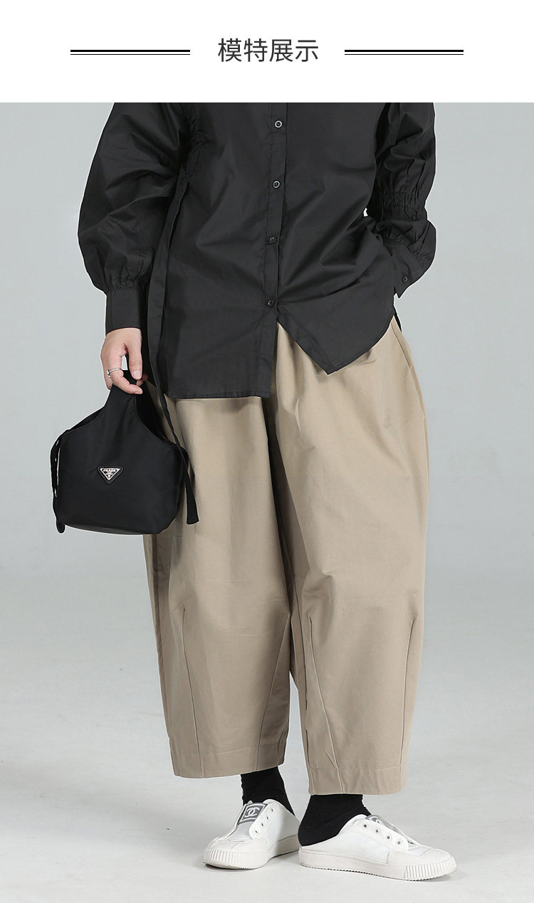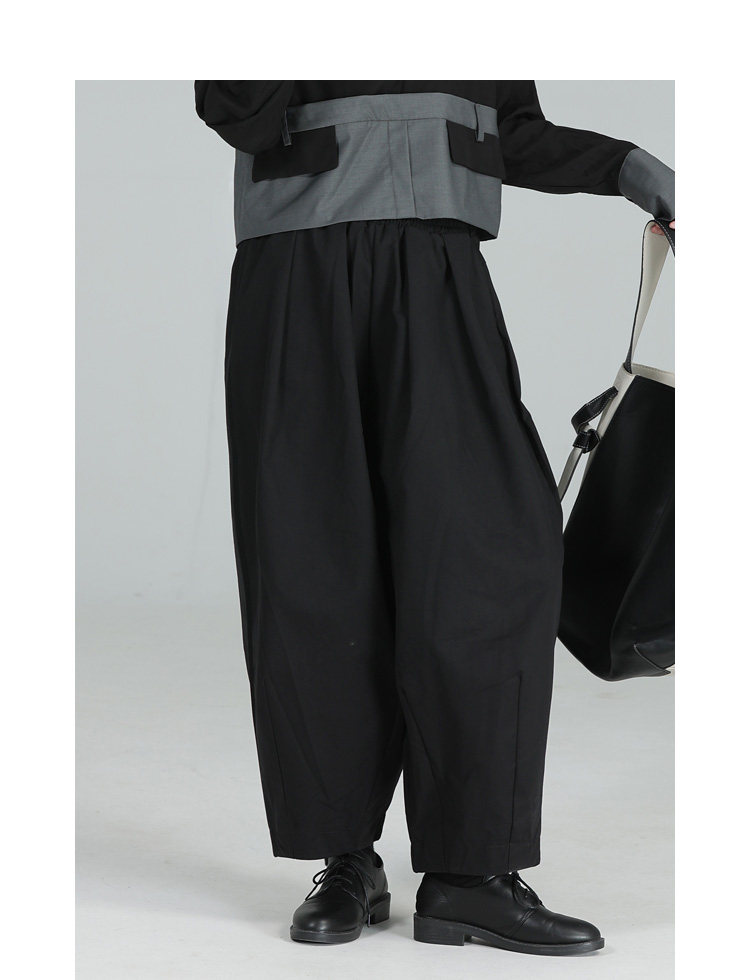 設計感山本黑色日系輪廓感九分蘿蔔褲女男春秋休閒寬鬆大哈倫褲子
