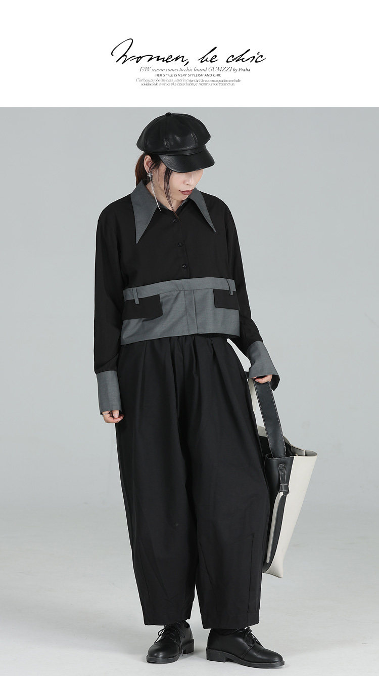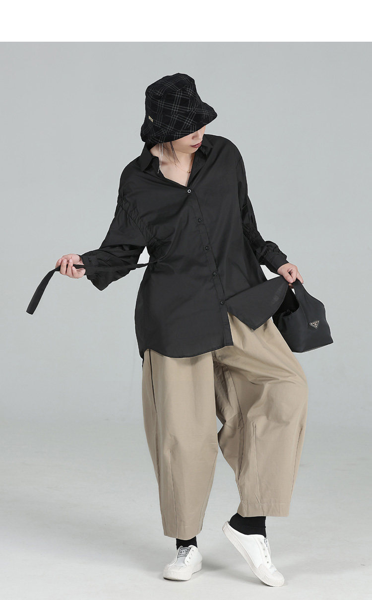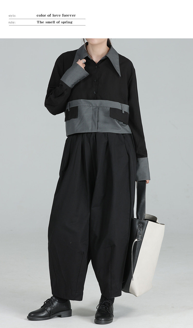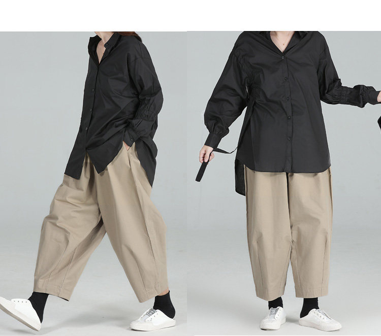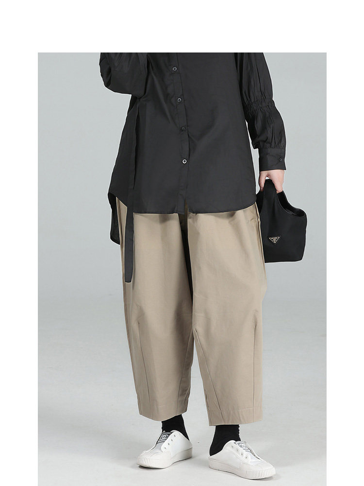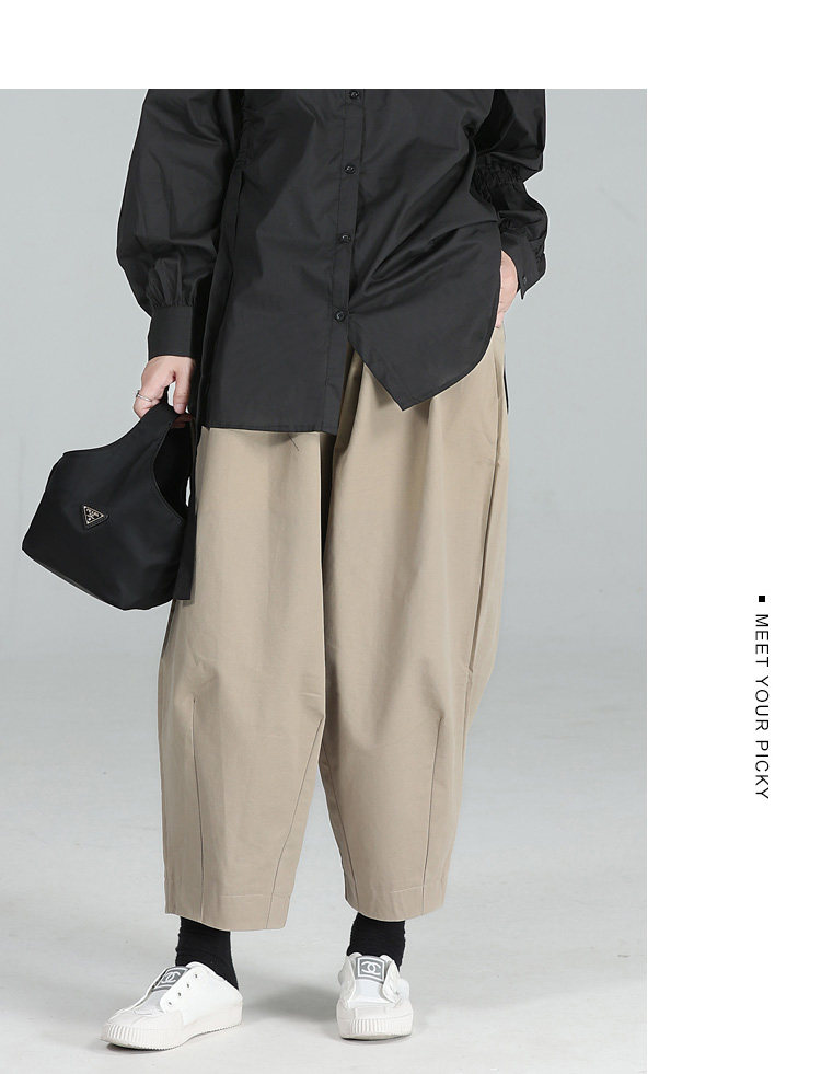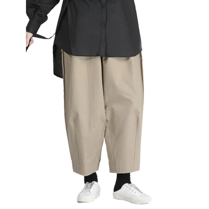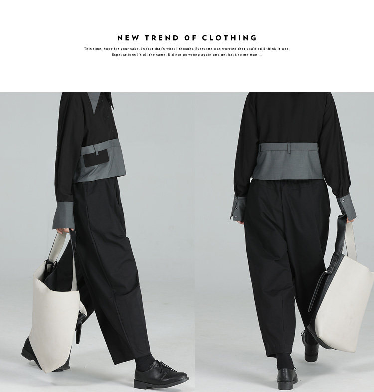 設計感山本黑色日系輪廓感九分蘿蔔褲女男春秋休閒寬鬆大哈倫褲子