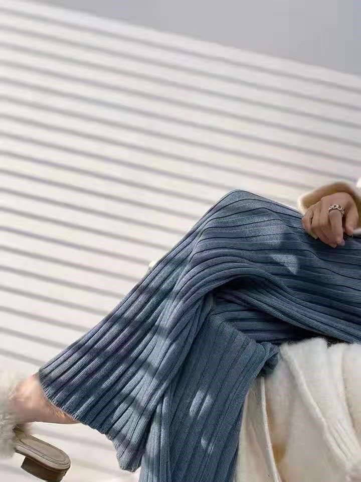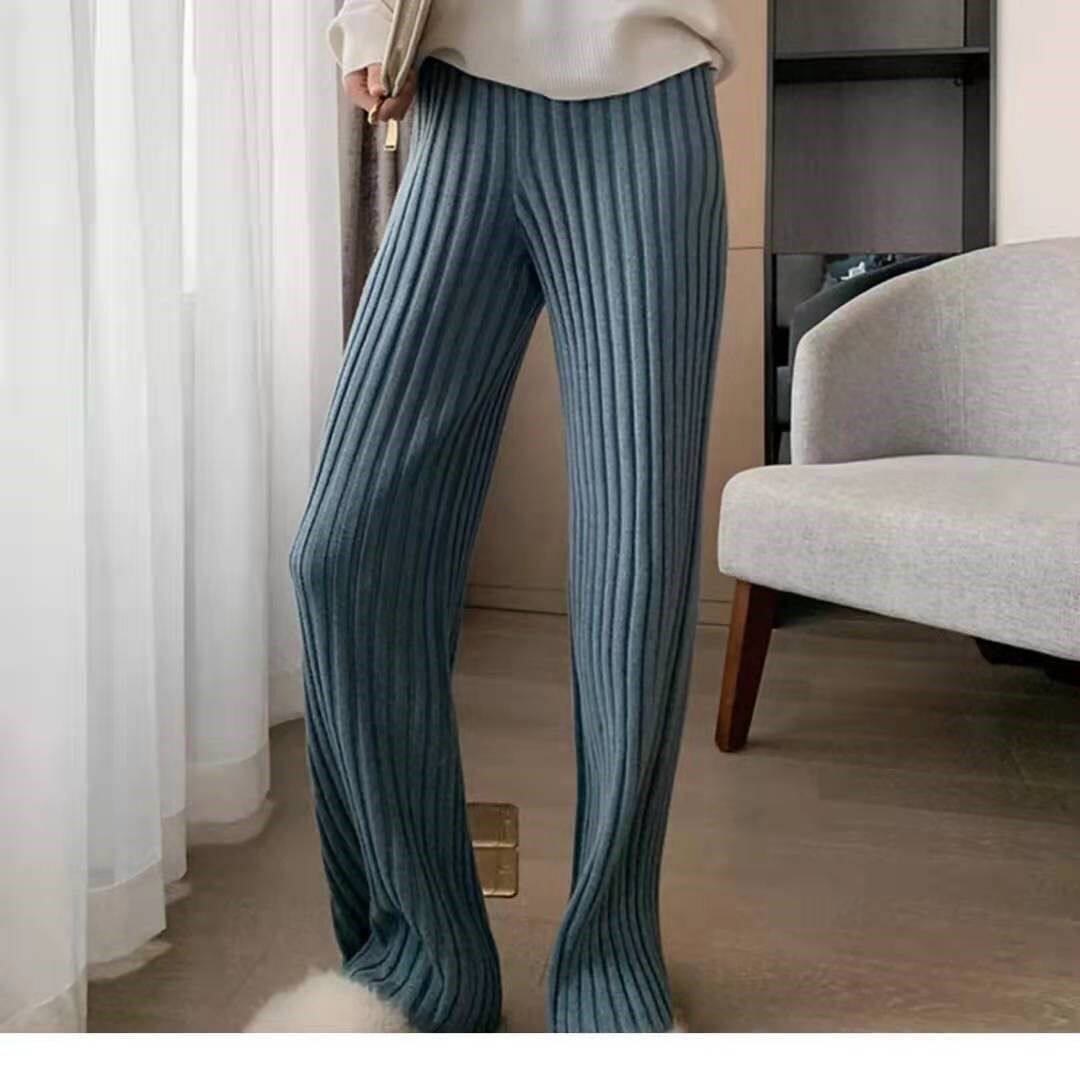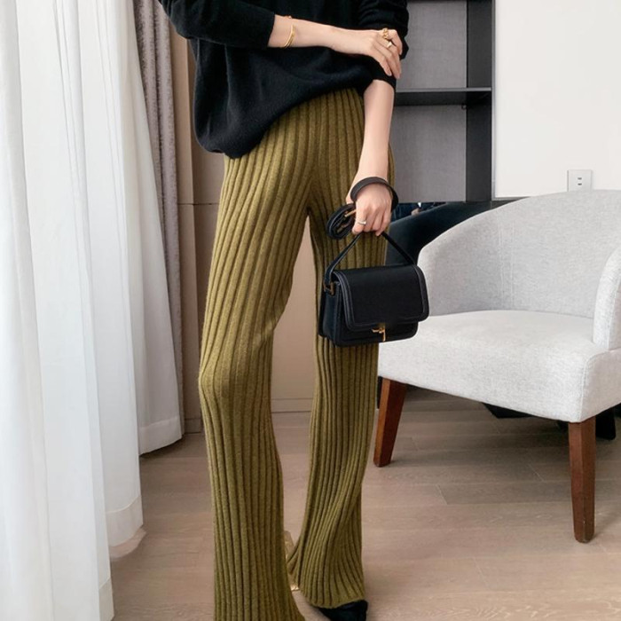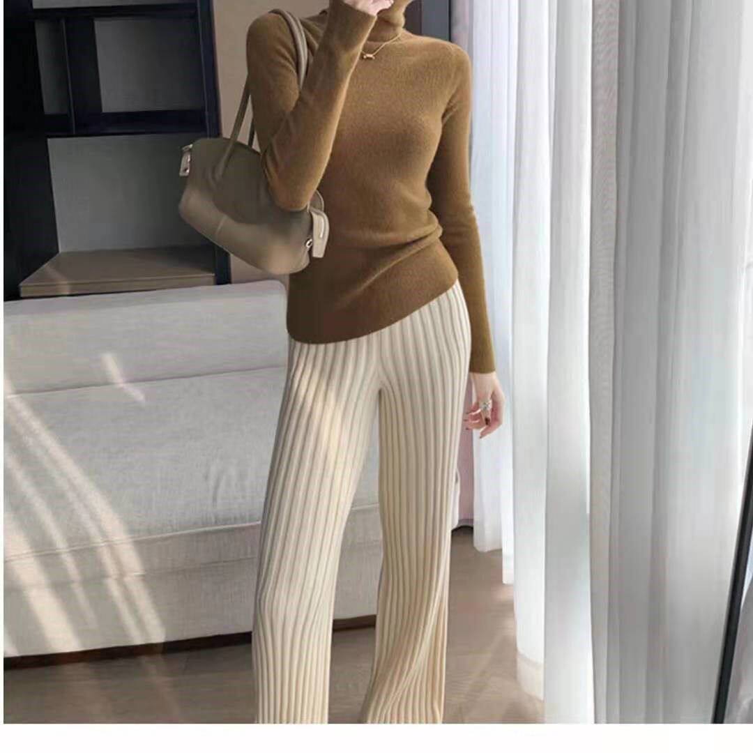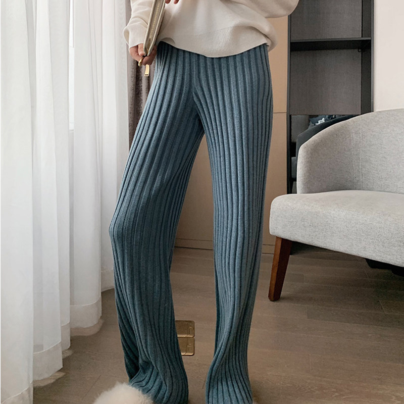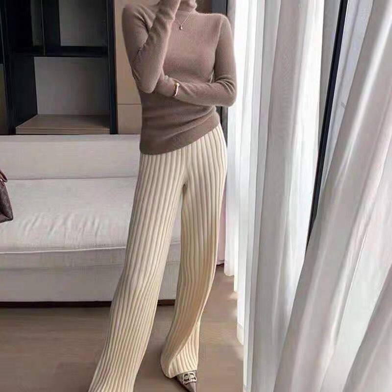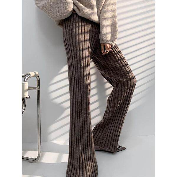 加厚保暖羊絨秋冬拖地褲長褲濶腿褲高腰韓版毛褲針織褲子微喇叭褲