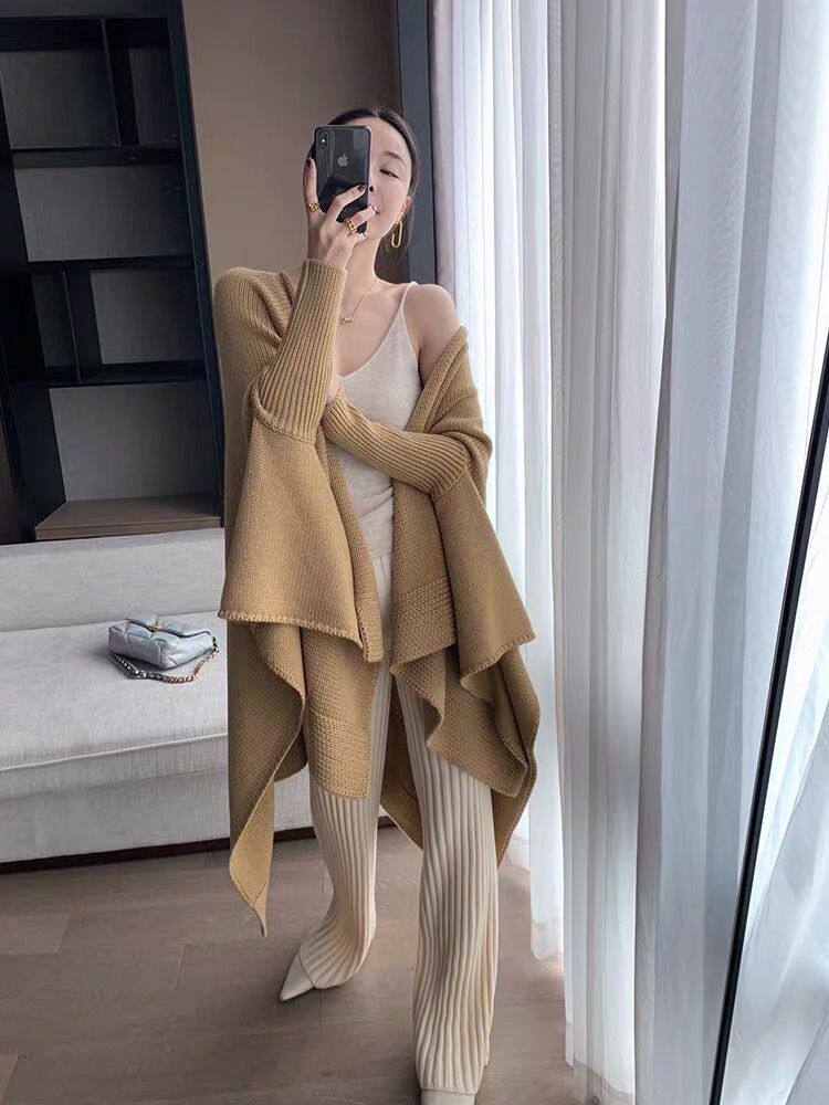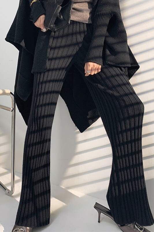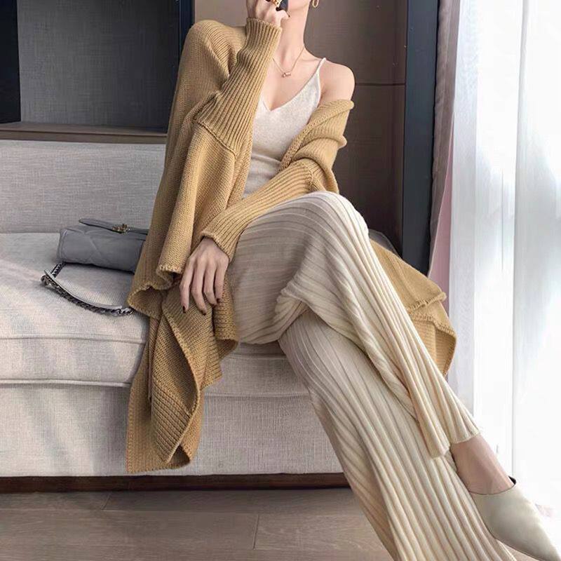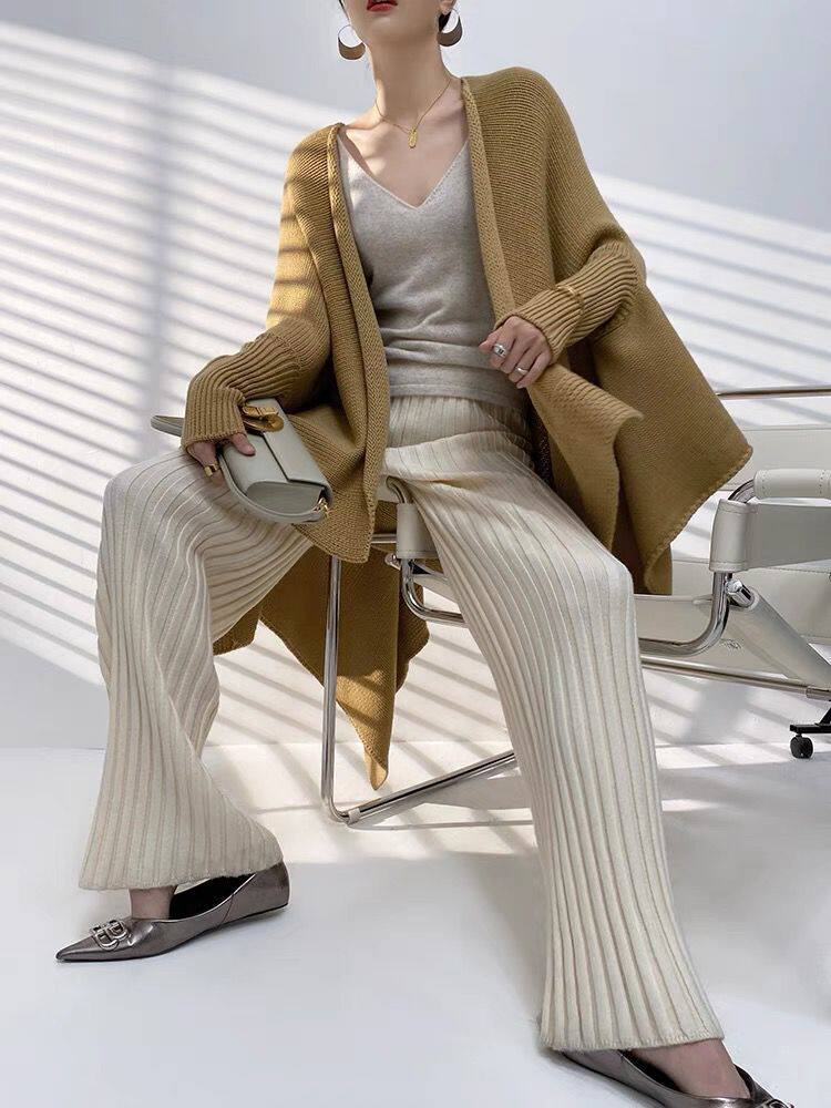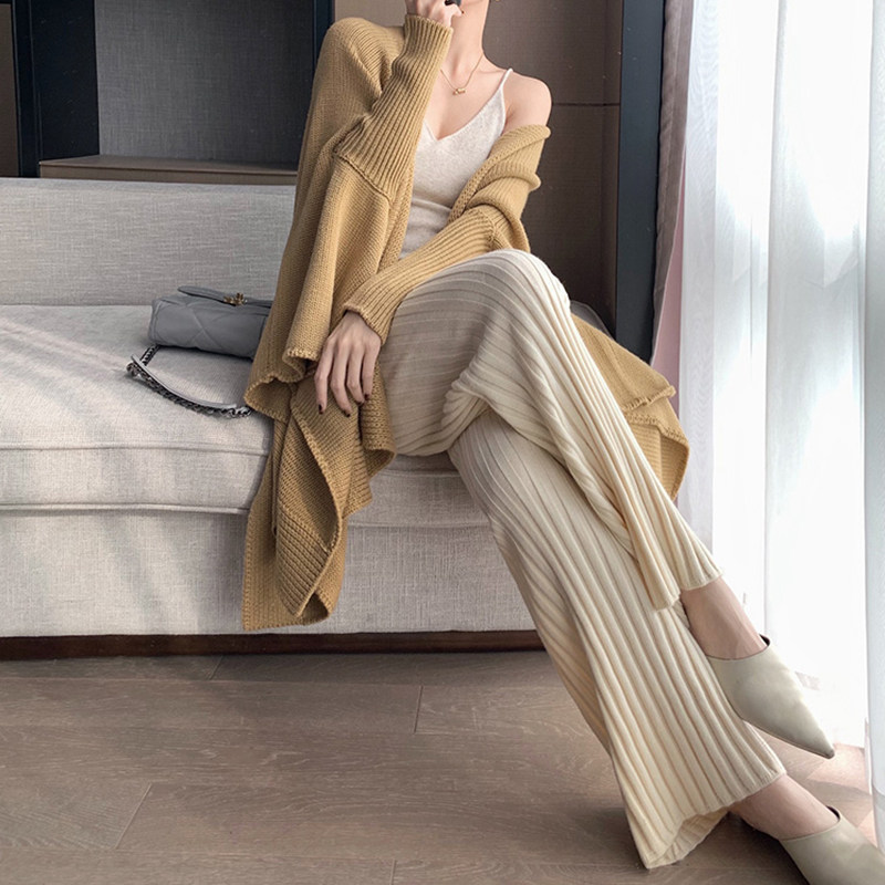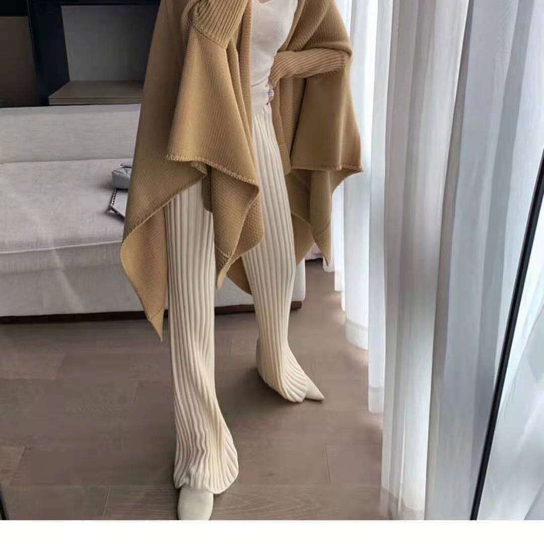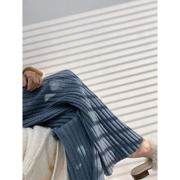加厚保暖羊絨秋冬拖地褲長褲濶腿褲高腰韓版毛褲針織褲子微喇叭褲