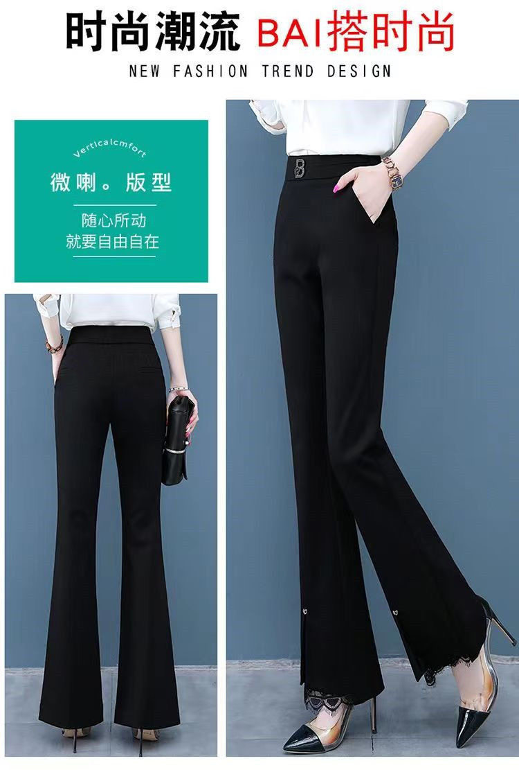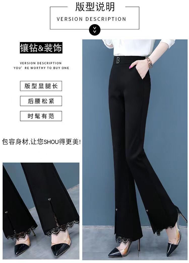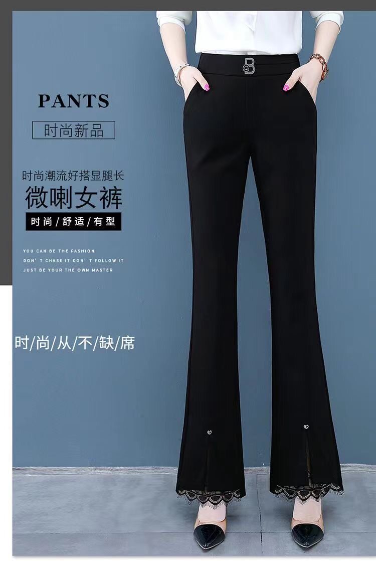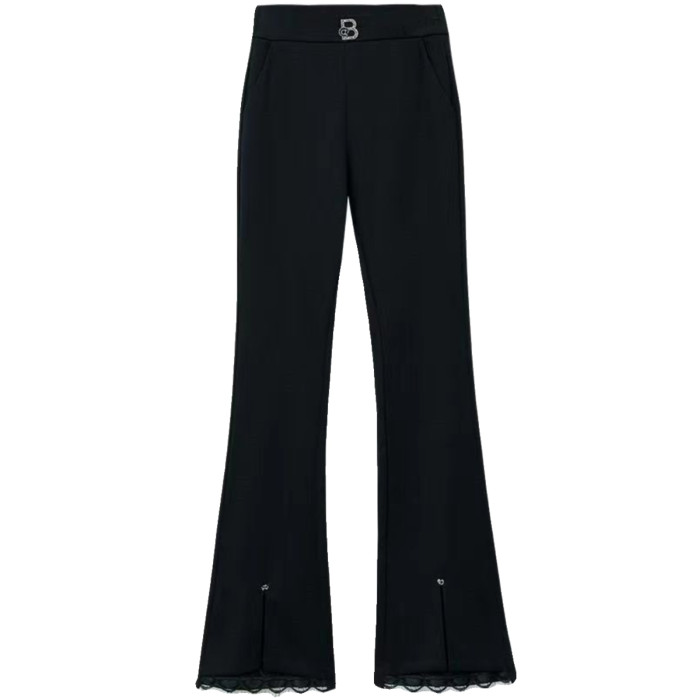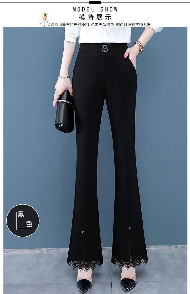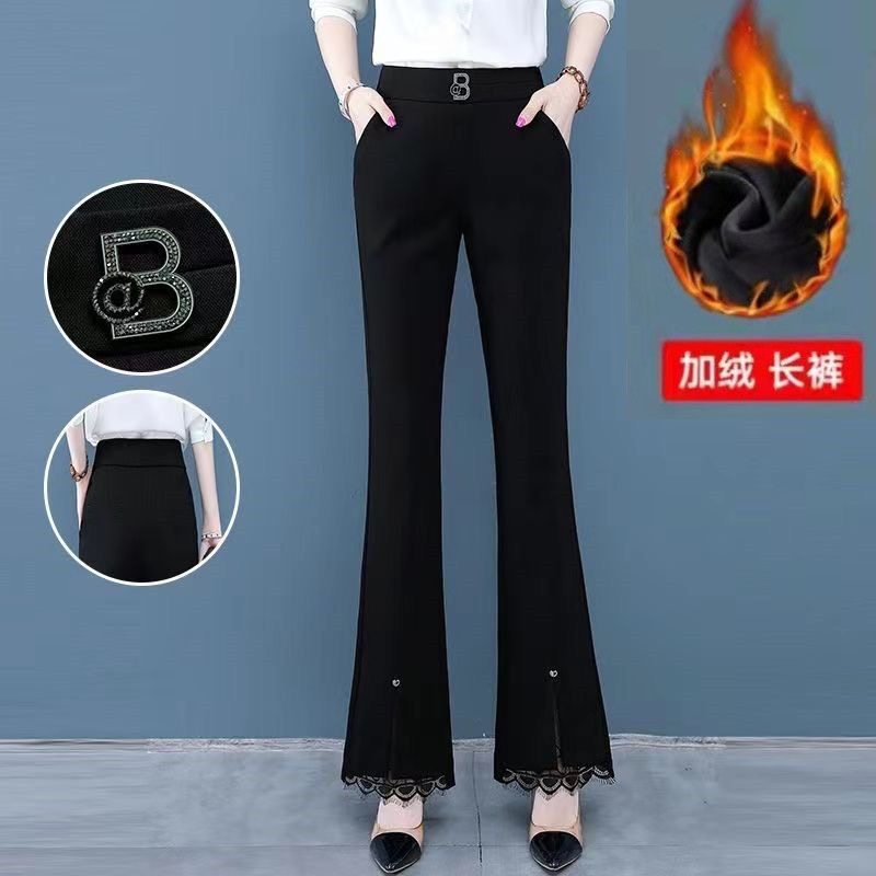 開叉花邊微喇褲女2024秋冬新款加絨百搭高腰顯瘦韓版時尚喇叭長褲