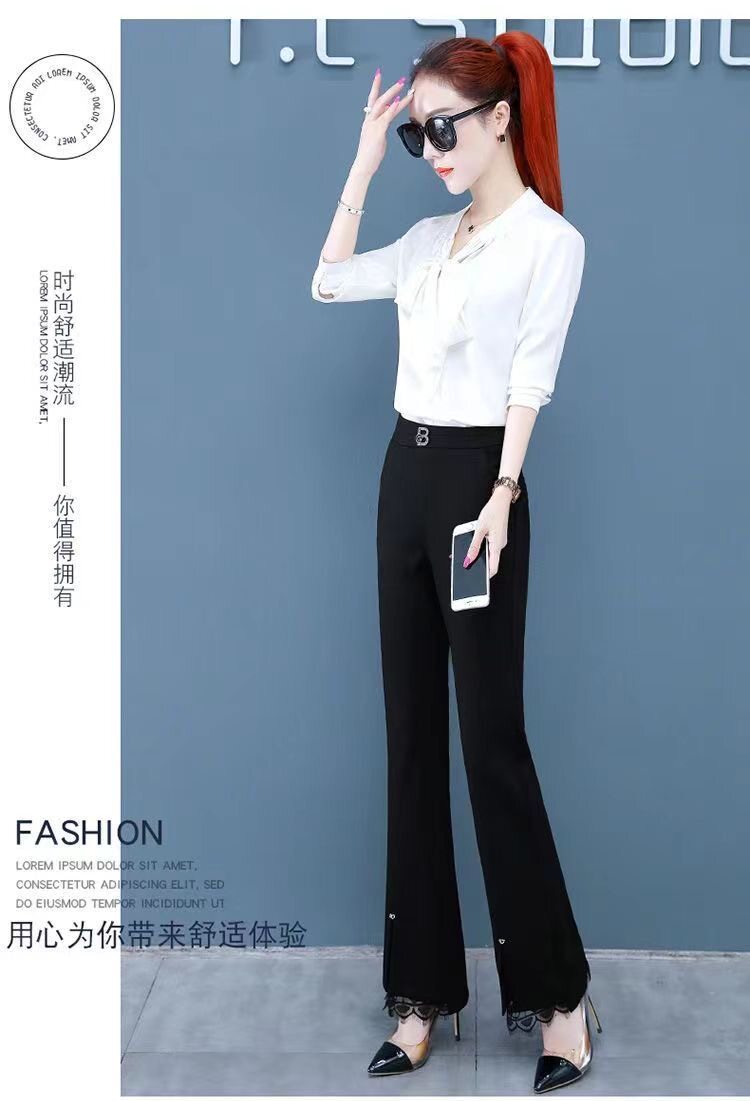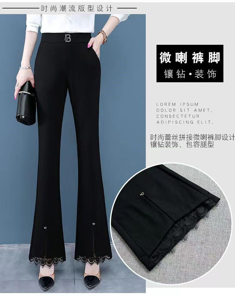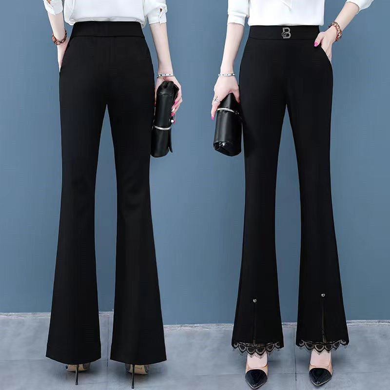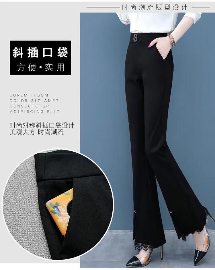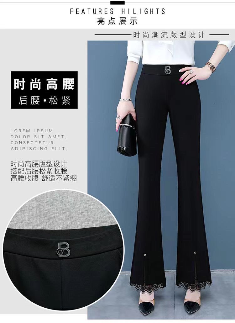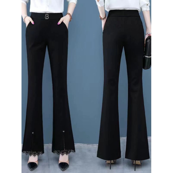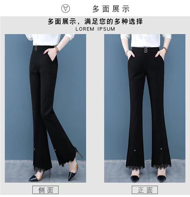 開叉花邊微喇褲女2024秋冬新款加絨百搭高腰顯瘦韓版時尚喇叭長褲