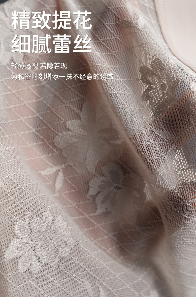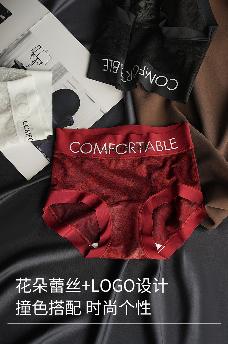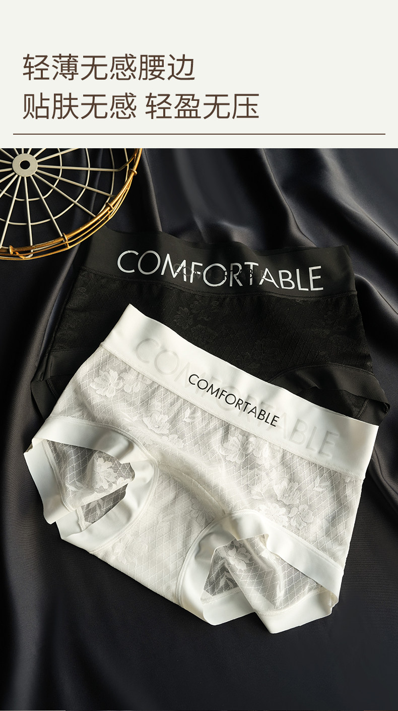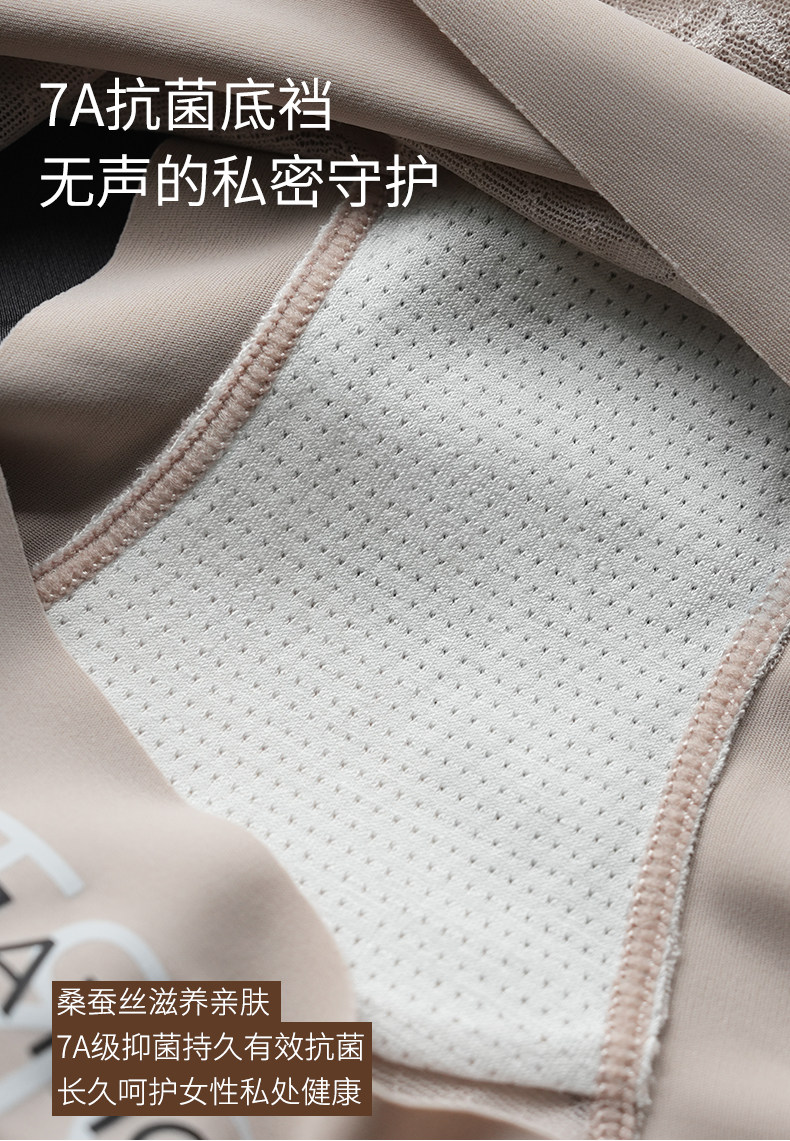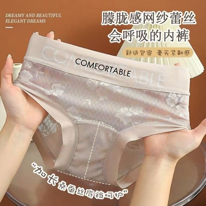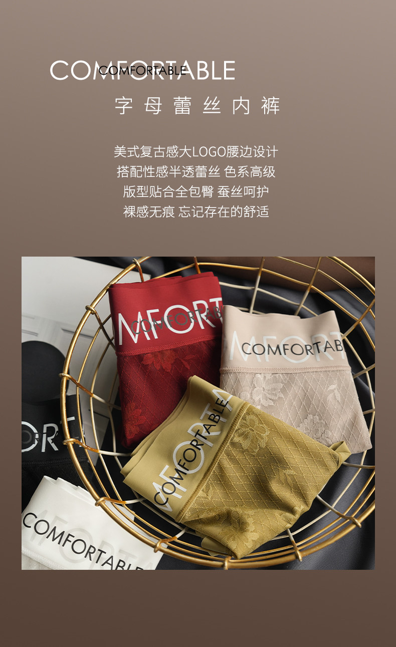 Ufee無痕蕾絲中腰字母簡約歐若風時尚款加長桑蠶絲底檔內褲2519