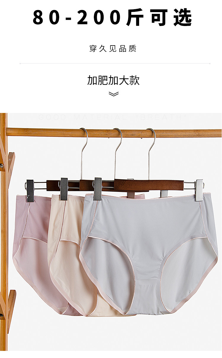 大碼冰絲內褲女士中高腰 一片式無痕三角褲頭夏季輕薄胖mm200斤