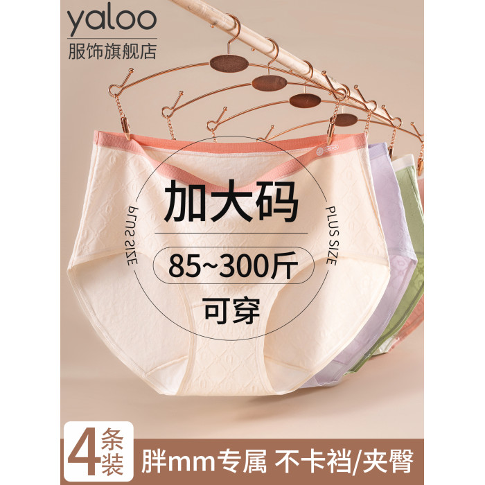 雅鹿大碼內褲女士胖mm純棉高腰收腹300斤加肥加大碼女款三角短褲