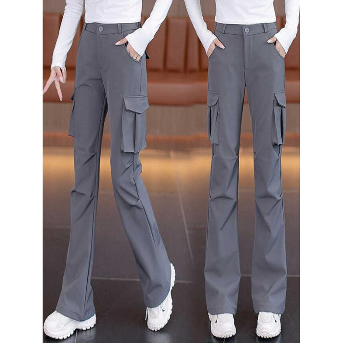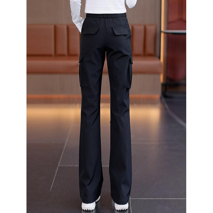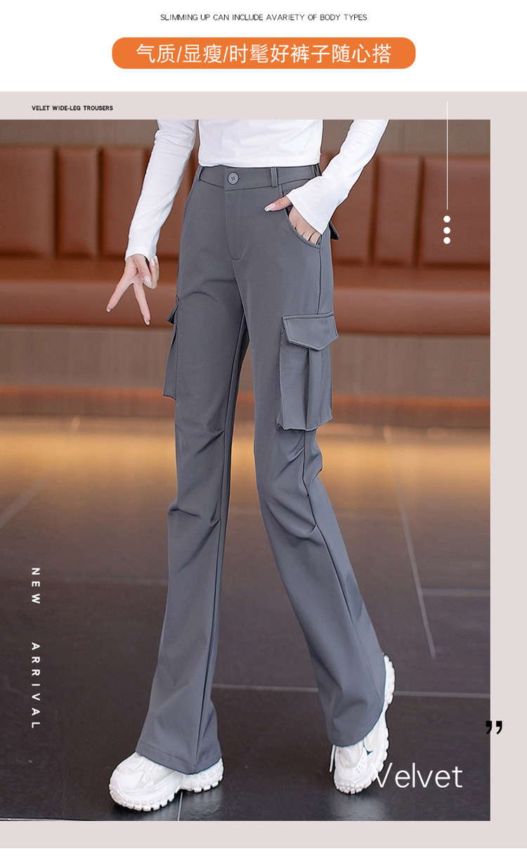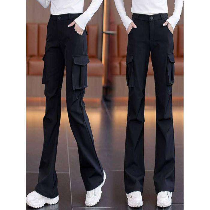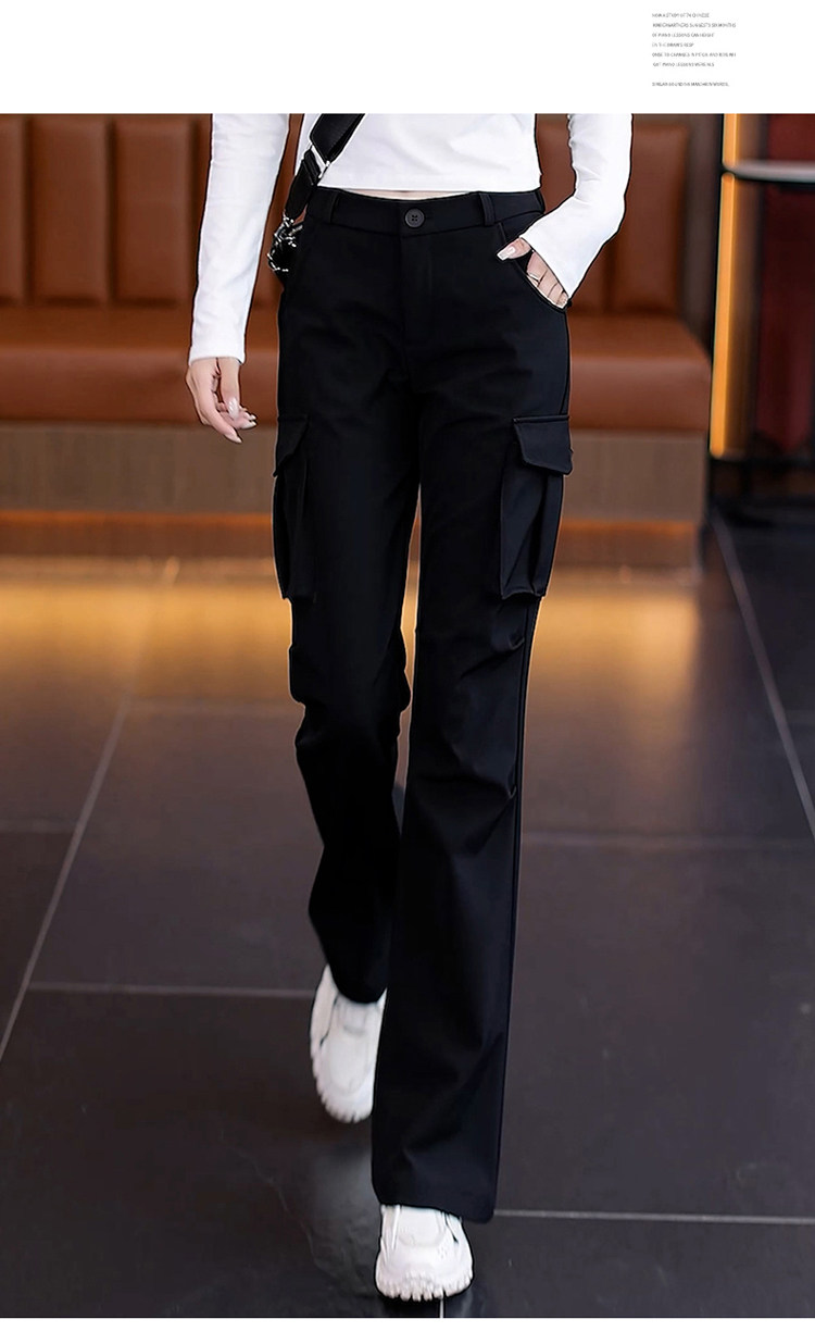 美式復古工裝褲微喇叭女款2026春秋季新款黑色高腰顯瘦降落傘兵褲