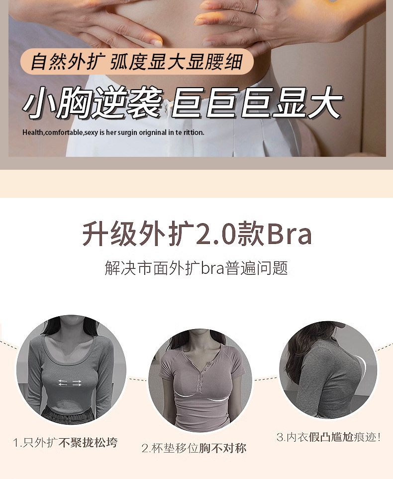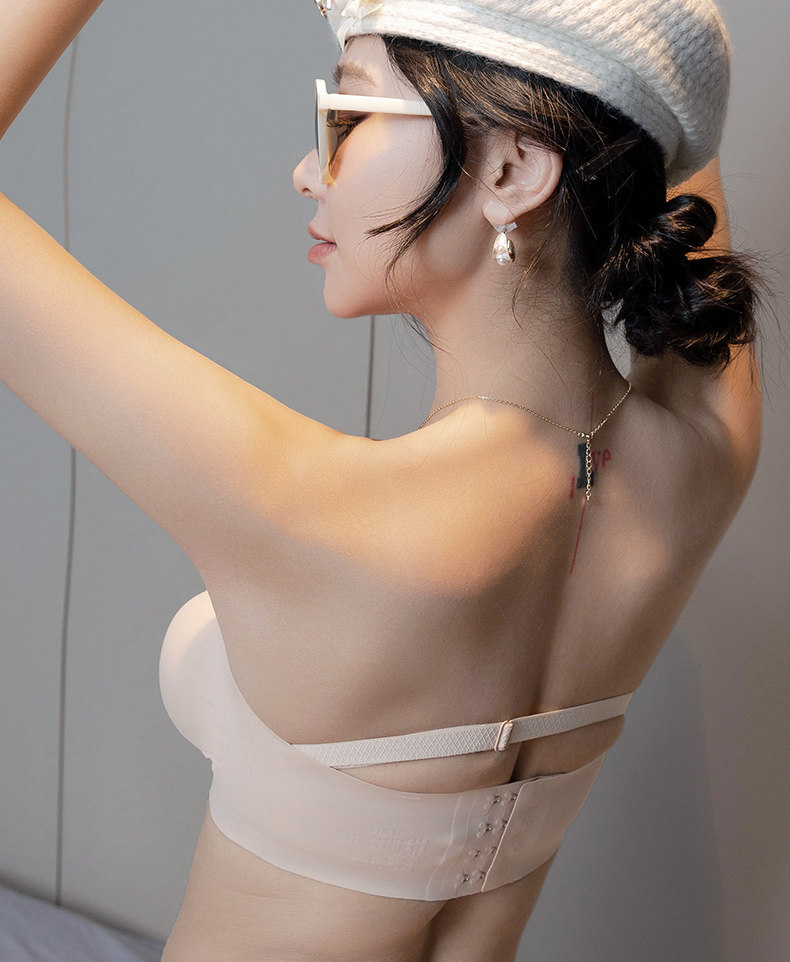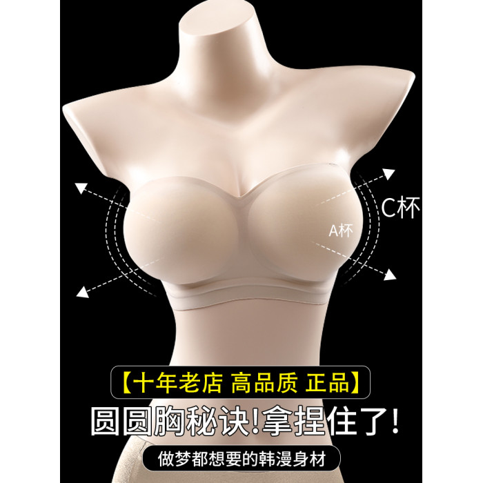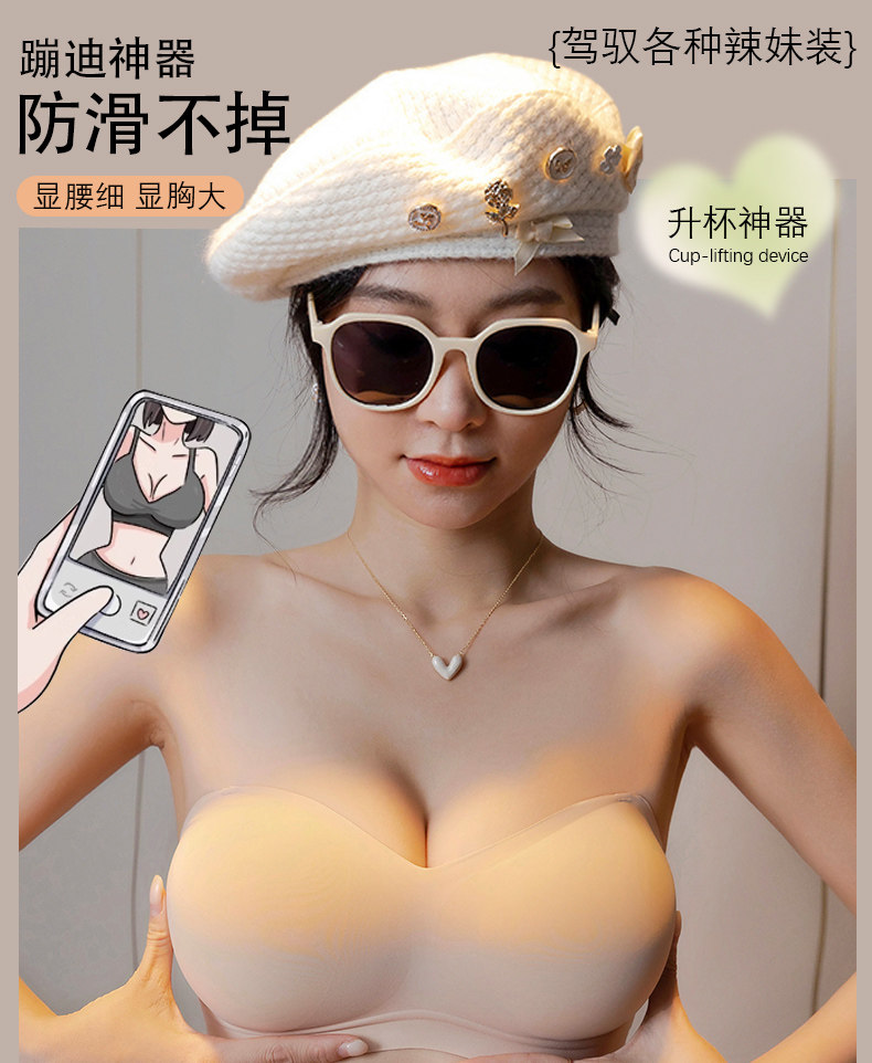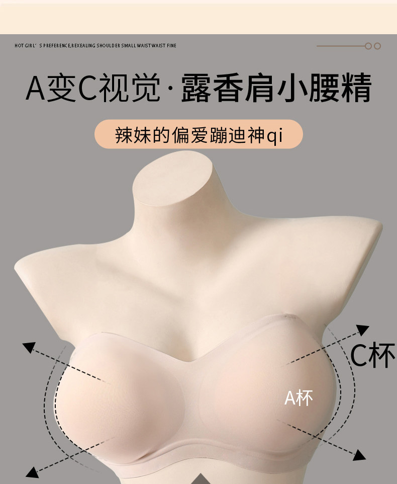 外擴加厚無肩帶內衣女防滑聚攏小胸顯大抹胸裹胸隱形漫畫胸文胸罩