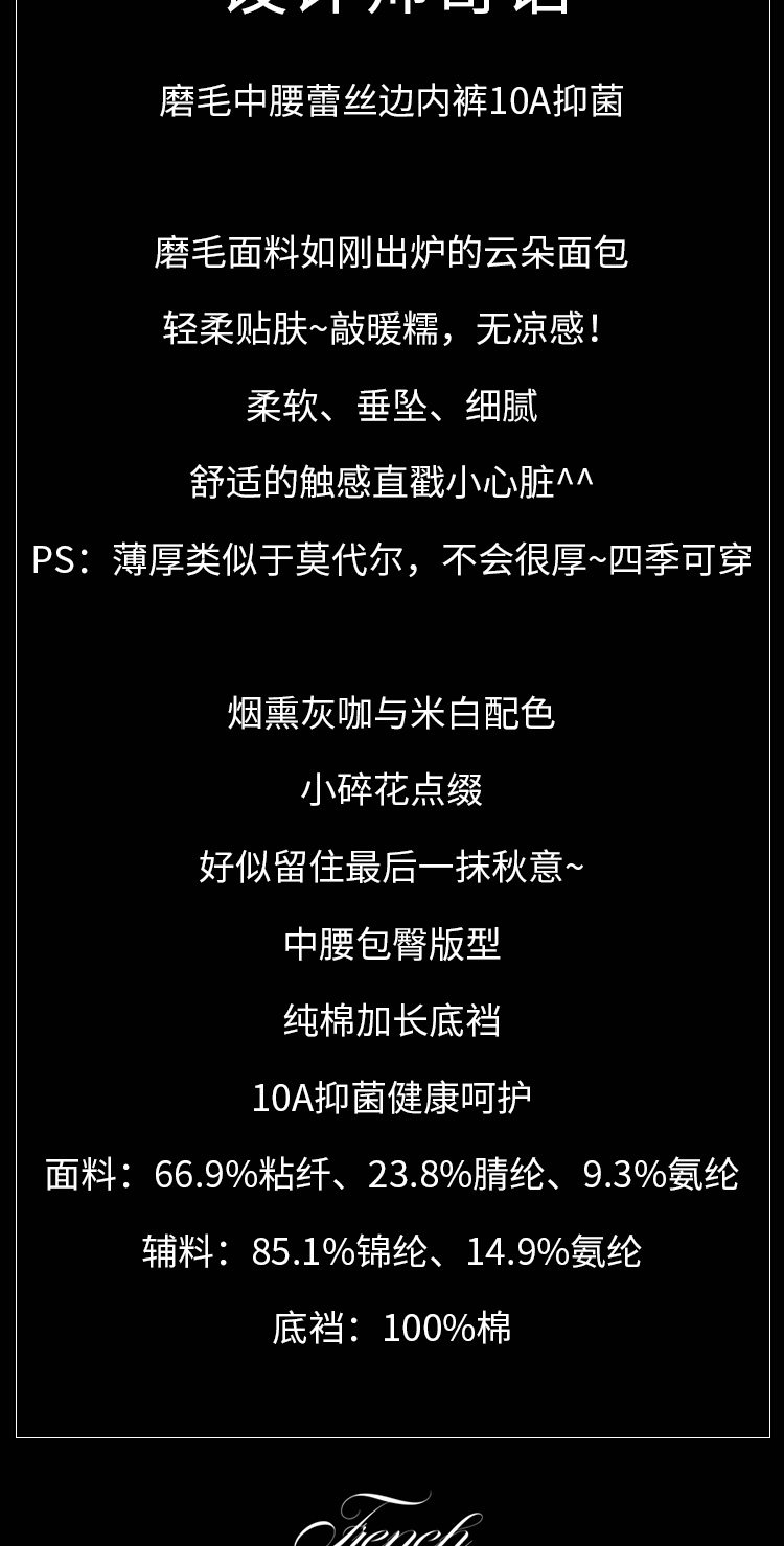 法式復古磨毛內褲女2025新10A抑菌中腰無痕透氣棉襠少女三角褲