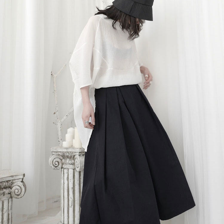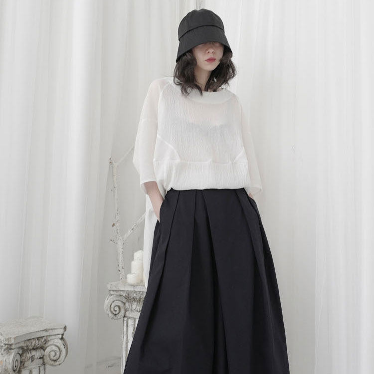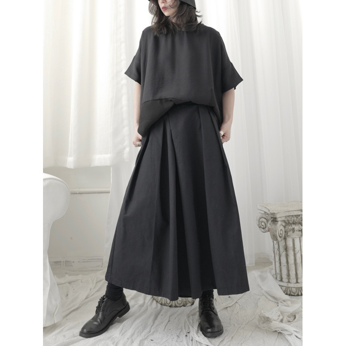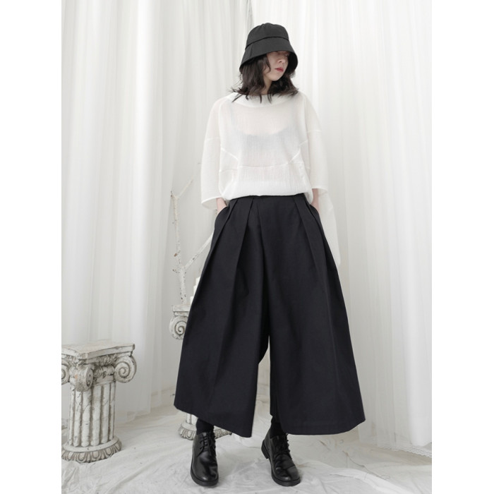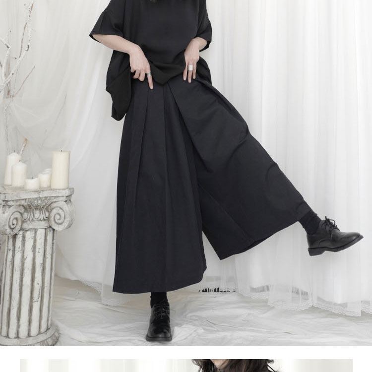 隱覔山本暗黑系七分褲裙褲女秋高腰顯瘦不規則小衆日系寬鬆濶腿褲