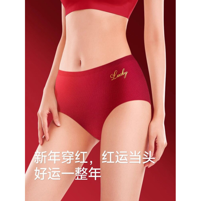 本命年紅色內衣內褲套裝女士屬馬無痕文胸罩純棉抗菌結婚新娘女裝