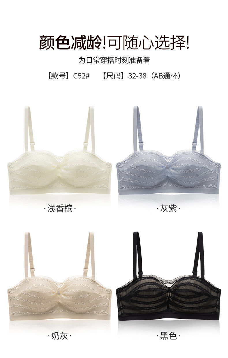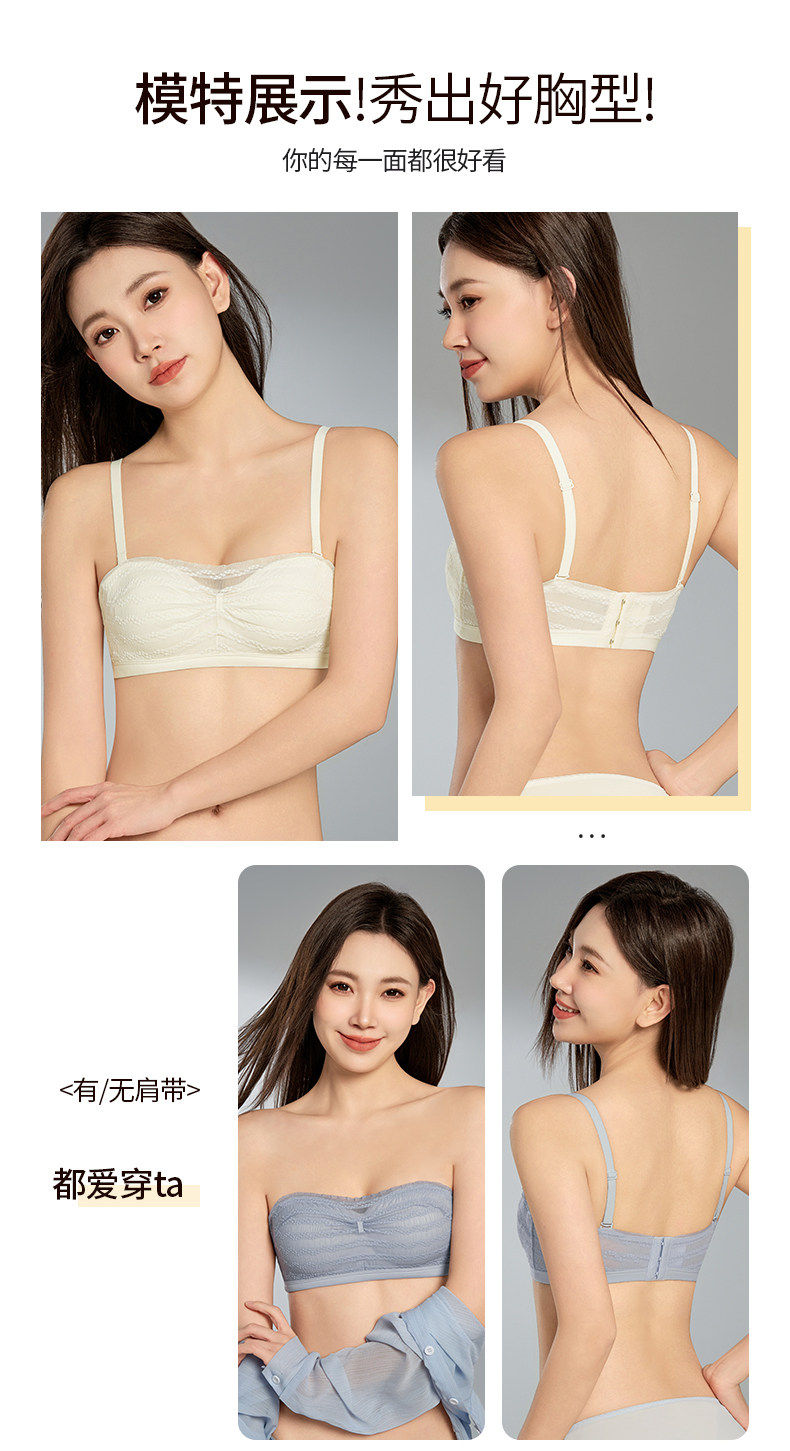 無肩帶抹胸內衣女小胸聚攏防走光蕾絲無鋼圈隱形露肩防滑文胸