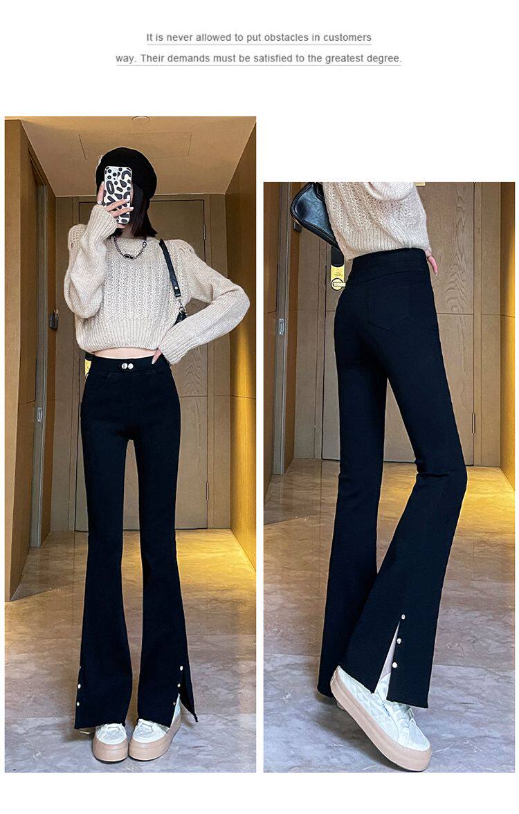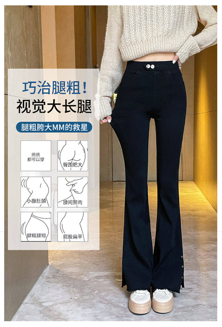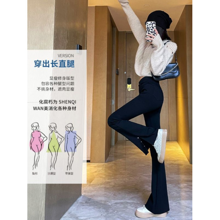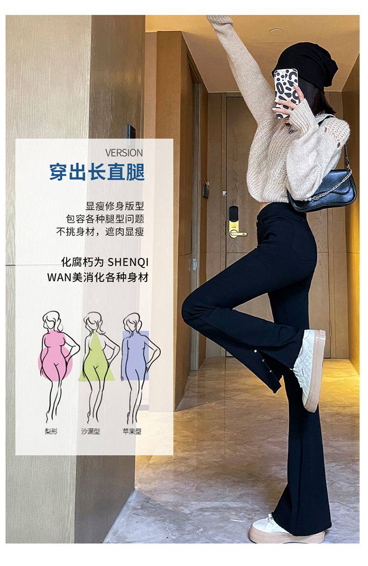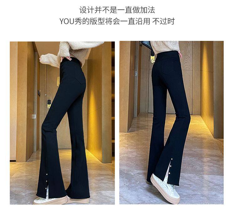 黑色微喇叭褲防牛仔褲女秋冬2025新款高腰遮胯加絨小個子彈力修身