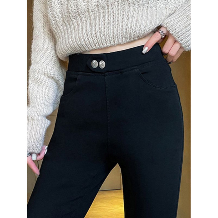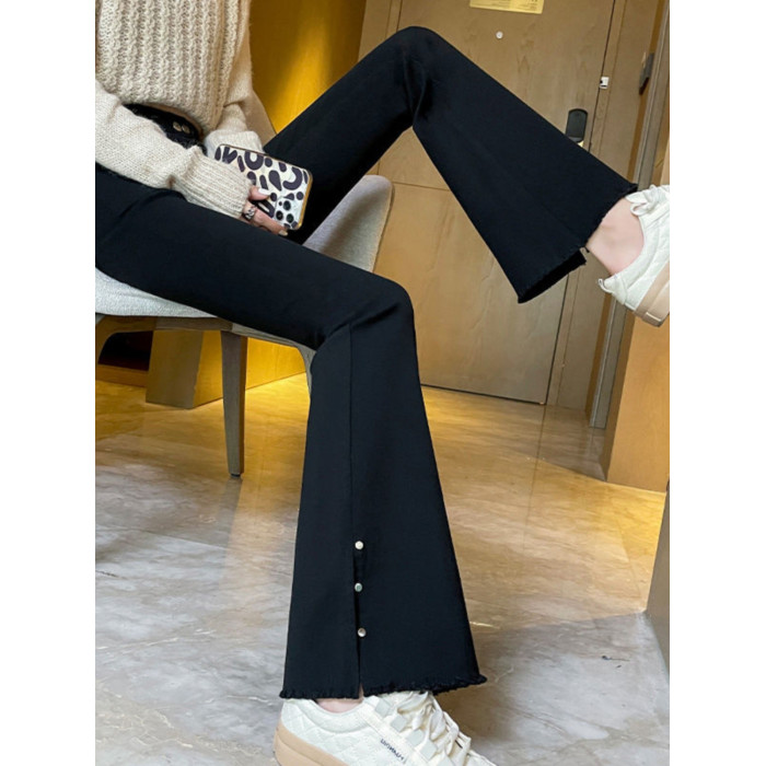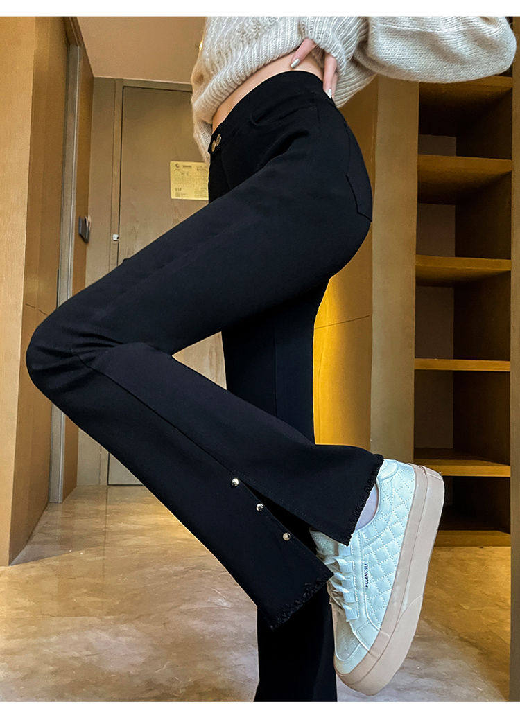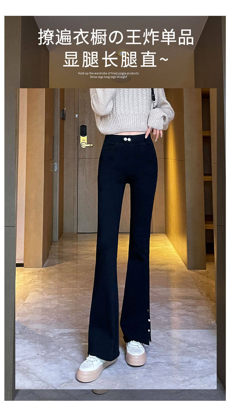 黑色微喇叭褲防牛仔褲女秋冬2025新款高腰遮胯加絨小個子彈力修身
