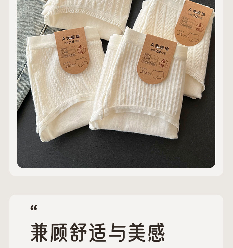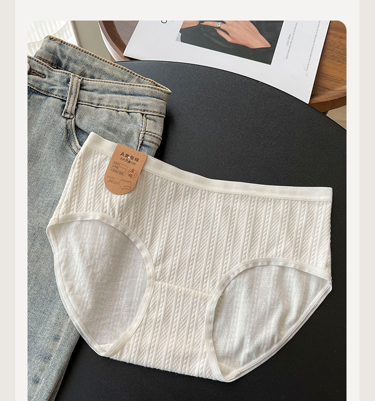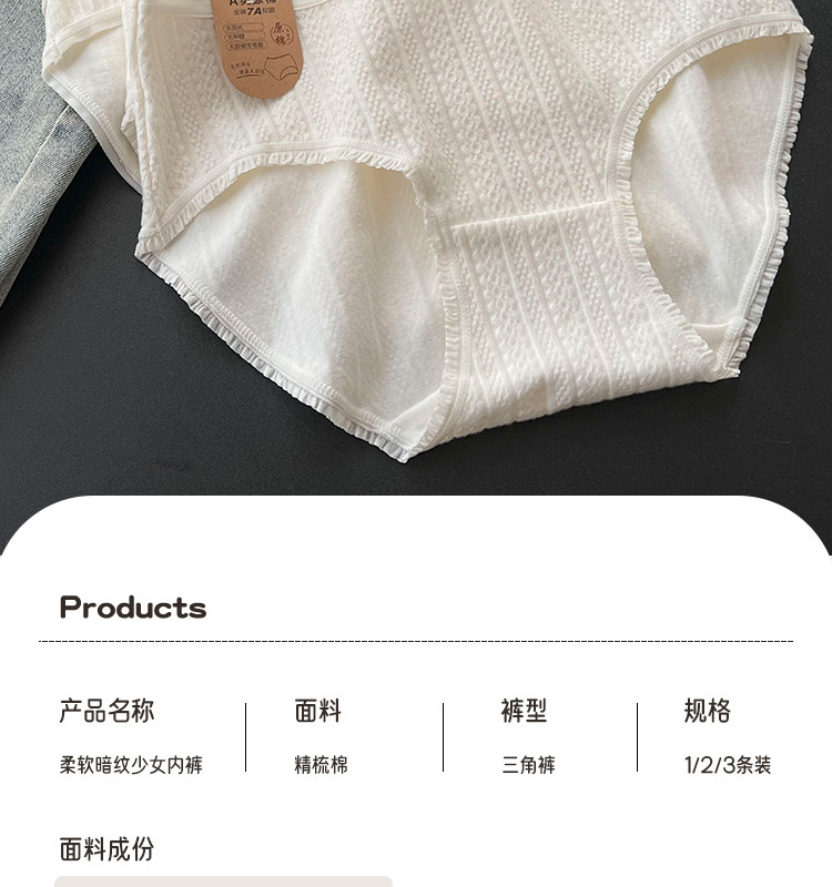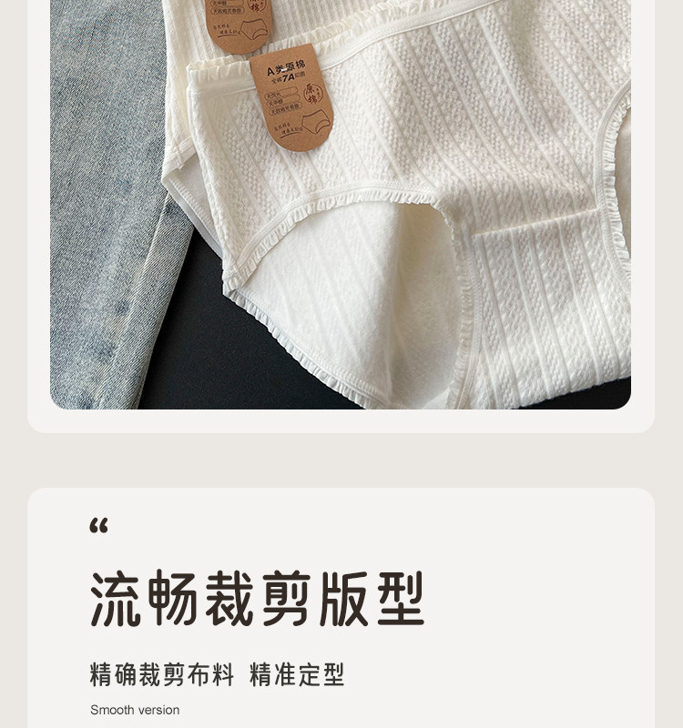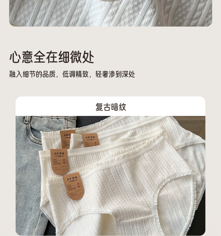 7A抑菌女士內褲純棉襠中腰無痕透氣舒適日系暗紋少女白色三角褲