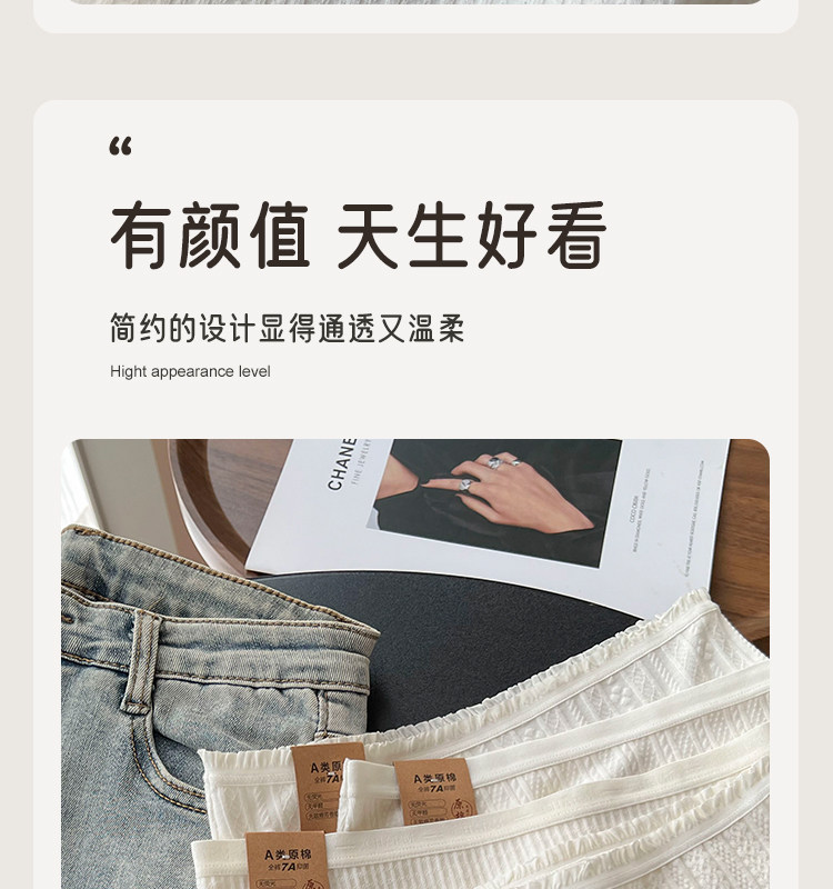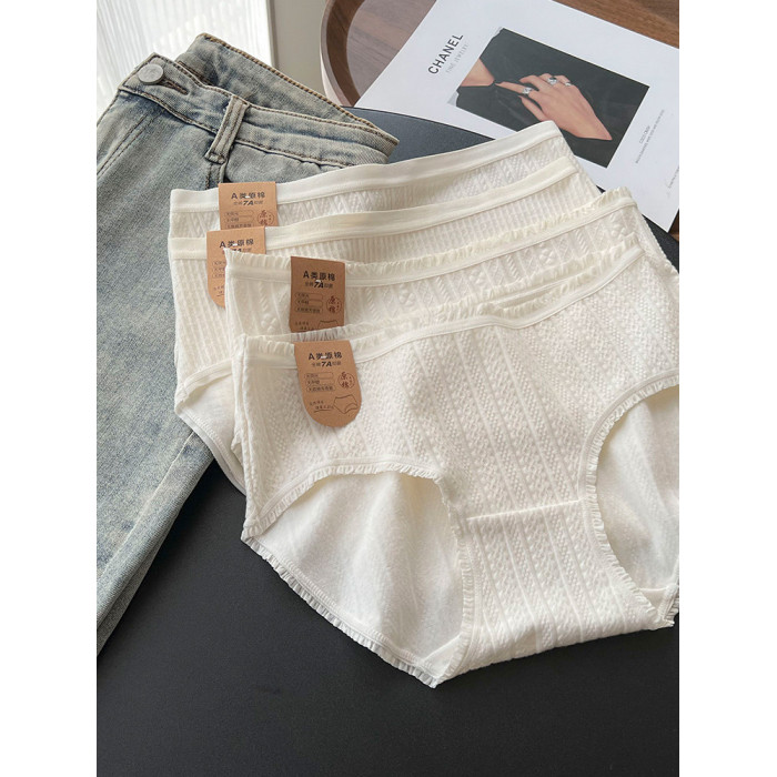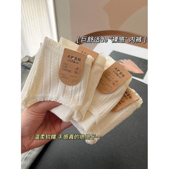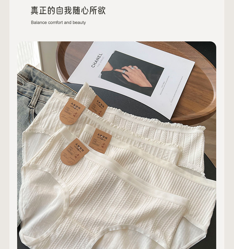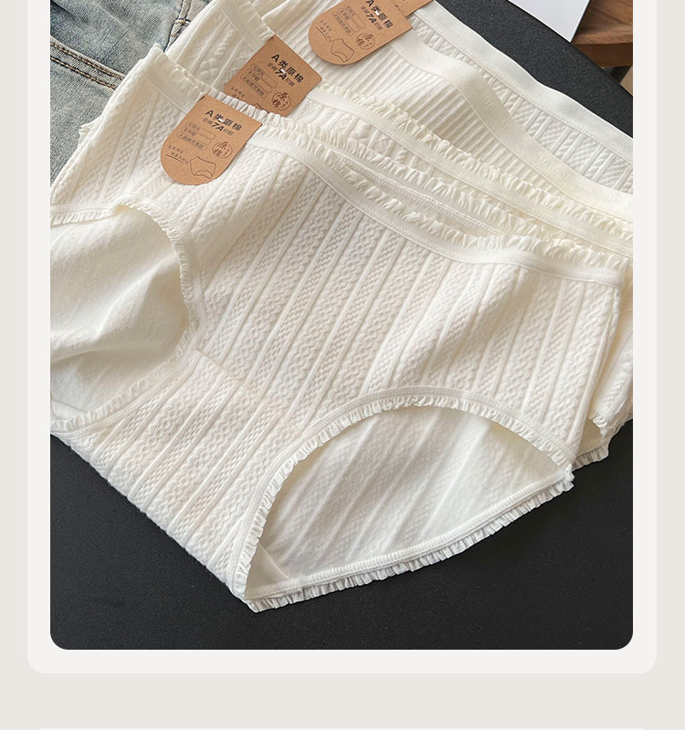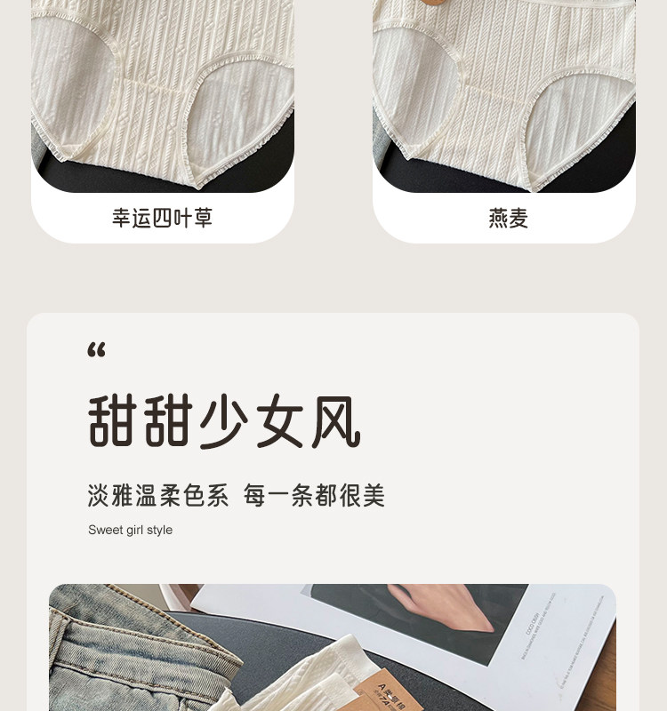 7A抑菌女士內褲純棉襠中腰無痕透氣舒適日系暗紋少女白色三角褲