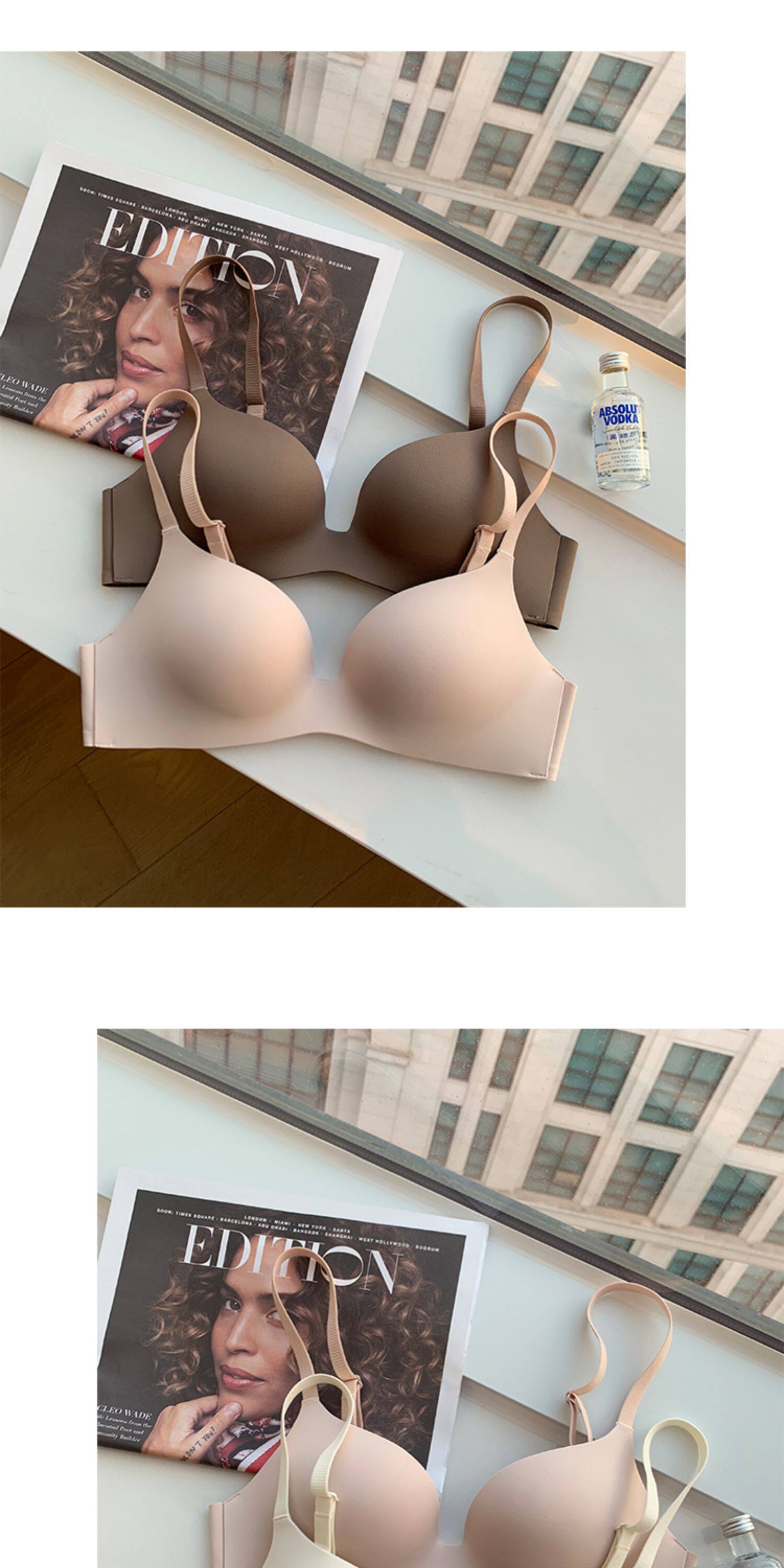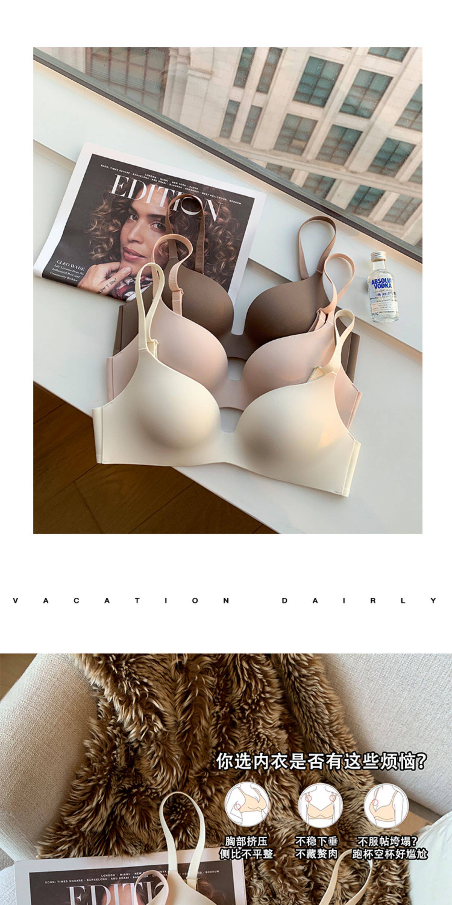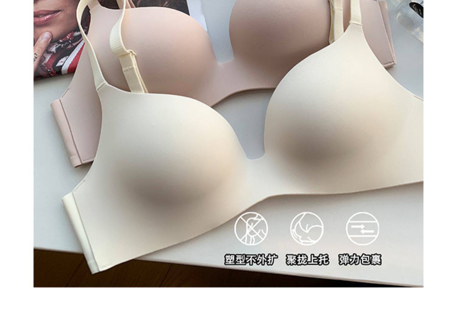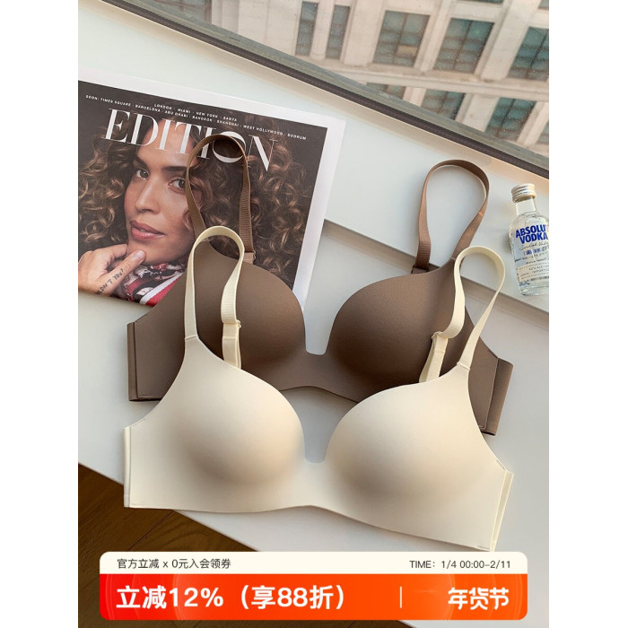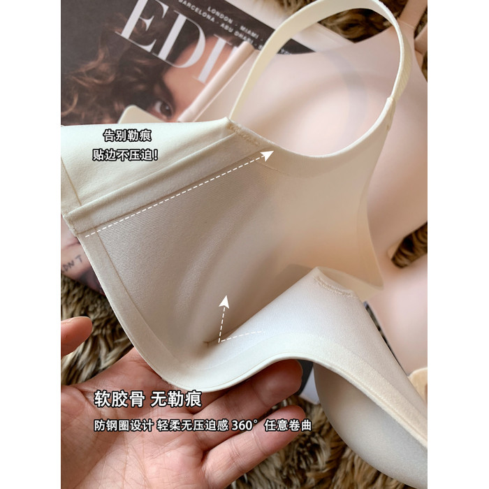 日本無痕一片式內衣女光面小胸聚攏薄款無鋼圈收副乳防下垂文胸罩