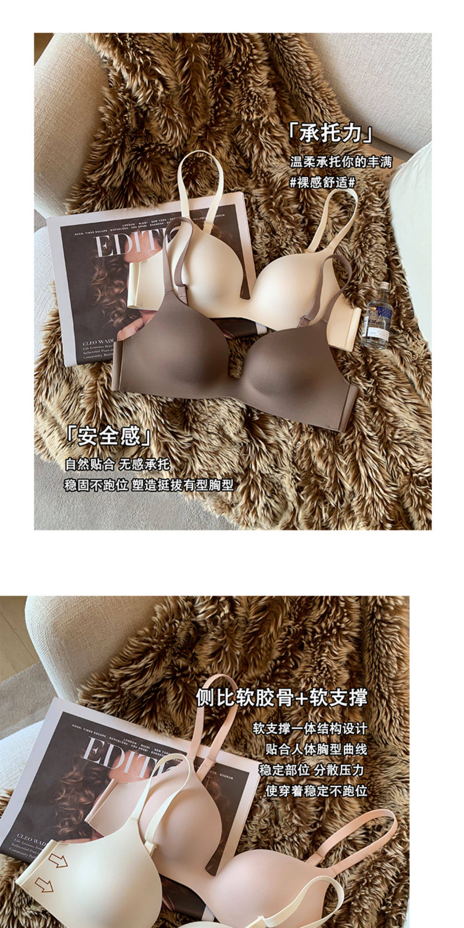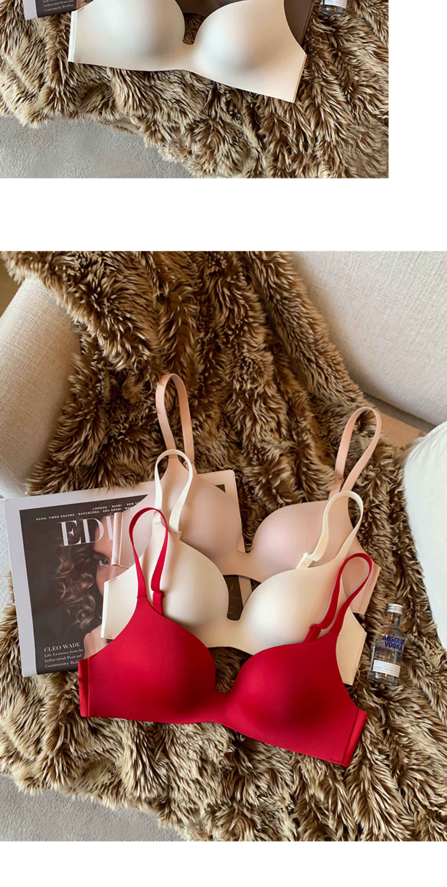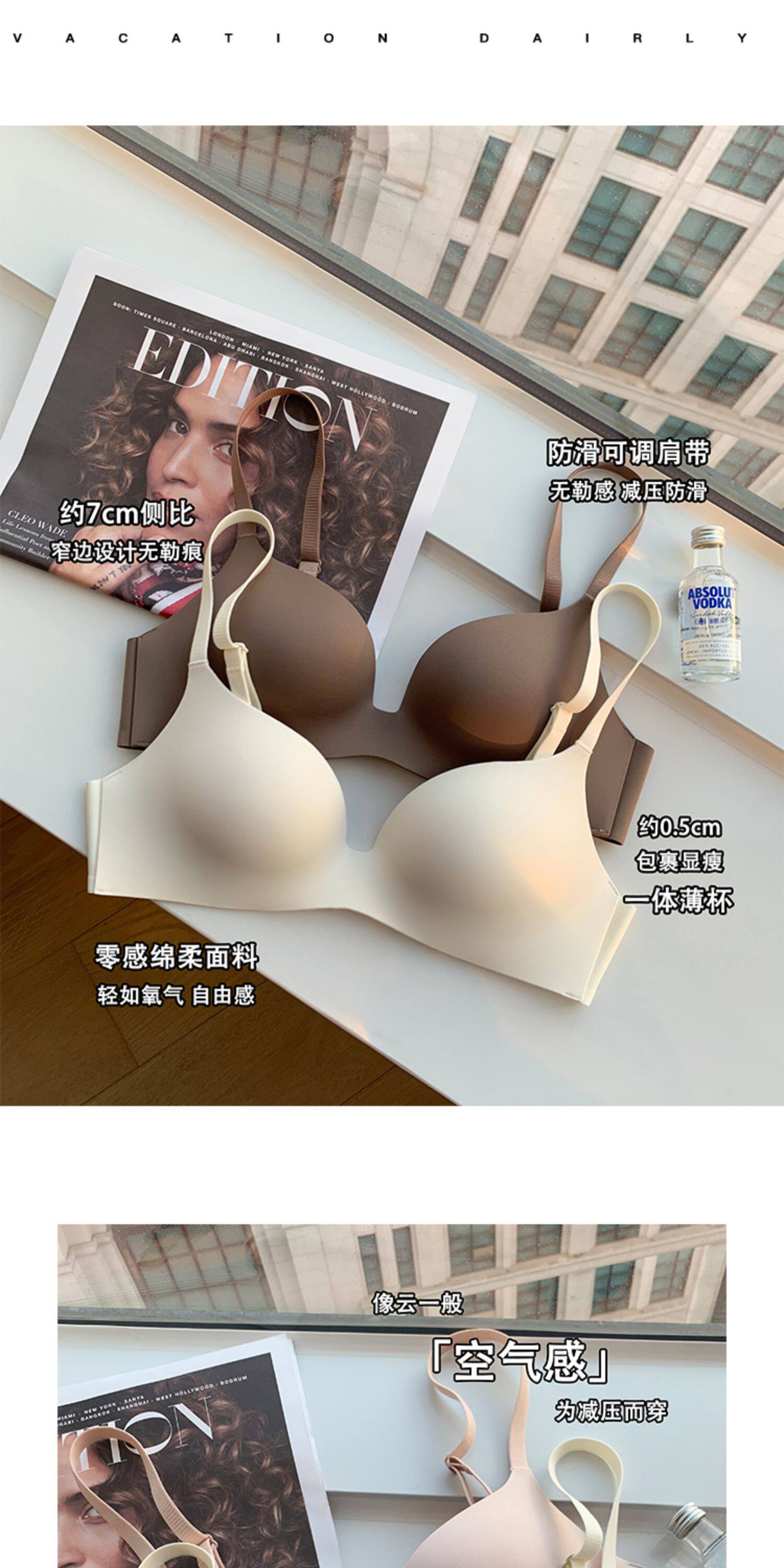 日本無痕一片式內衣女光面小胸聚攏薄款無鋼圈收副乳防下垂文胸罩