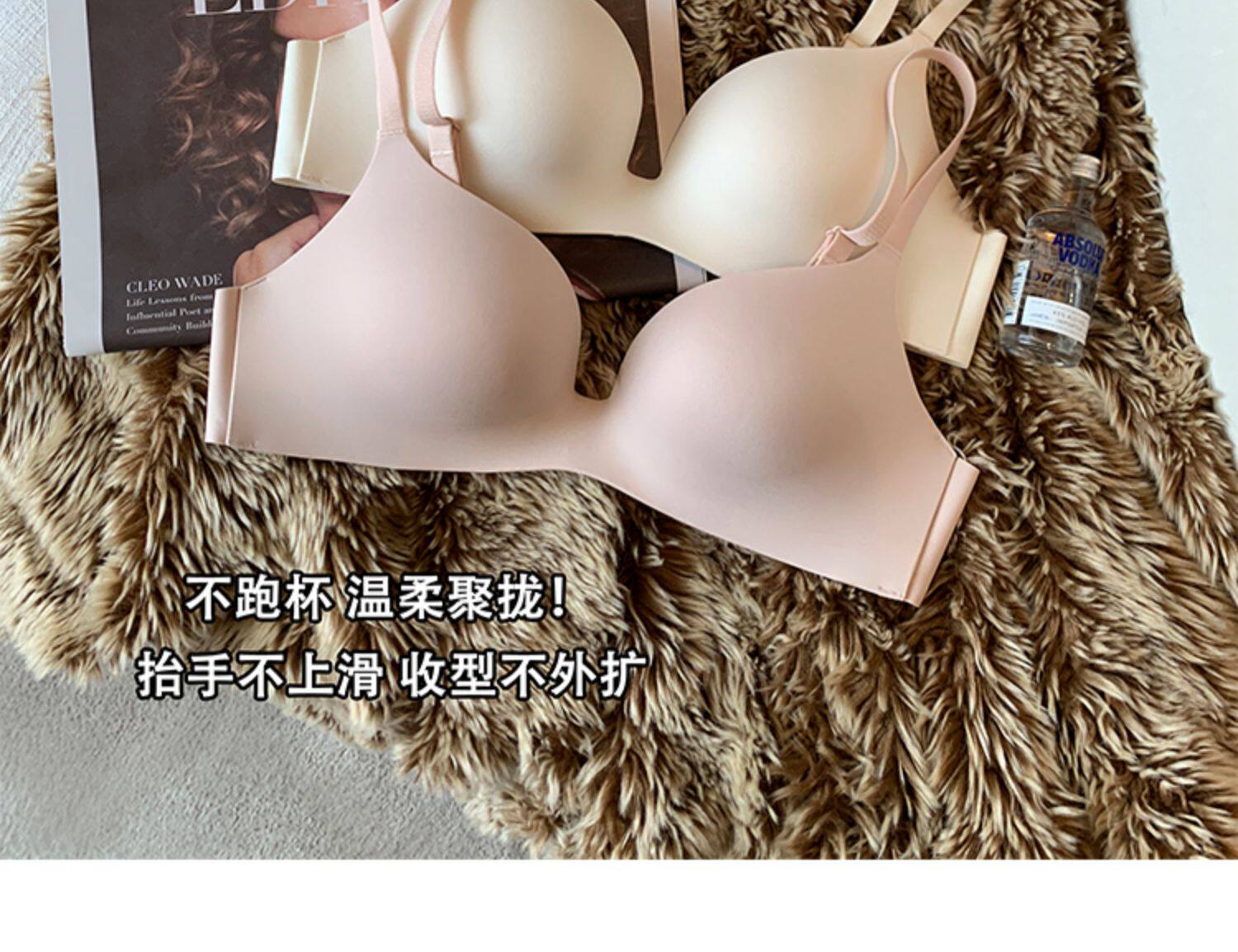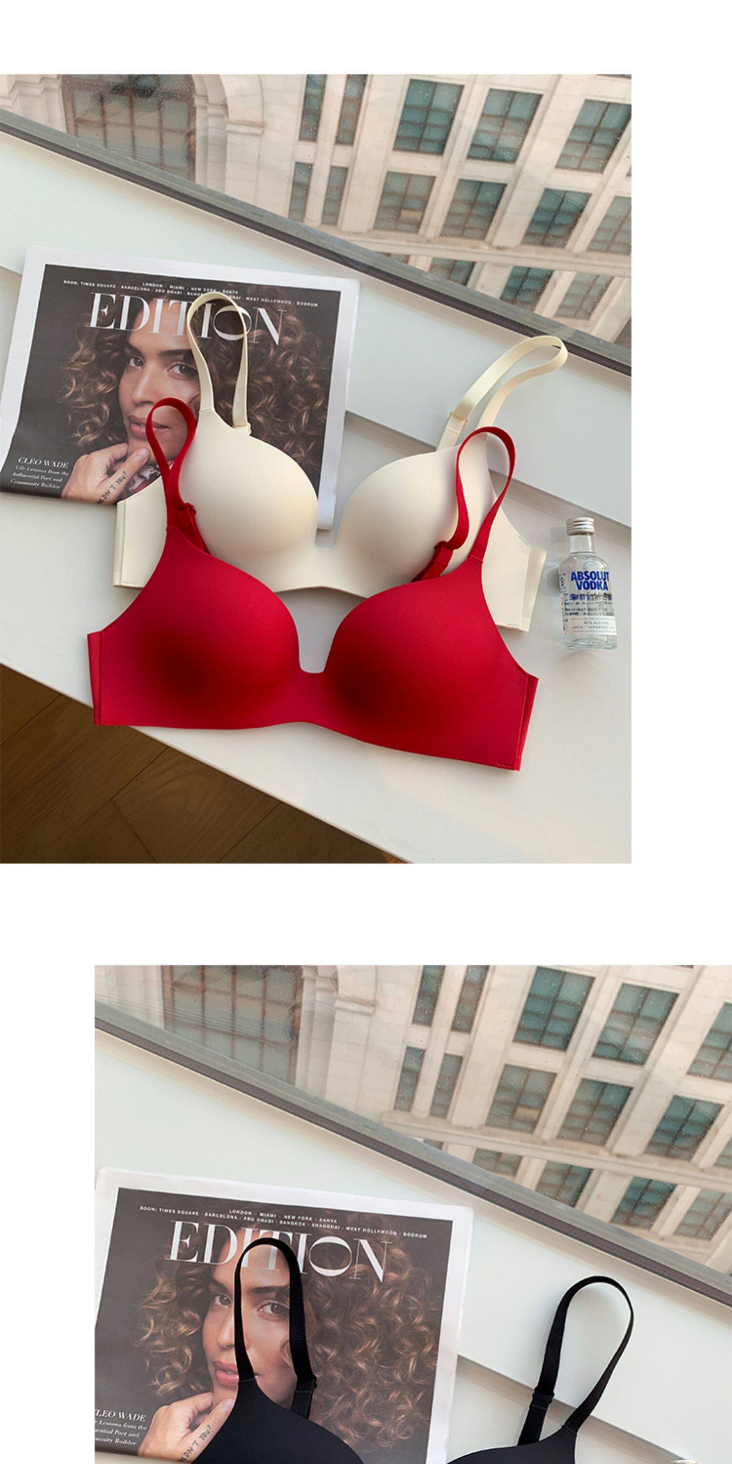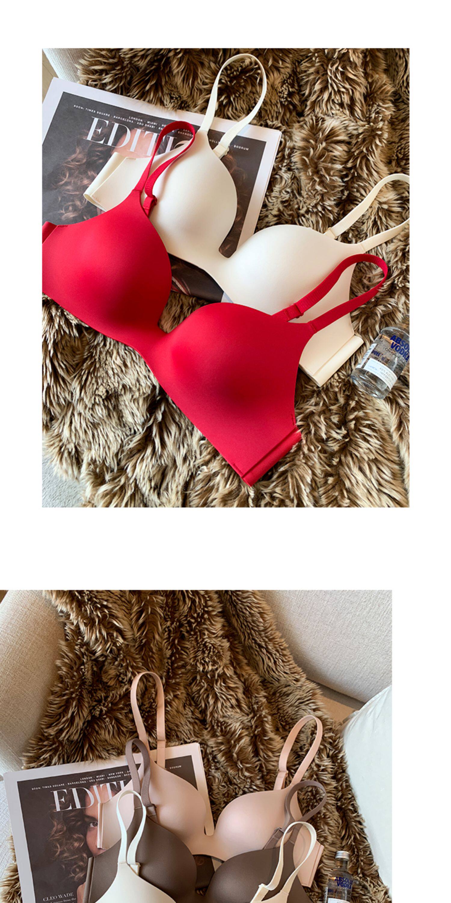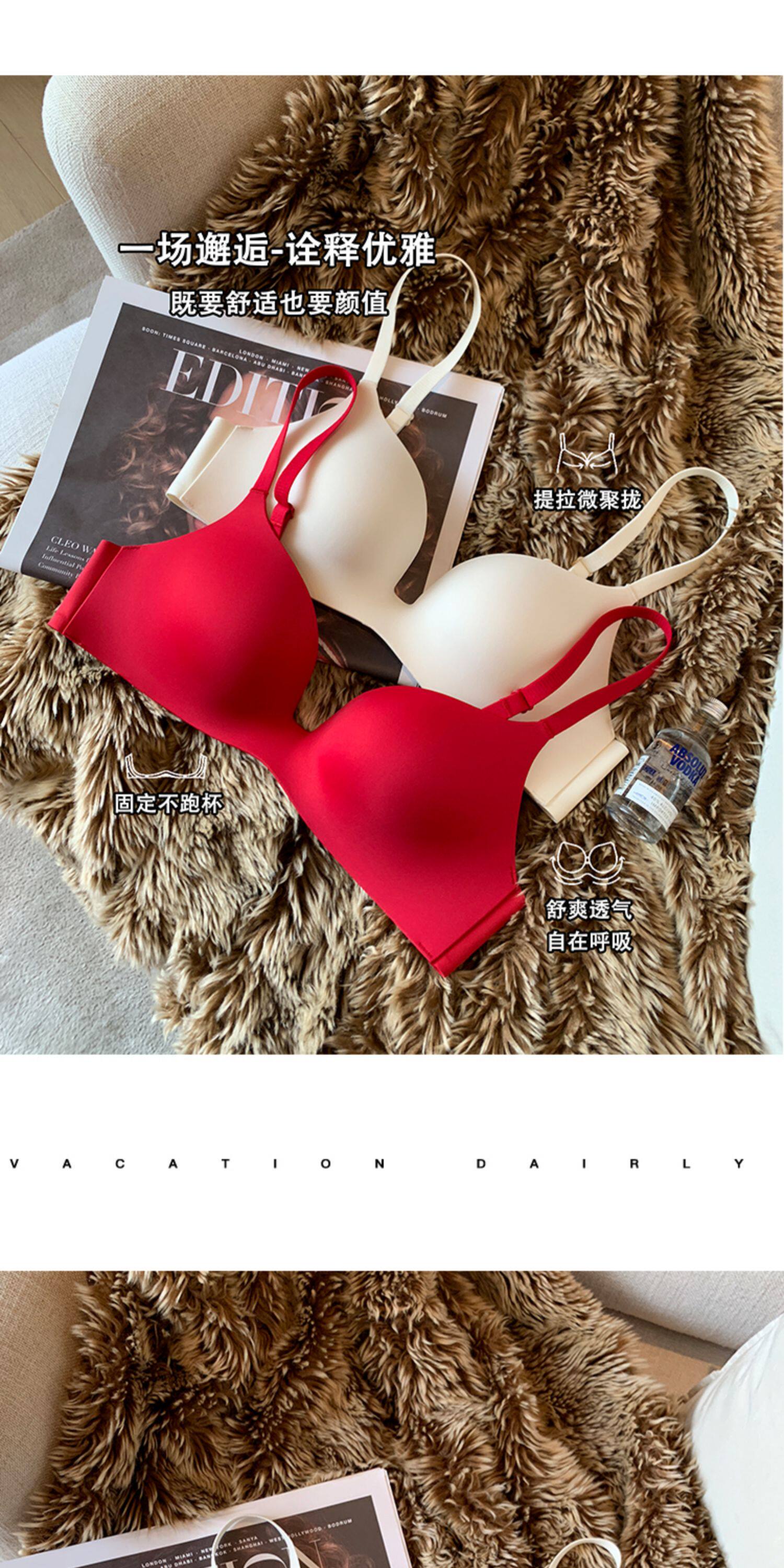 日本無痕一片式內衣女光面小胸聚攏薄款無鋼圈收副乳防下垂文胸罩