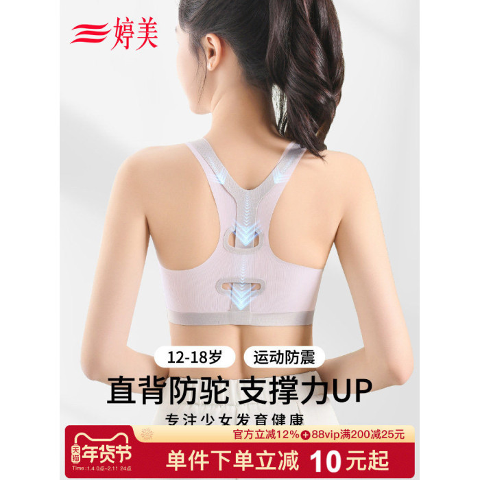 婷美發育期少女文胸二三階段初高中生固定杯挺背運動防震女孩內衣
