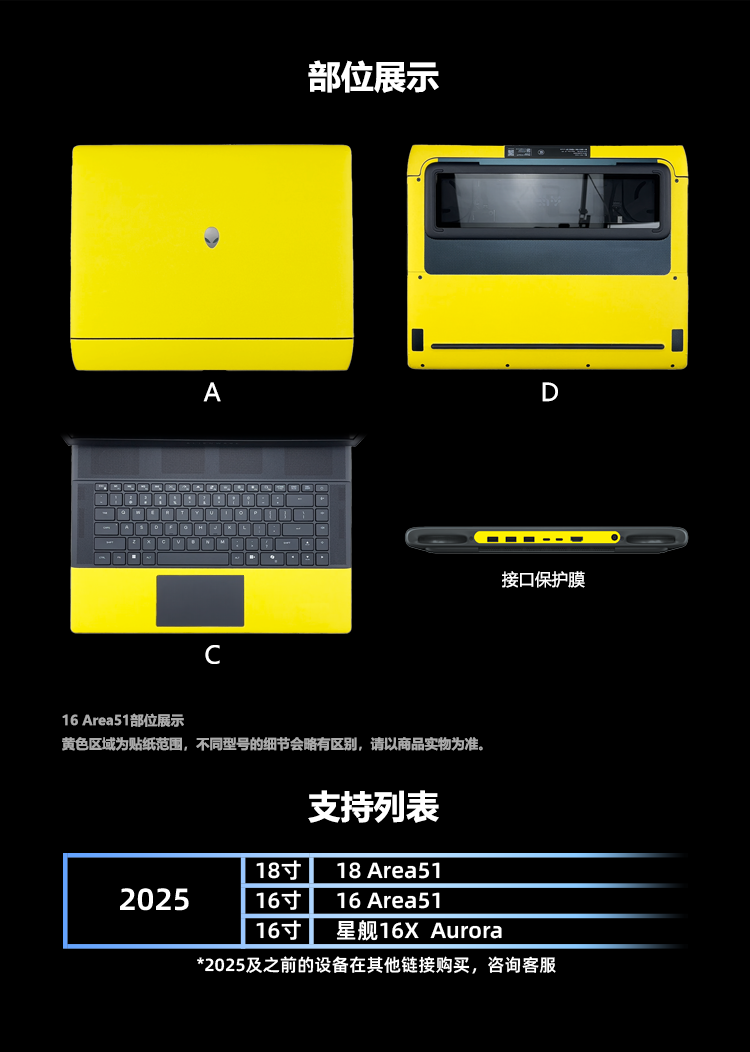 適用Alienware外星人16X星艦2025款16寸18寸Area51外殼保護貼紙膜
