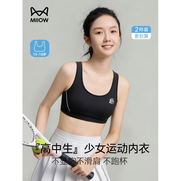 貓人高中生少女背心青春發育期內衣女學生初中青少年運動防震文胸