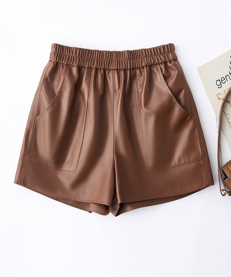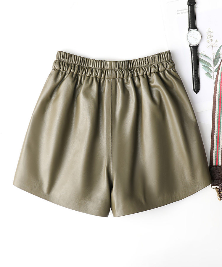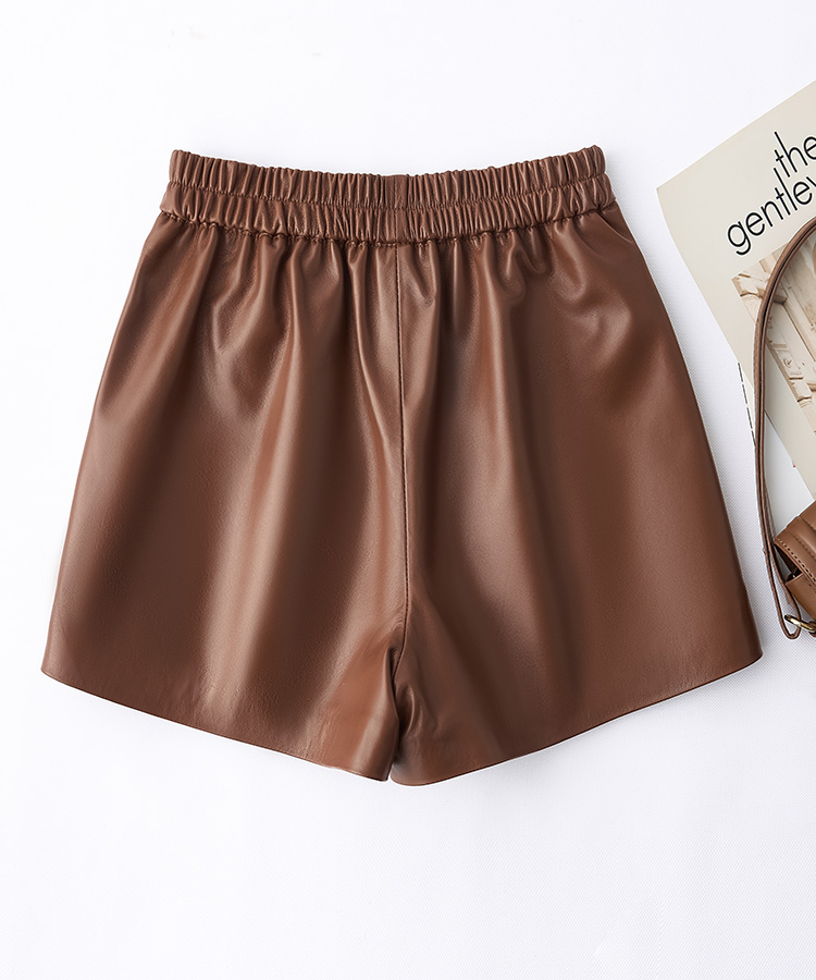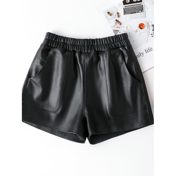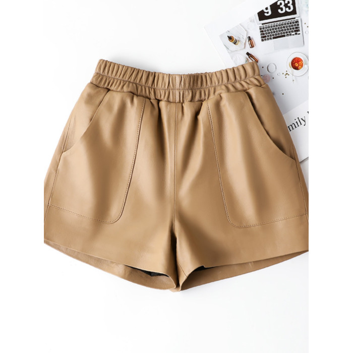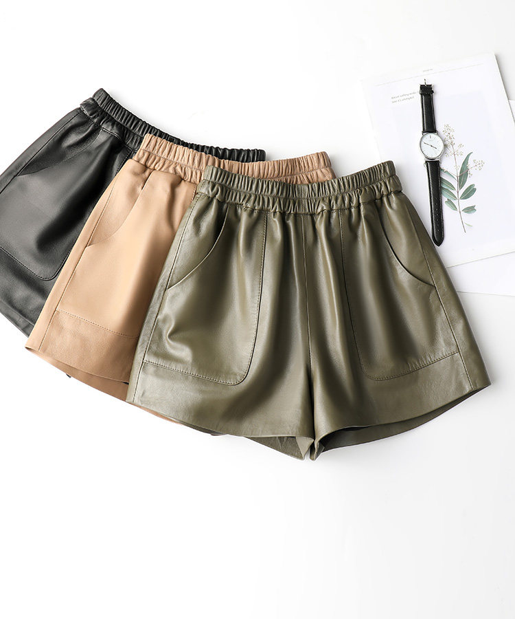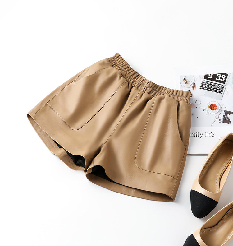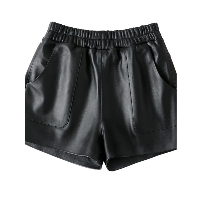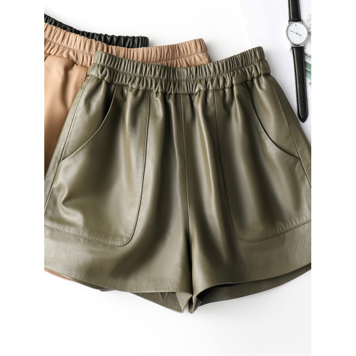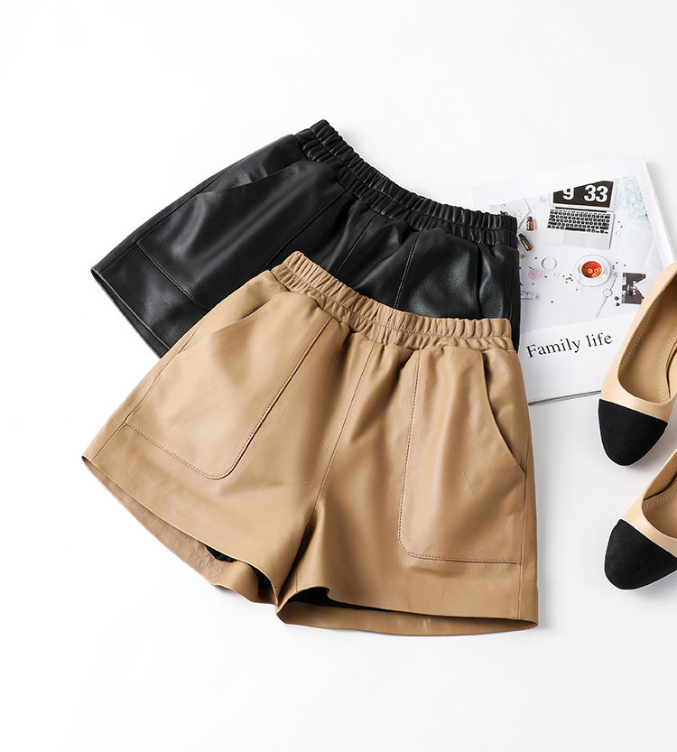 綿羊皮真皮短褲女 2025新款歐洲站高腰顯瘦寬鬆百搭a字濶腿皮短褲
