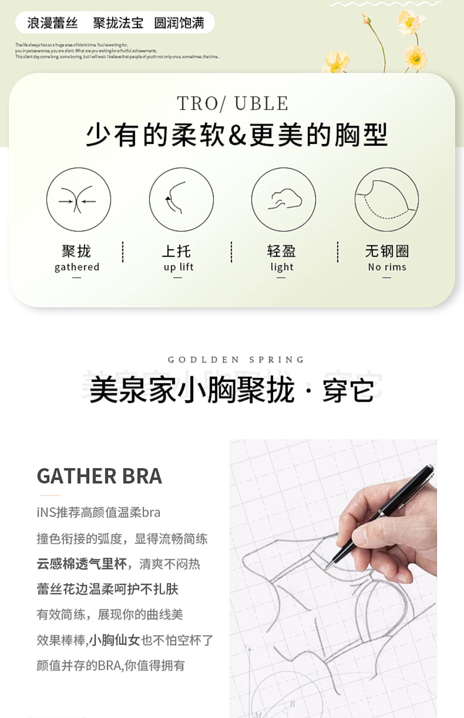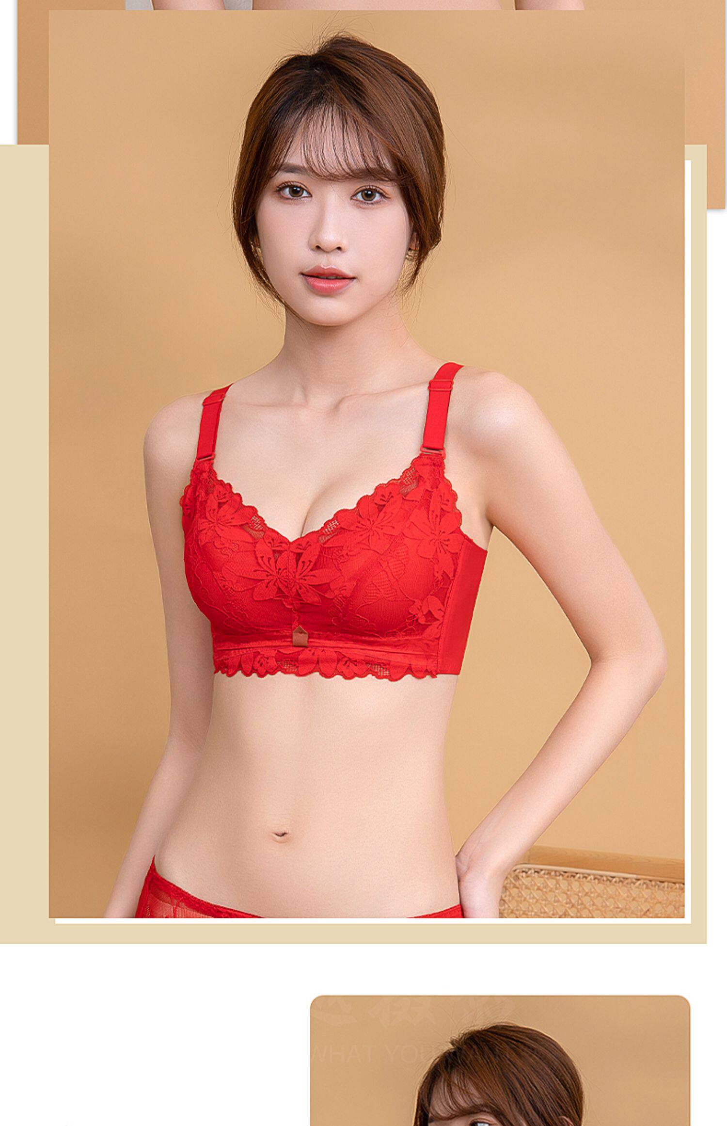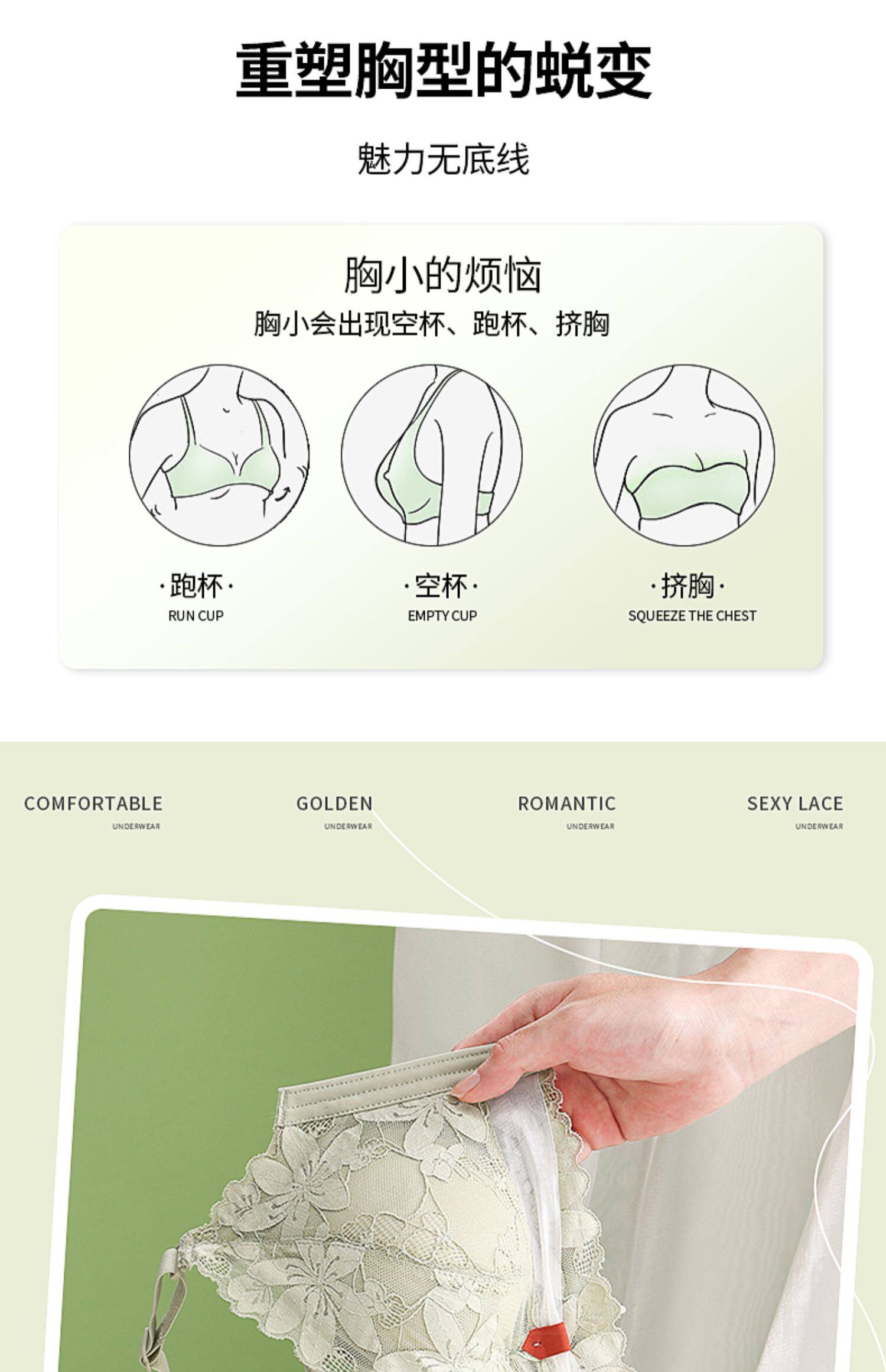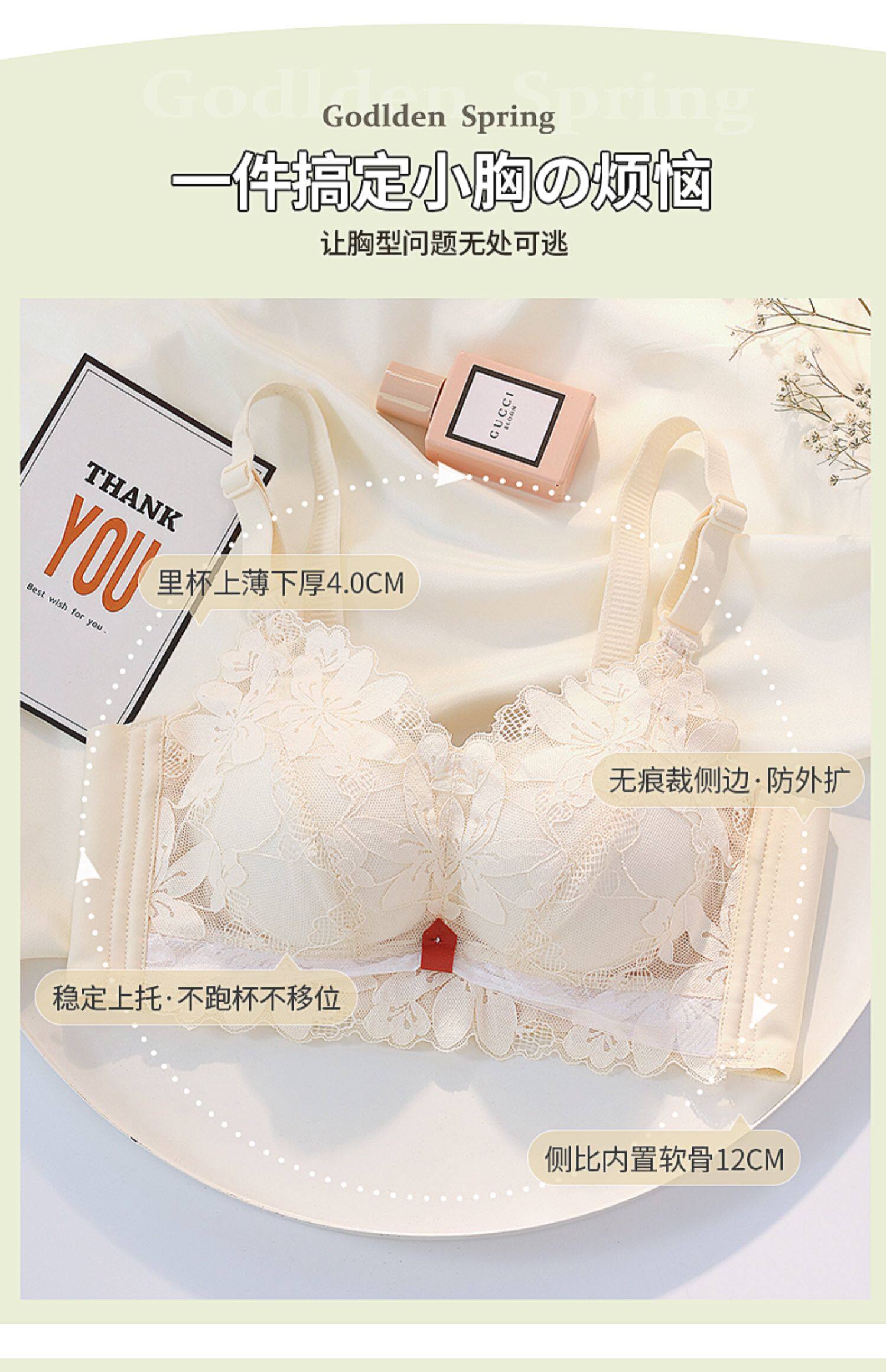 內衣女小胸聚攏加厚顯大不空杯收副乳防下垂外擴蕾絲文胸罩無鋼圈