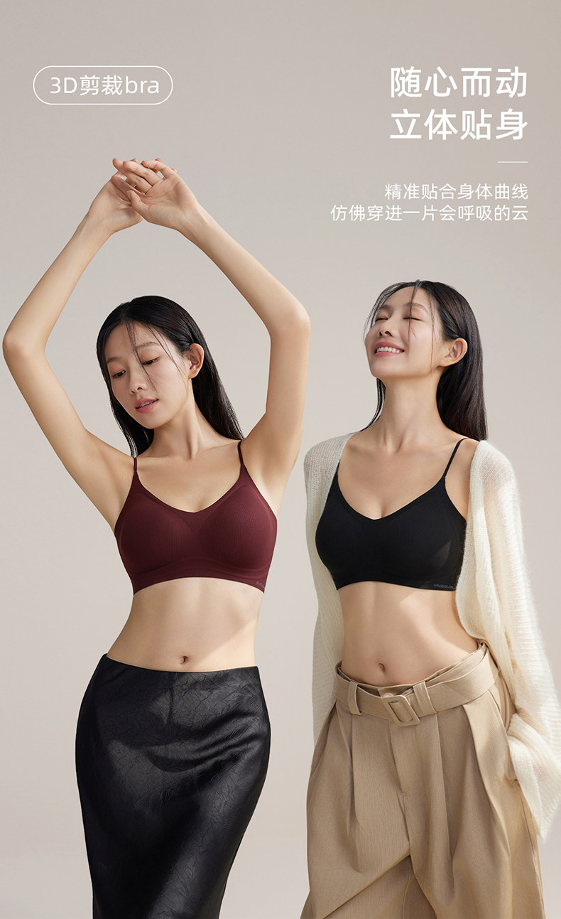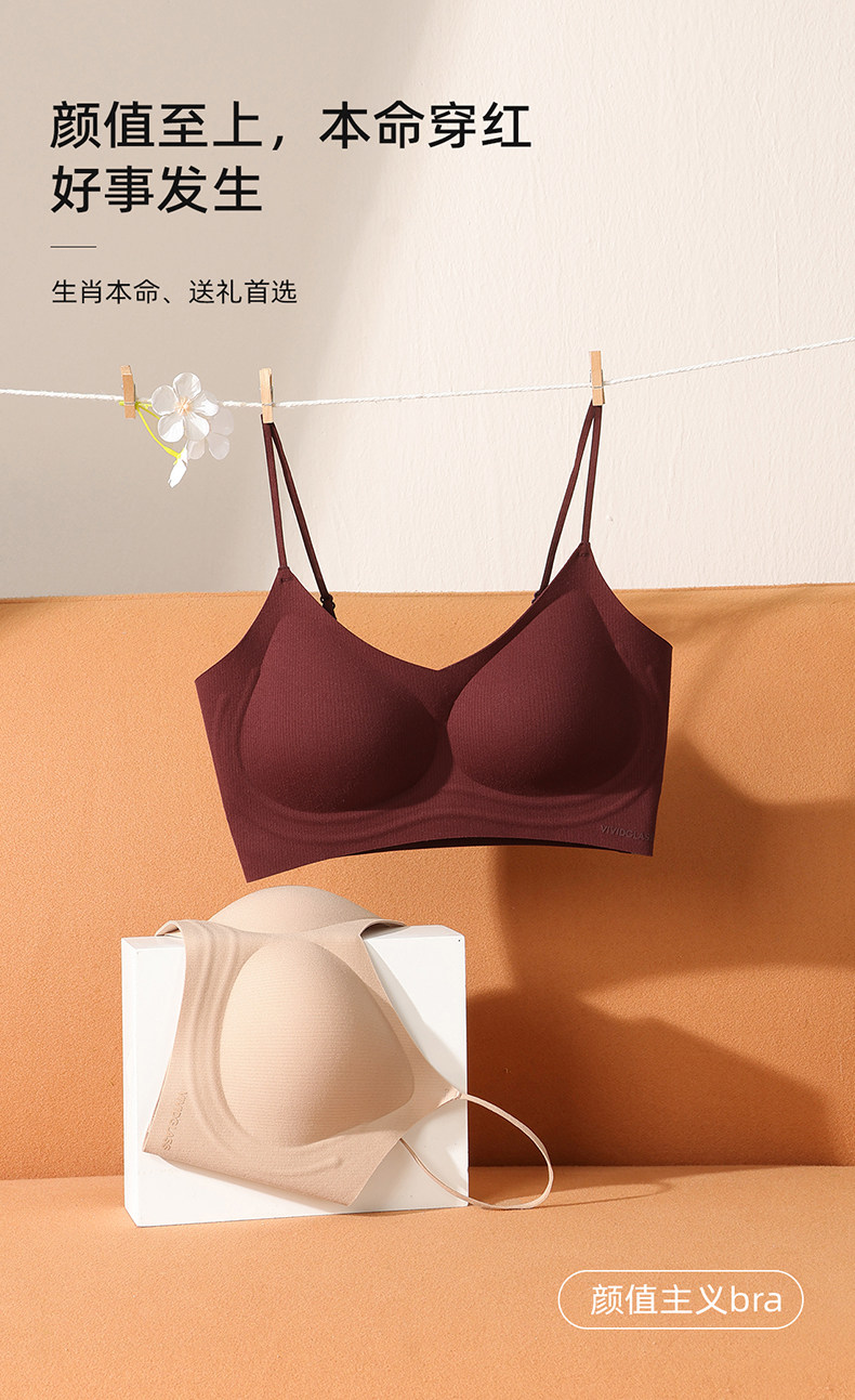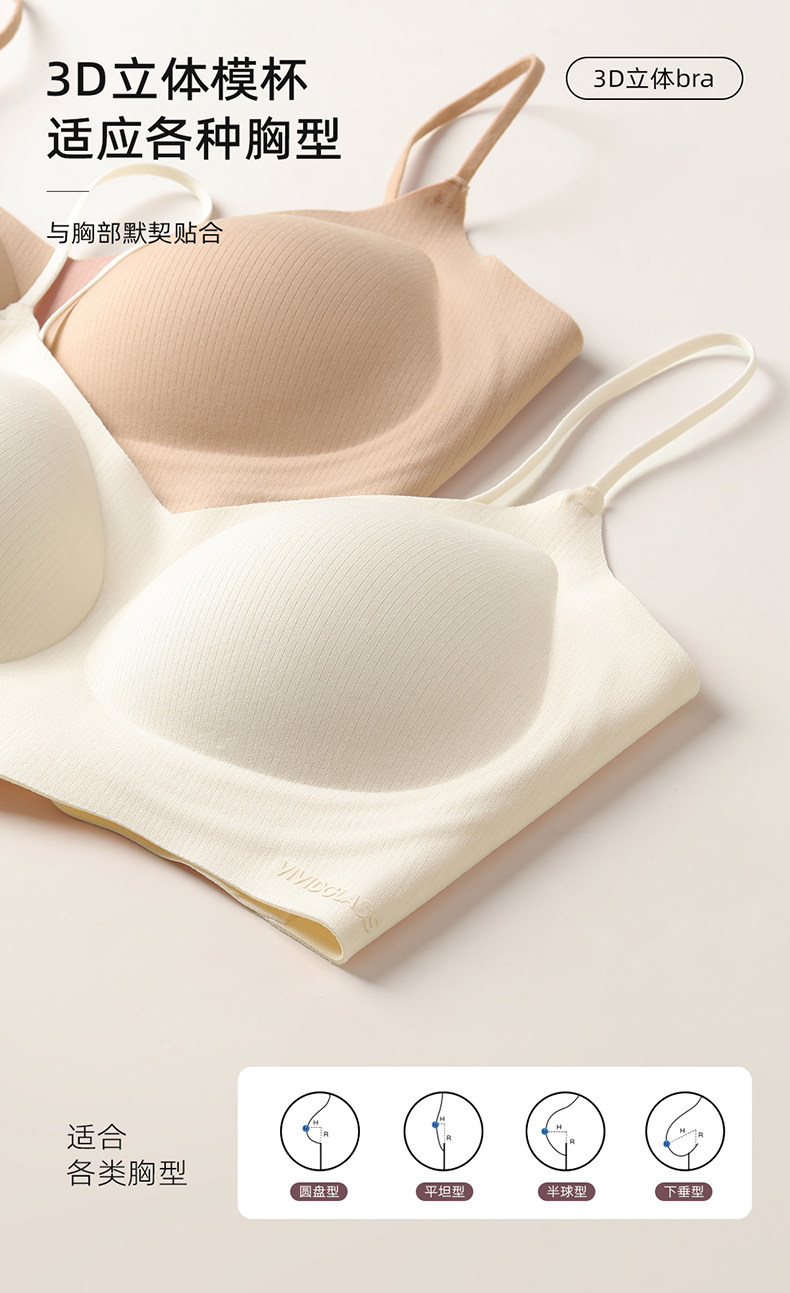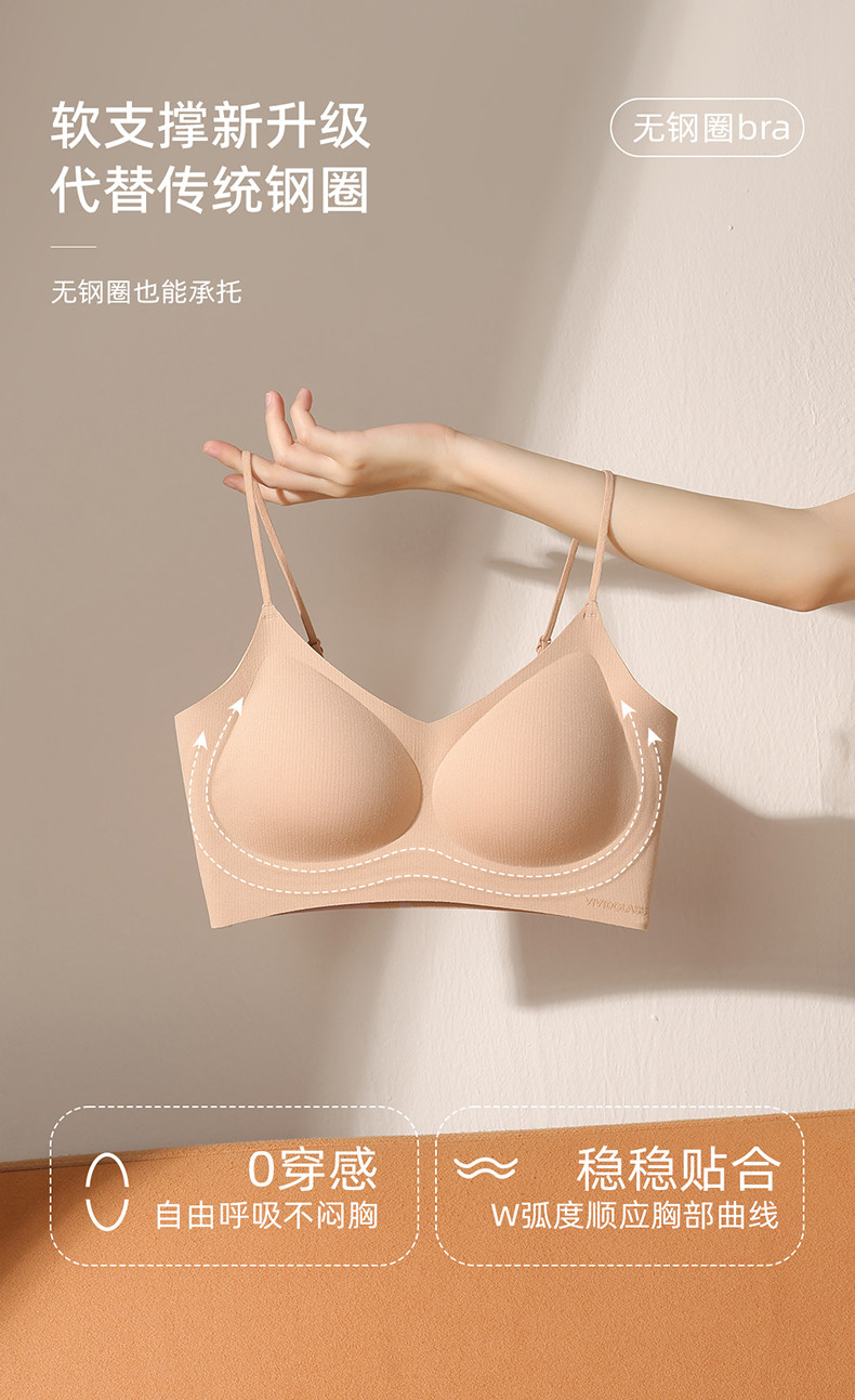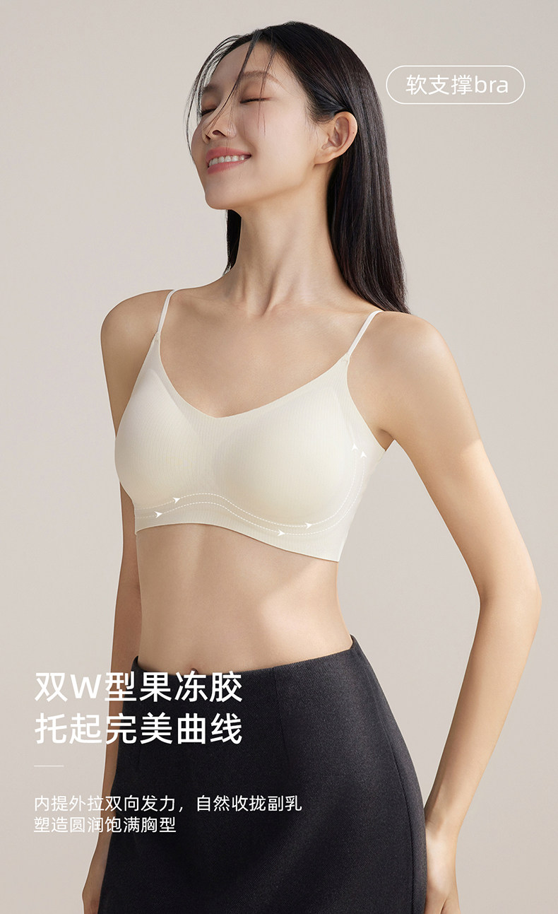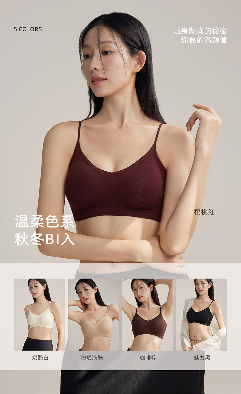 草本初色山茶花細肩帶內衣女小胸聚攏收副乳防下垂粉底液隱形文胸