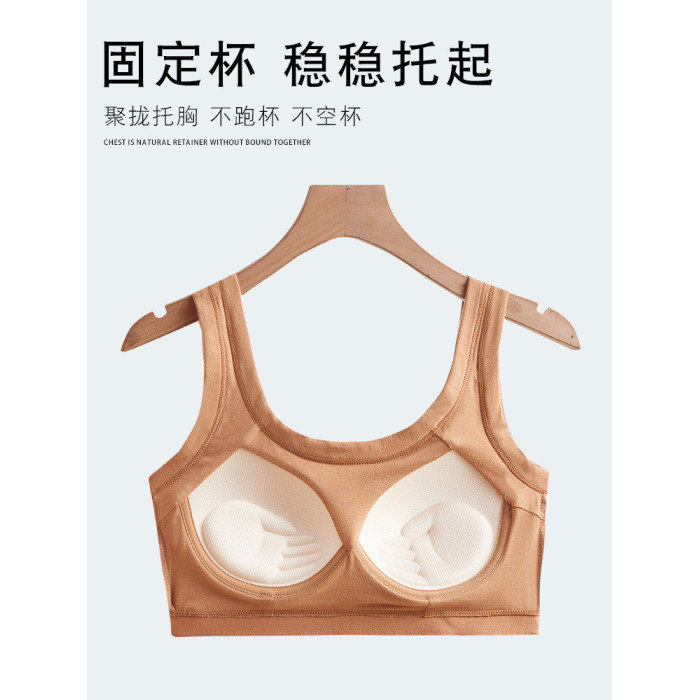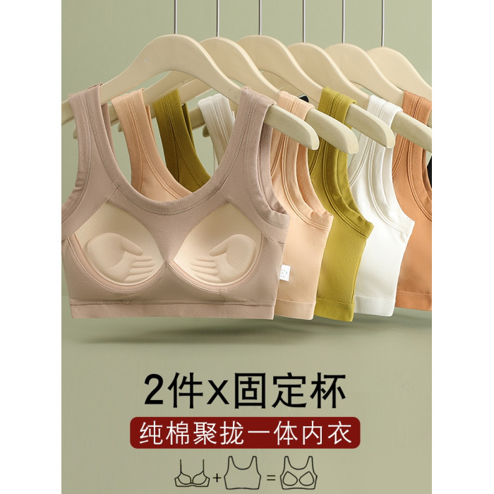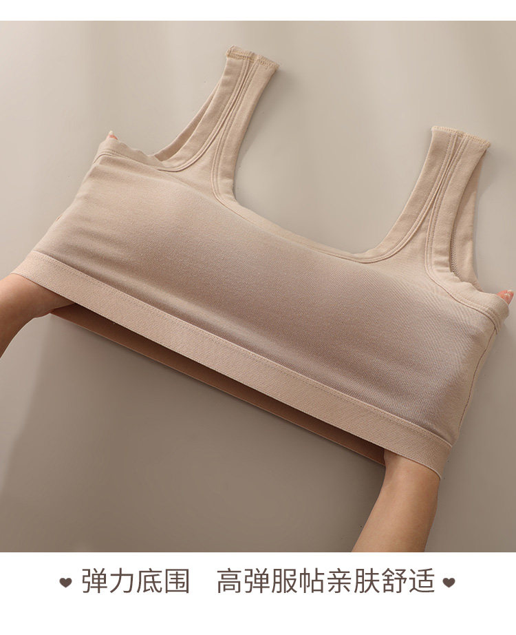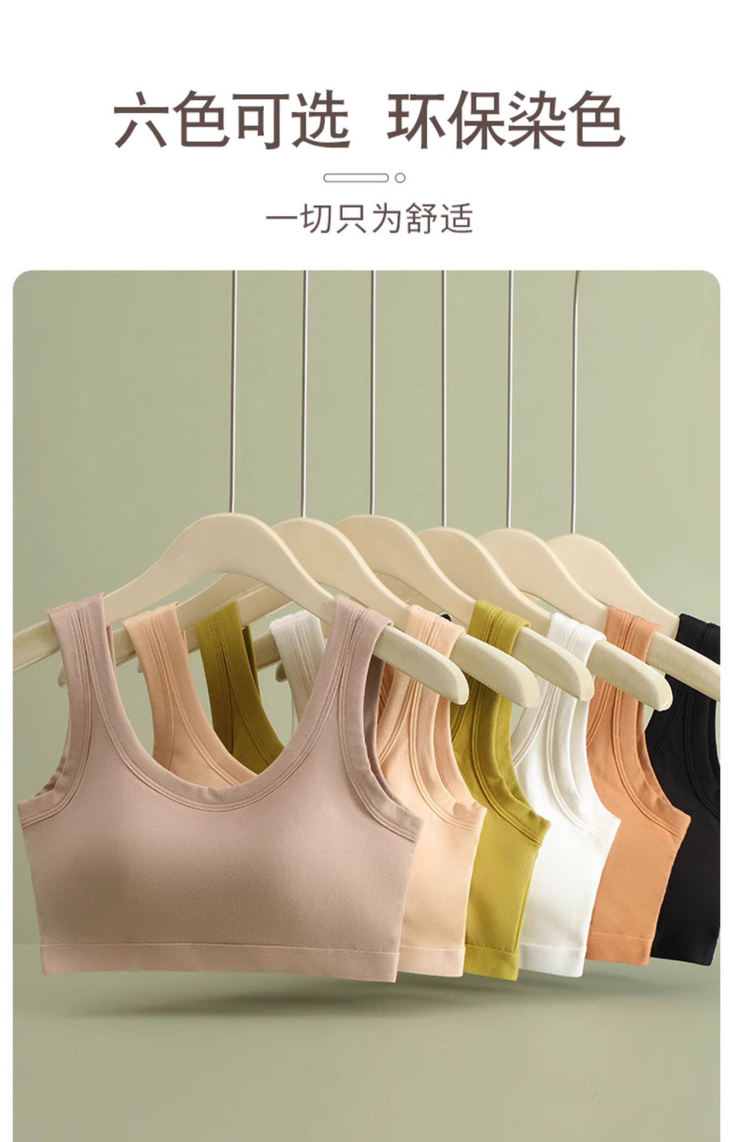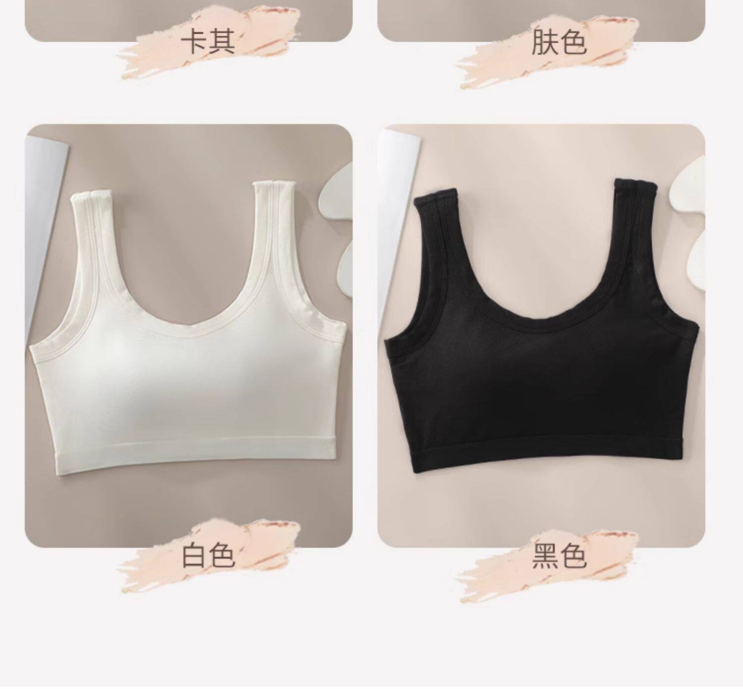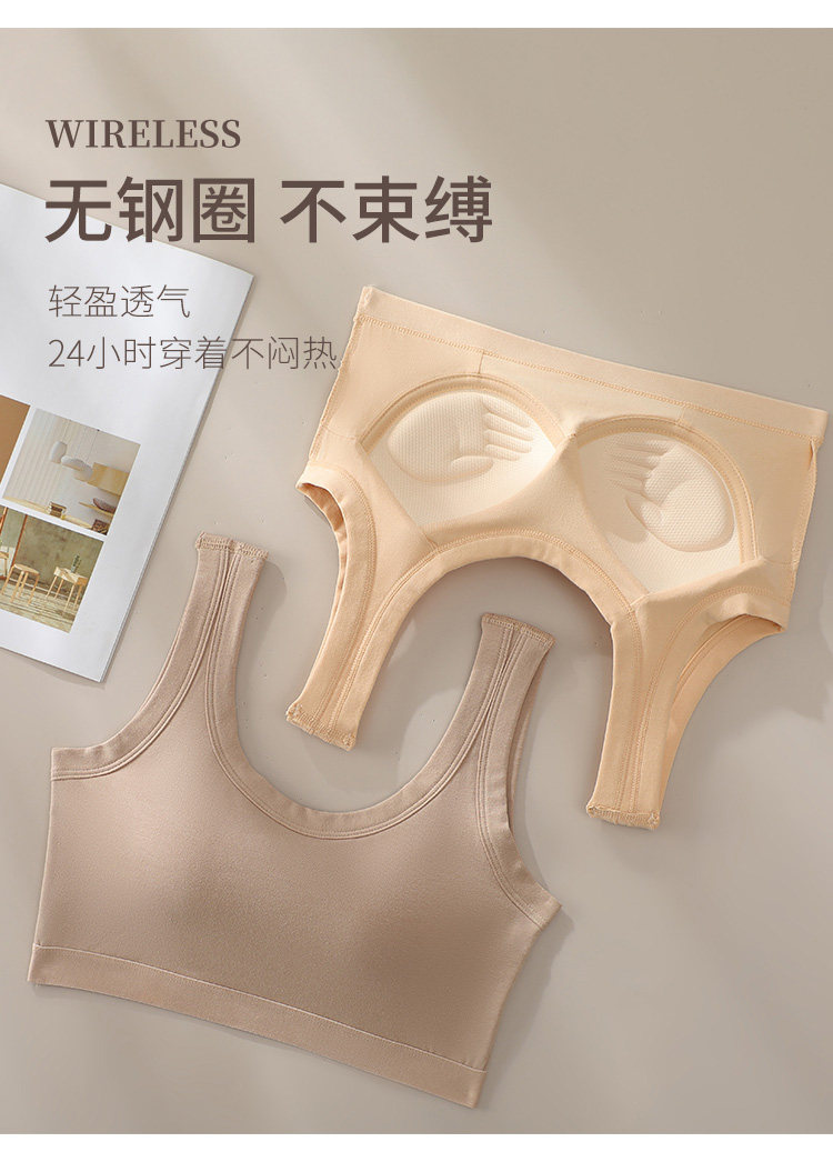 無鋼圈發育期少女文胸一體固定杯純棉內衣運動防震初中生學生背心