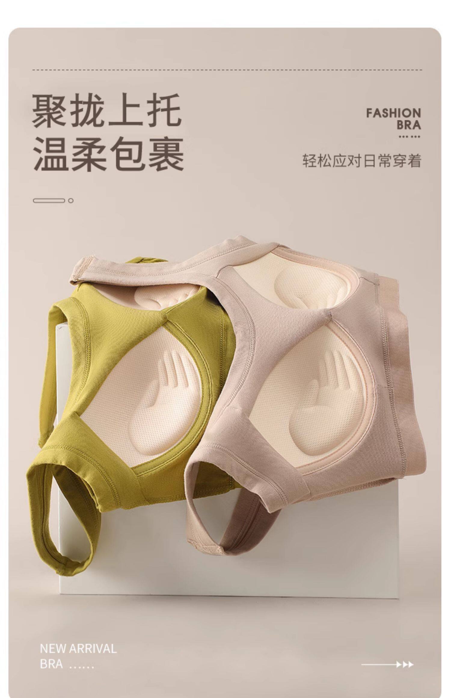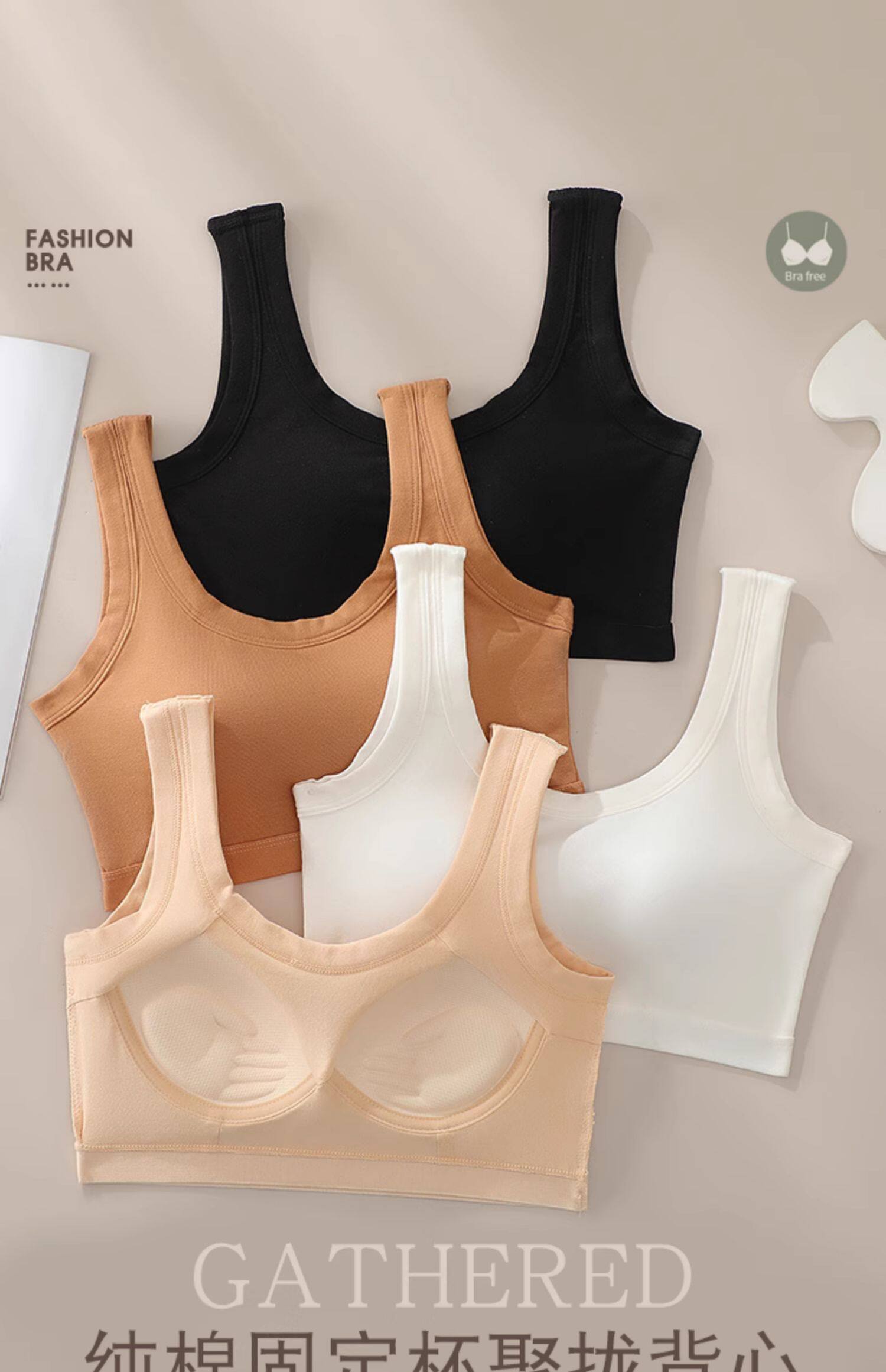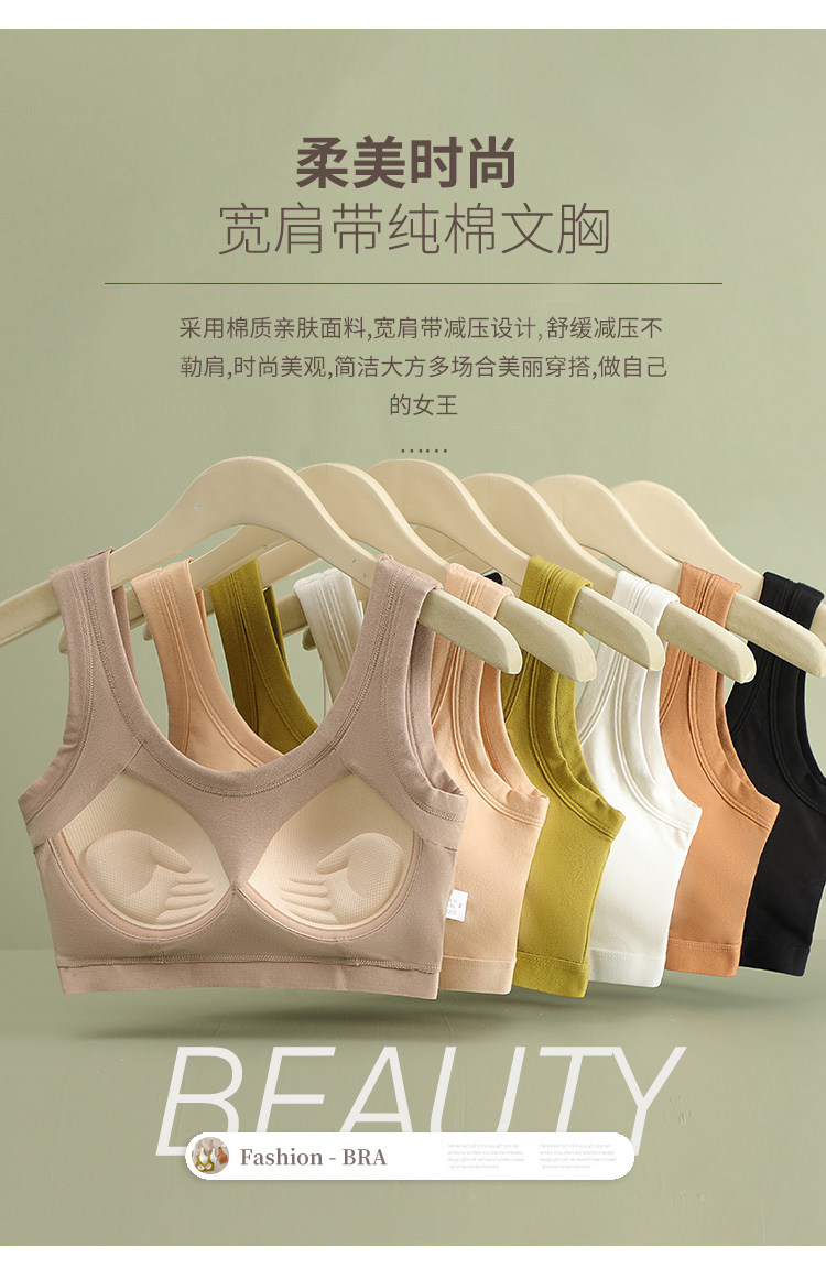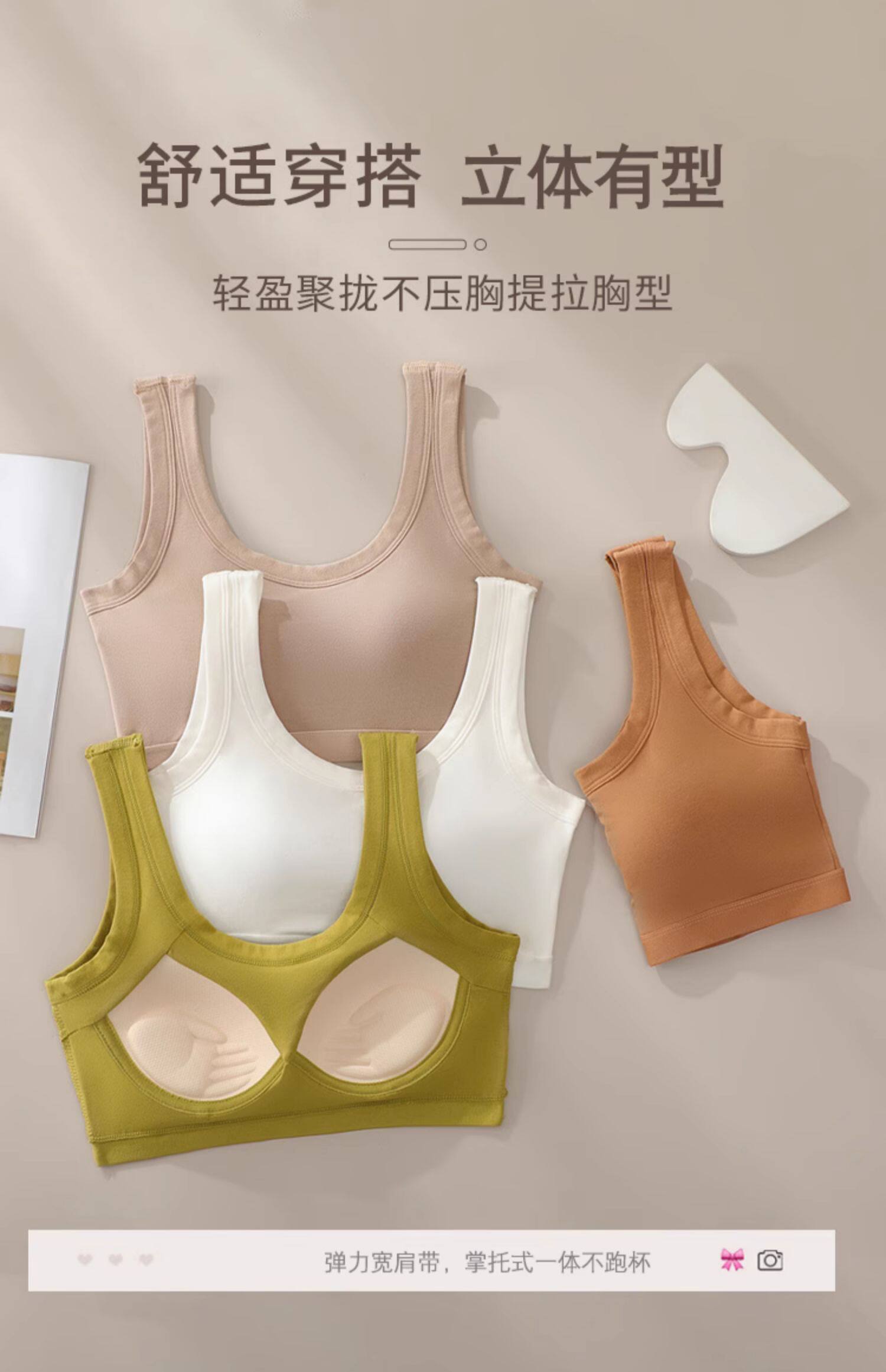 無鋼圈發育期少女文胸一體固定杯純棉內衣運動防震初中生學生背心
