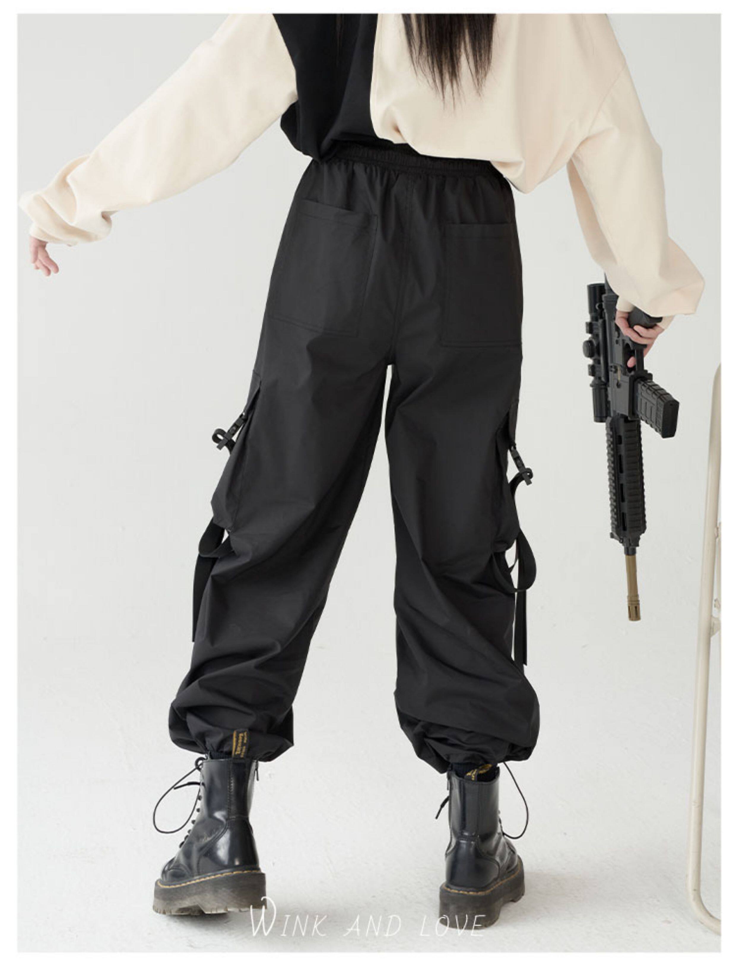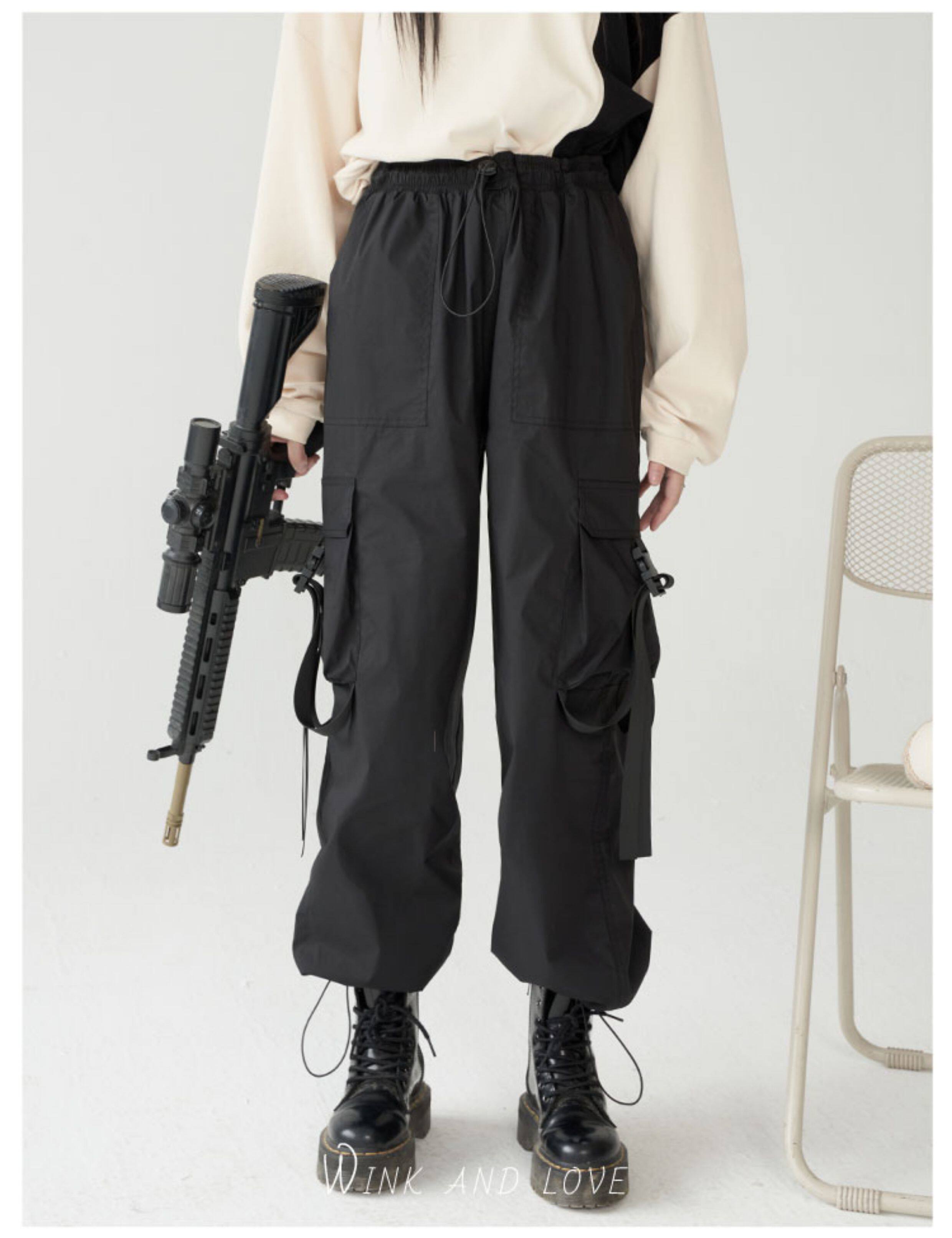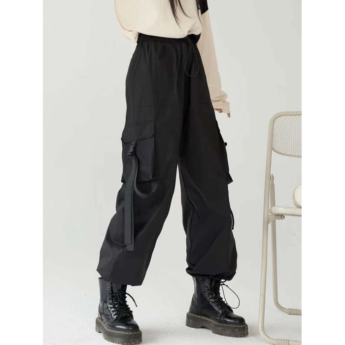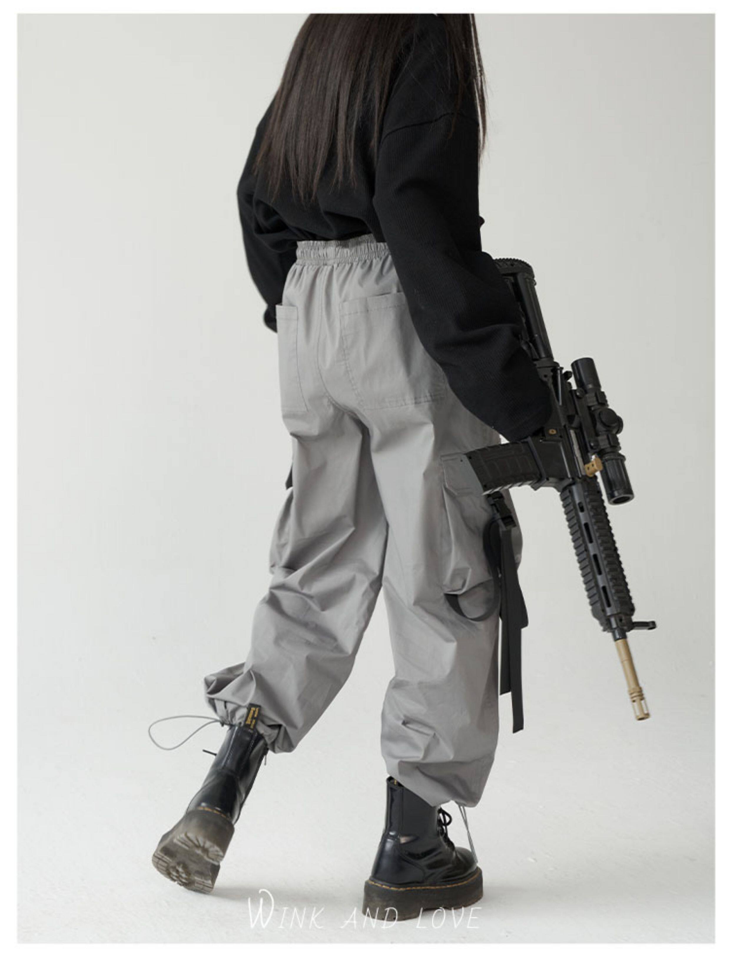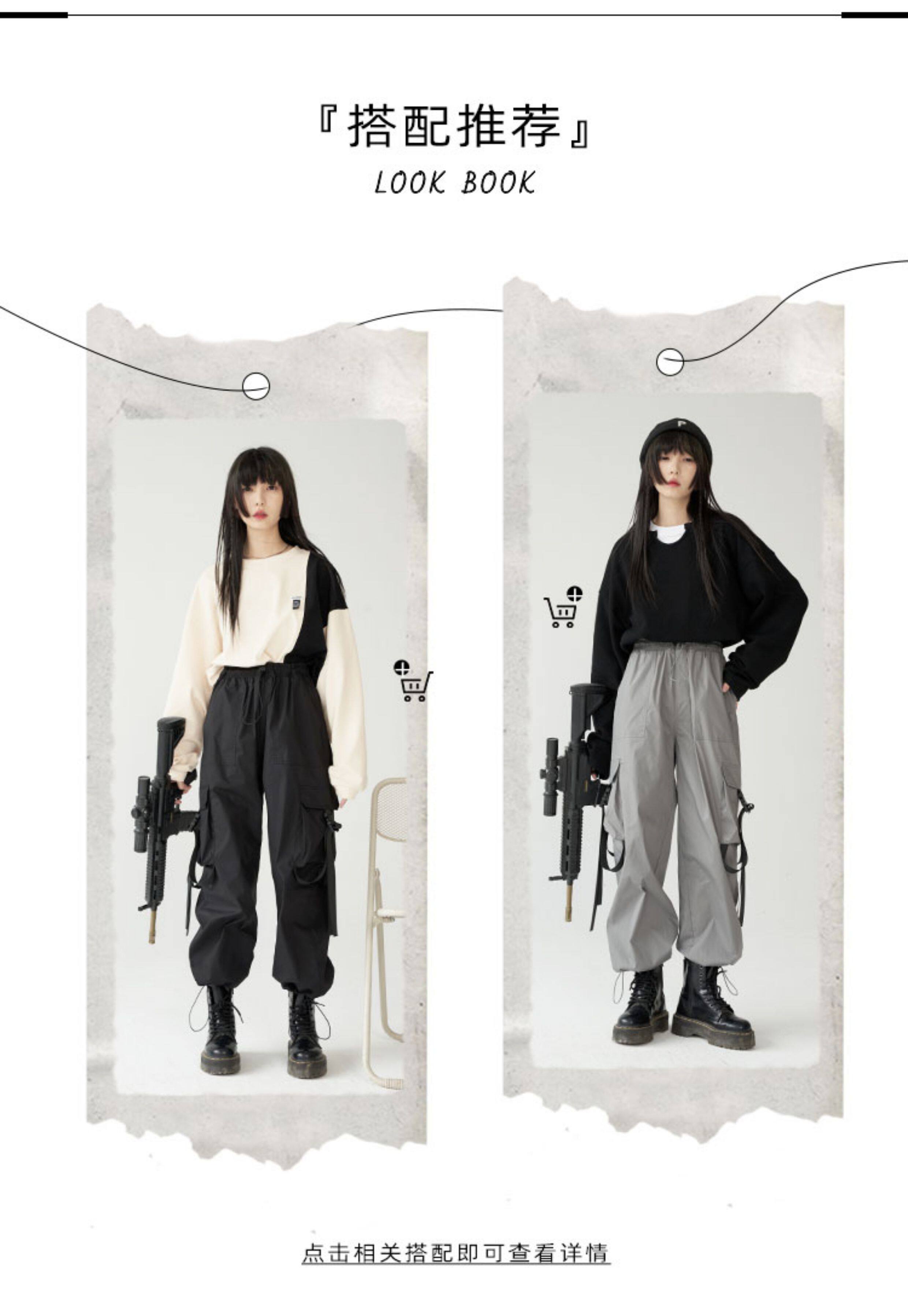 萬有引力博物館 基礎款工裝褲女側邊口袋長褲束腳褲寬鬆休閒褲
