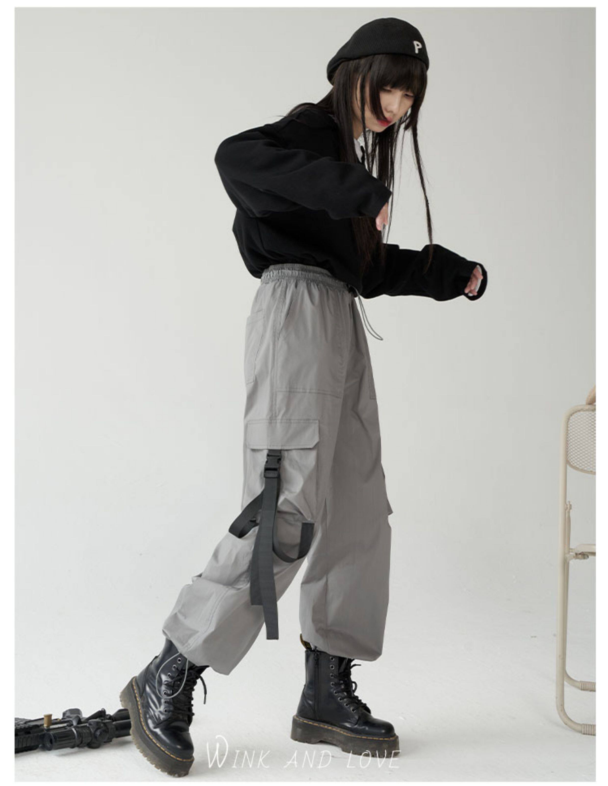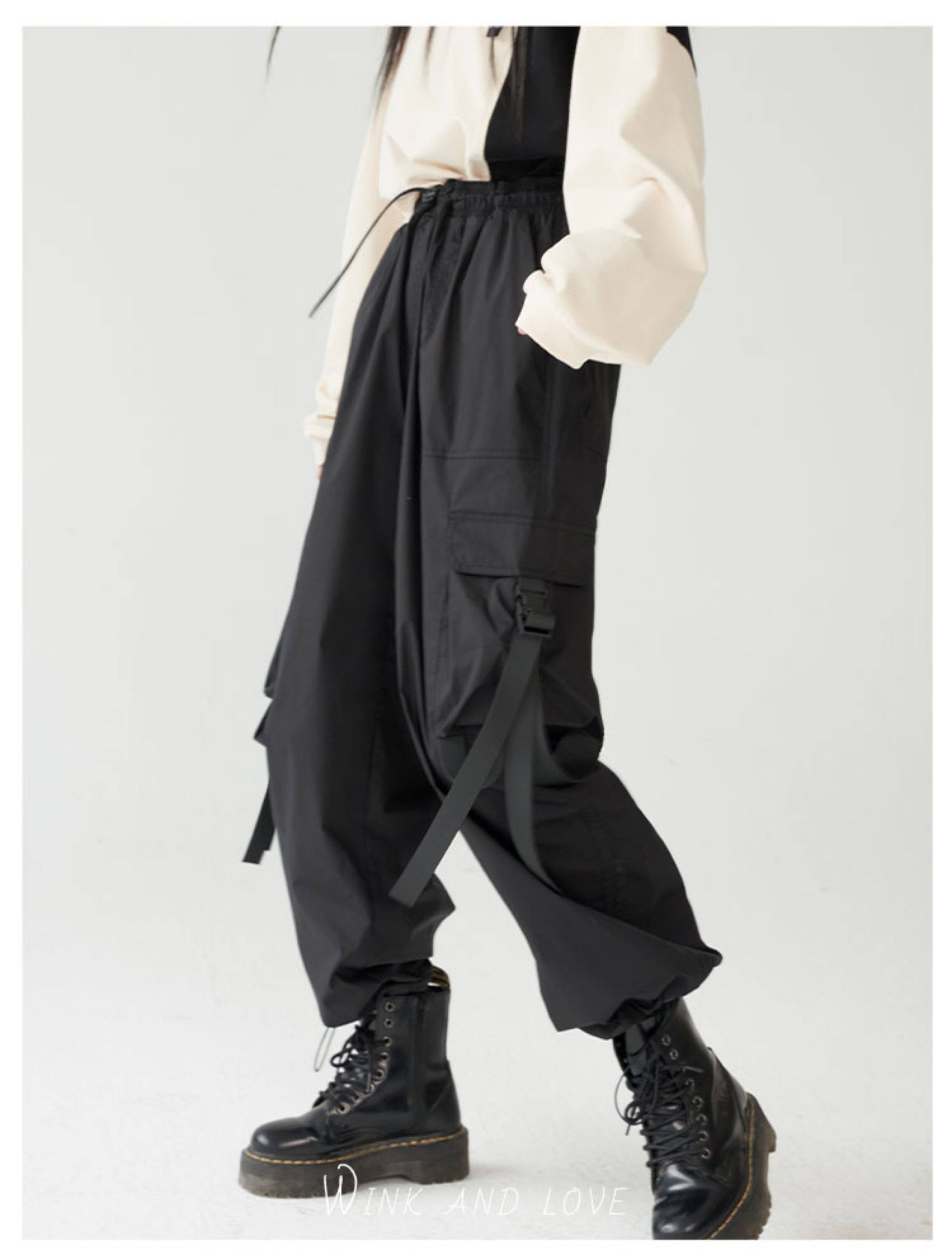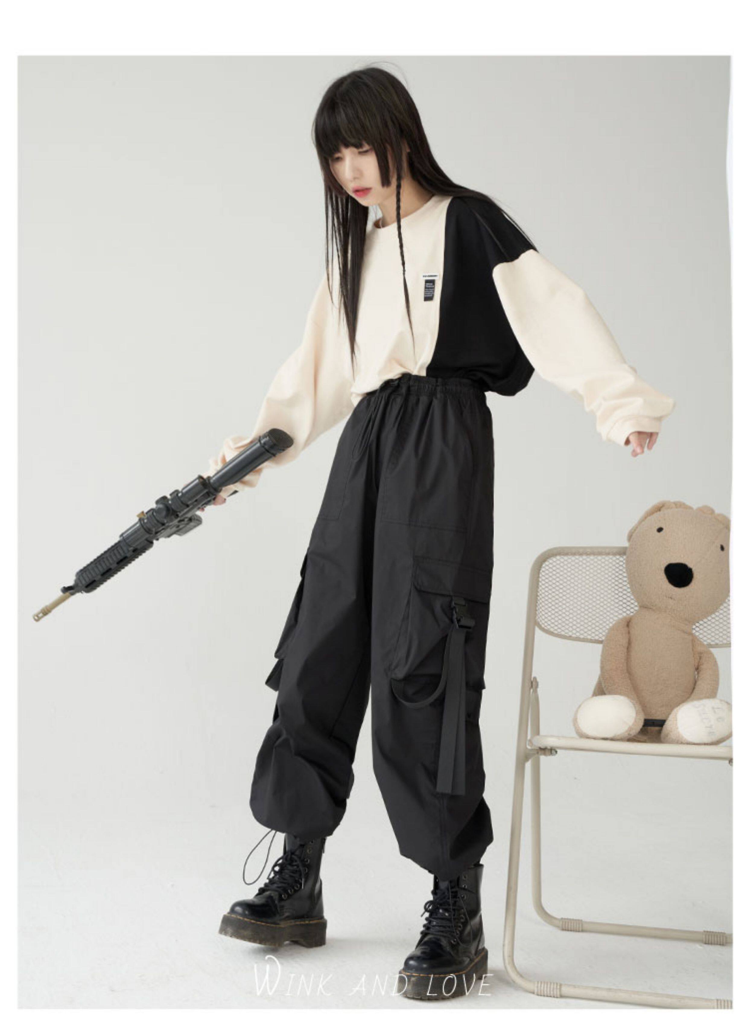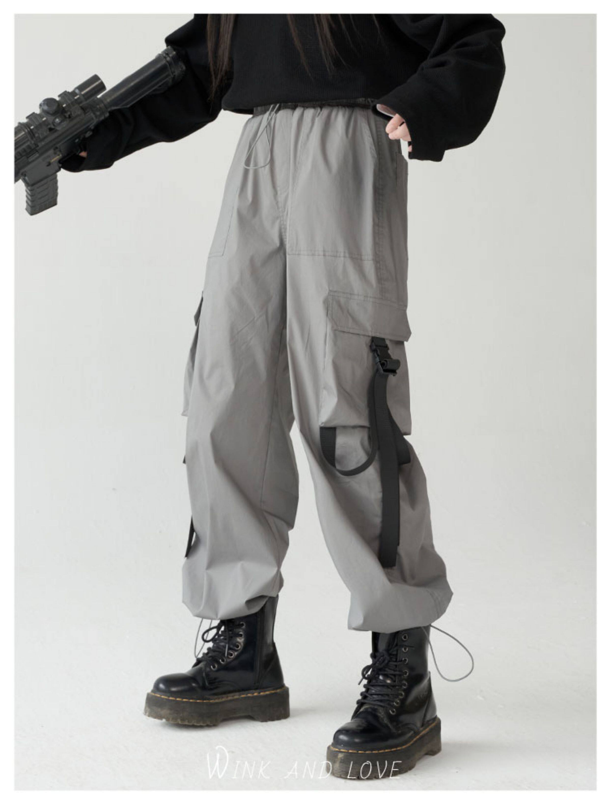 萬有引力博物館 基礎款工裝褲女側邊口袋長褲束腳褲寬鬆休閒褲